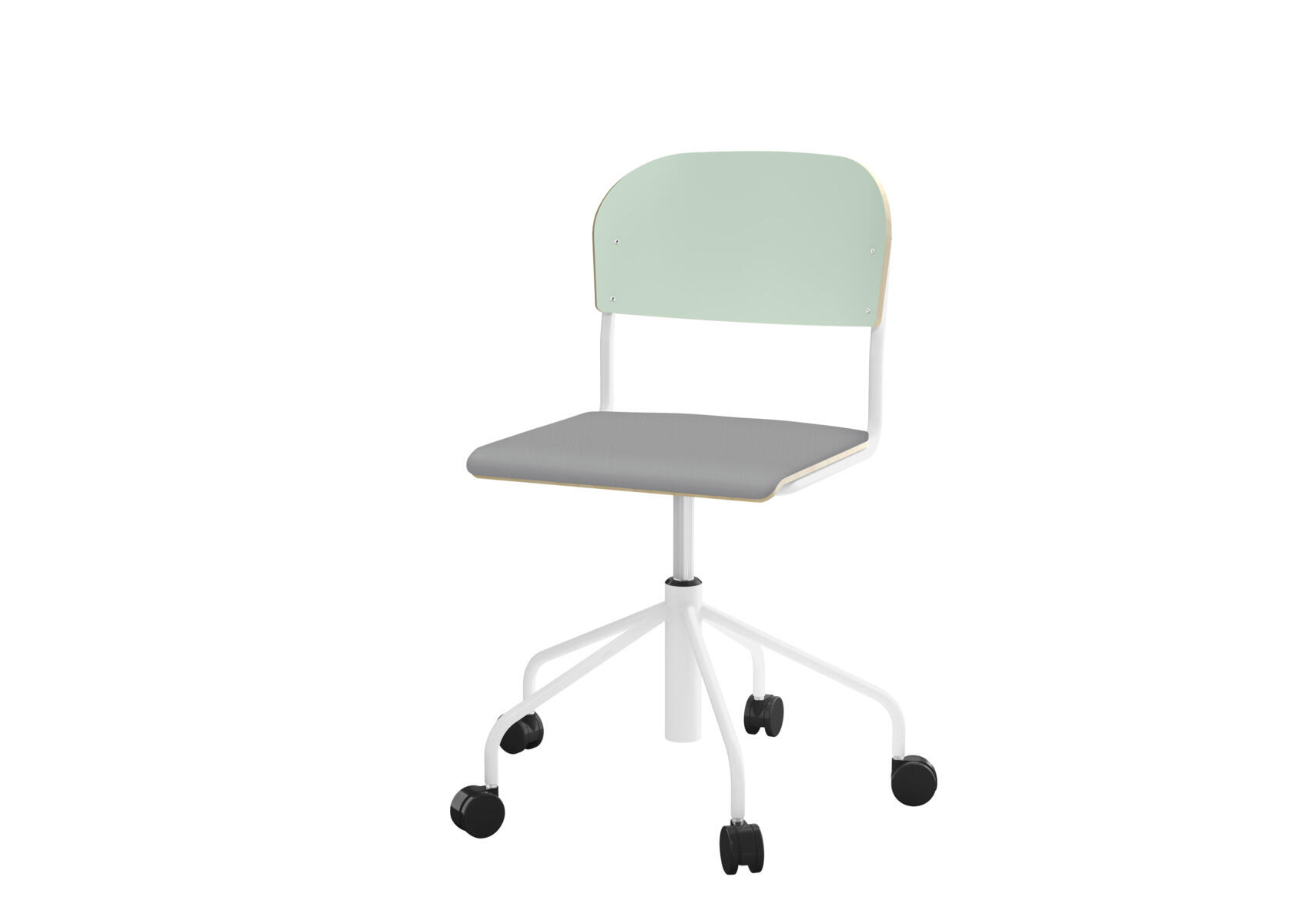 Med gassfjær. Sete og rygg i høytrykkslaminat. Leveres umontert. Glidere følger ikke med. Justerbar sittehøyde 38-51 cm. Setemål: 42x39 cm. Vekt 7,5 kg.