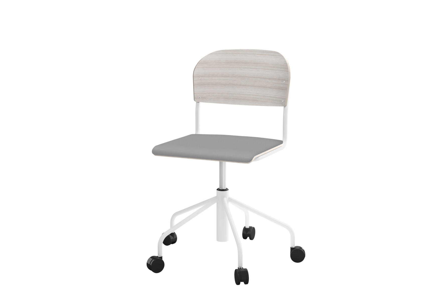 Stol Matte sh 45-56 cm høy 5-kryss hjul stort sete hvit