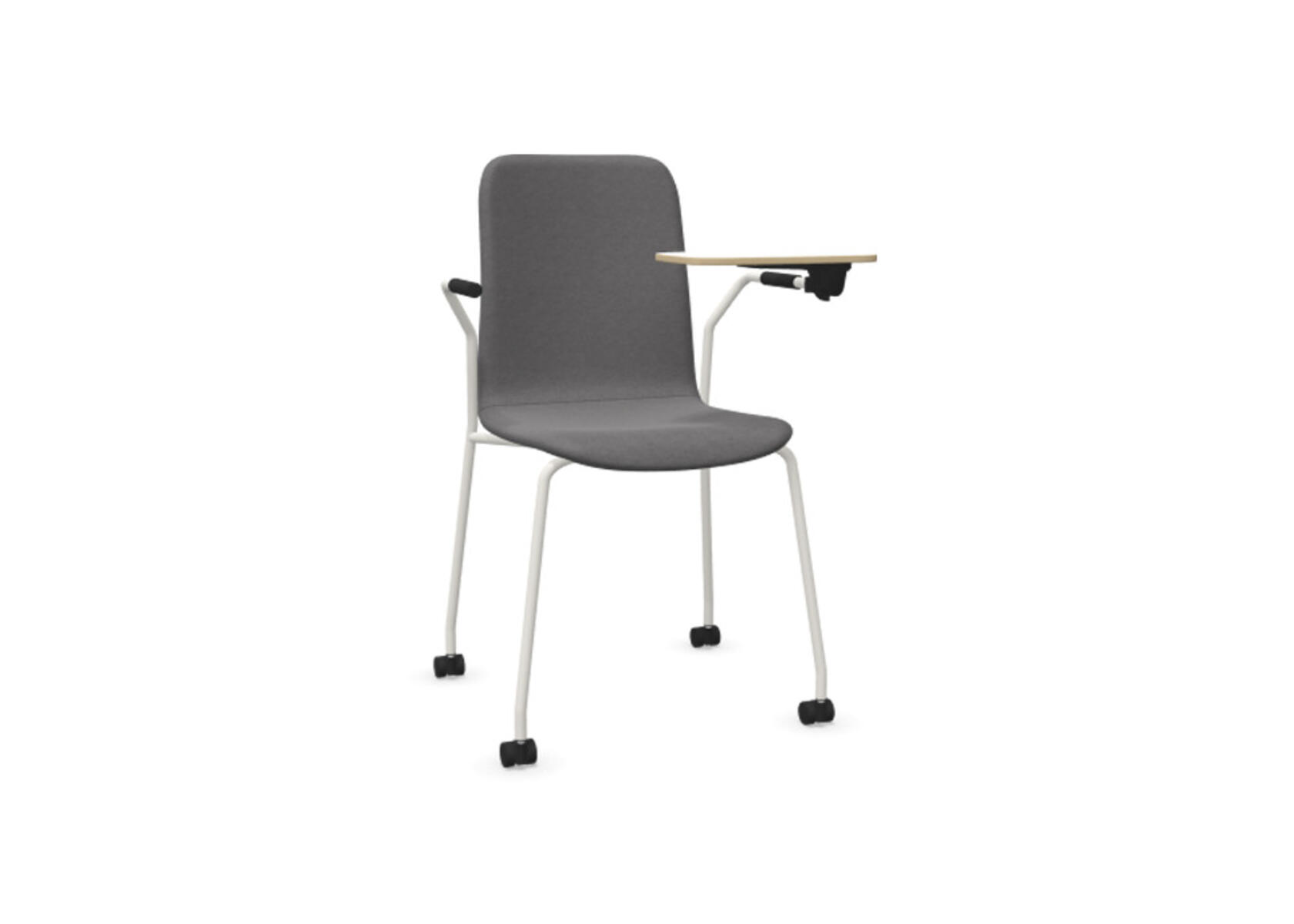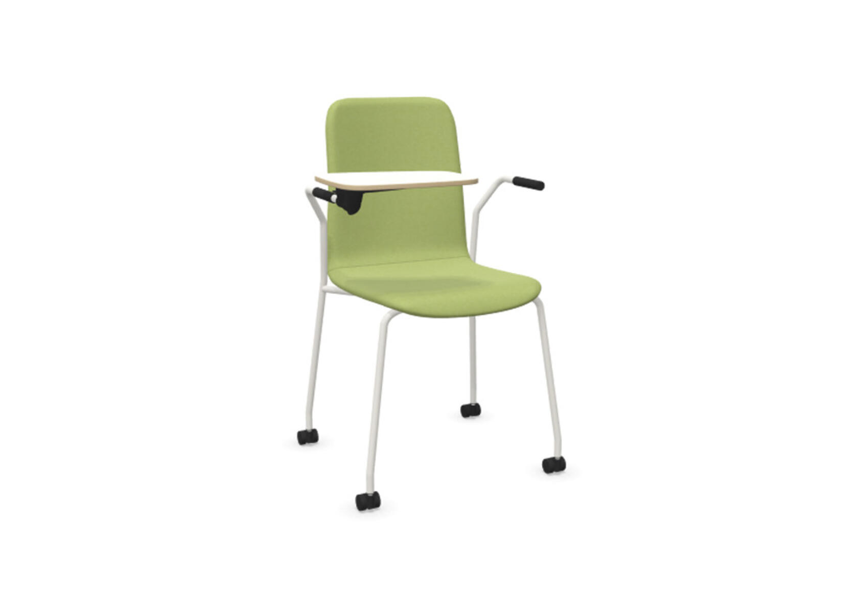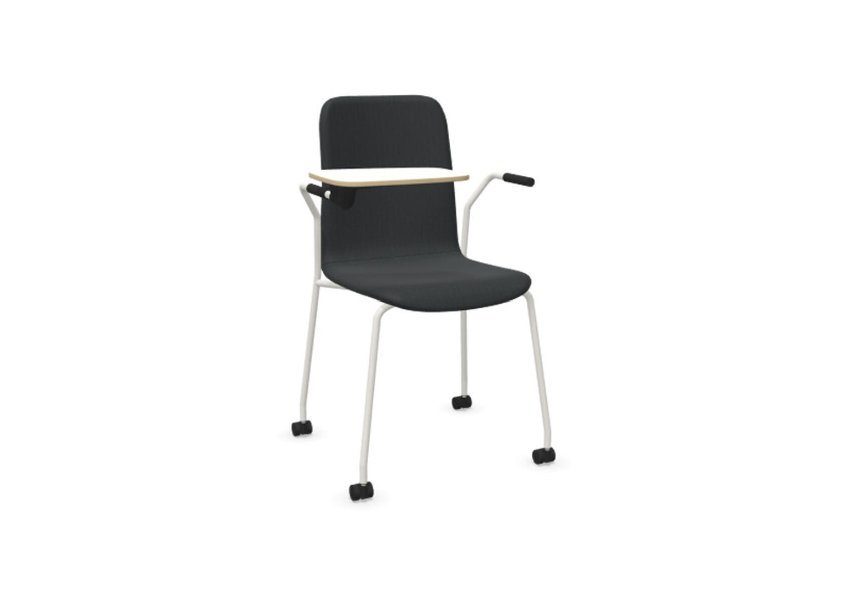 Seteskall i formpresset kryssfiner trukket med kaldskum, som gir både komfort og støtte. Stabilt pulverlakkert stativ av 18 mm rør med møbeltasser for å beskytte gulvet. Skriveplate i kryssfiner belagt med laminat, tykkelse 10,5 mm. For enda større fleksibilitet finnes koblingsbeslag og rekkekoblingsbeslag (selges separat), som gjør det enkelt å lage rekker eller gruppesitteplasser. Maksimal vekt: 110 kg. Stolen er ikke stabelbar.