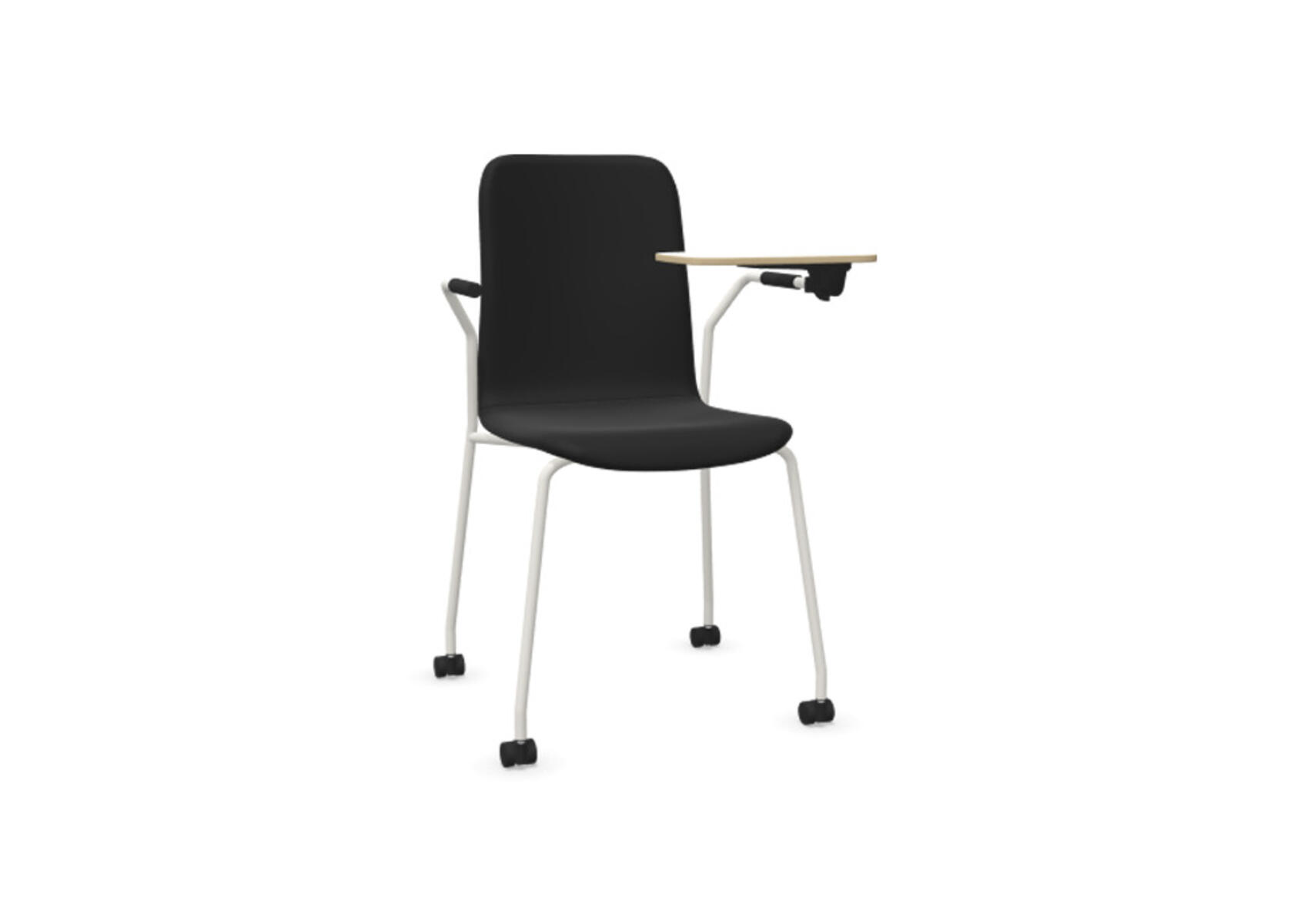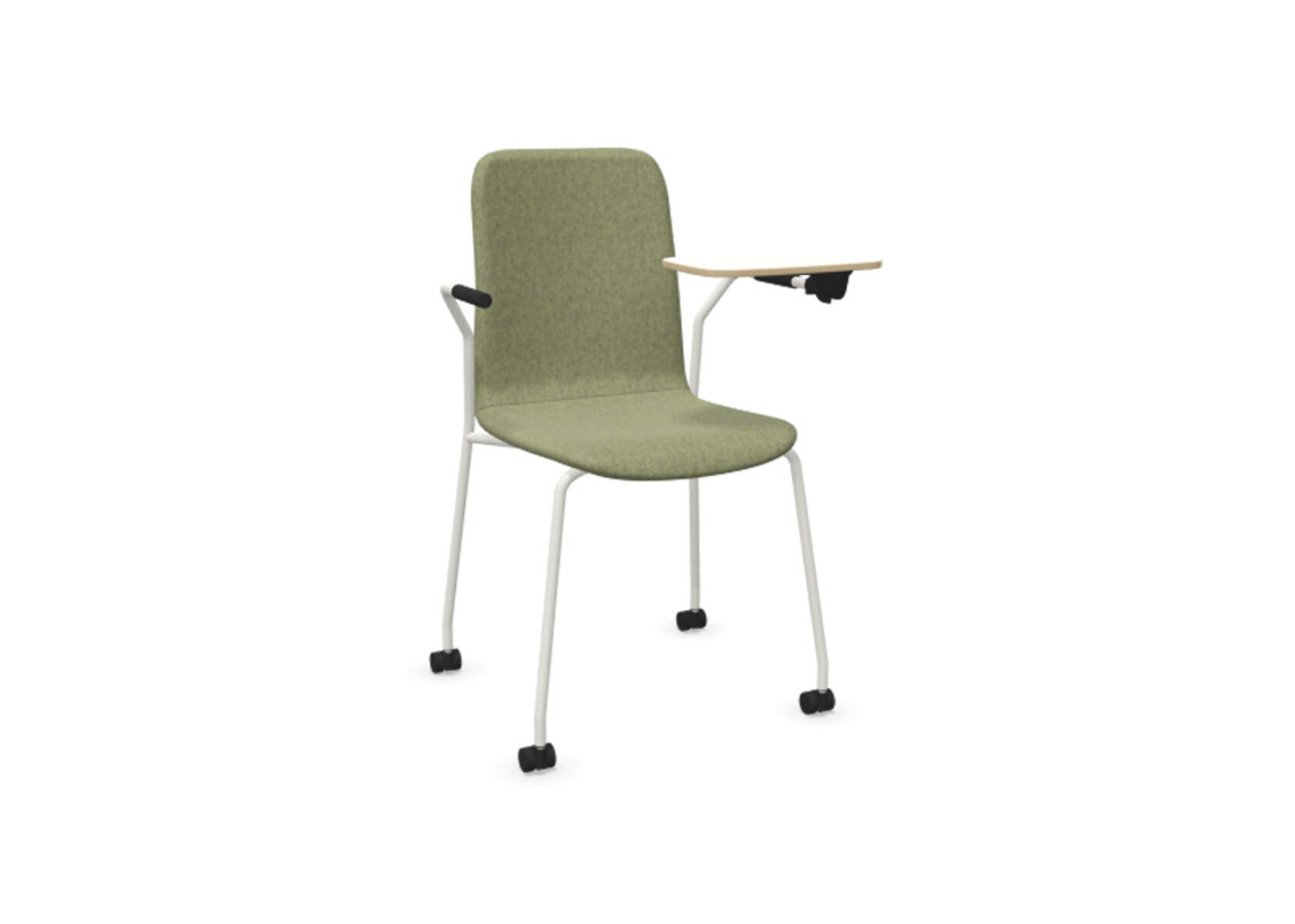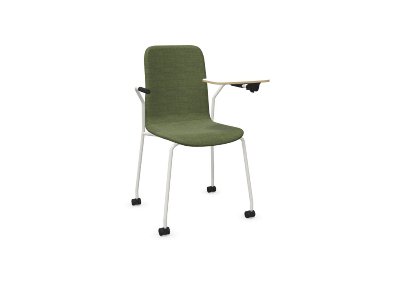 Seteskall i formpresset kryssfiner trukket med kaldskum, som gir både komfort og støtte. Stabilt pulverlakkert stativ av 18 mm rør med møbeltasser for å beskytte gulvet. Skriveplate i kryssfiner belagt med laminat, tykkelse 10,5 mm. For enda større fleksibilitet finnes koblingsbeslag og rekkekoblingsbeslag (selges separat), som gjør det enkelt å lage rekker eller gruppesitteplasser. Maksimal vekt: 110 kg. Stolen er ikke stabelbar.