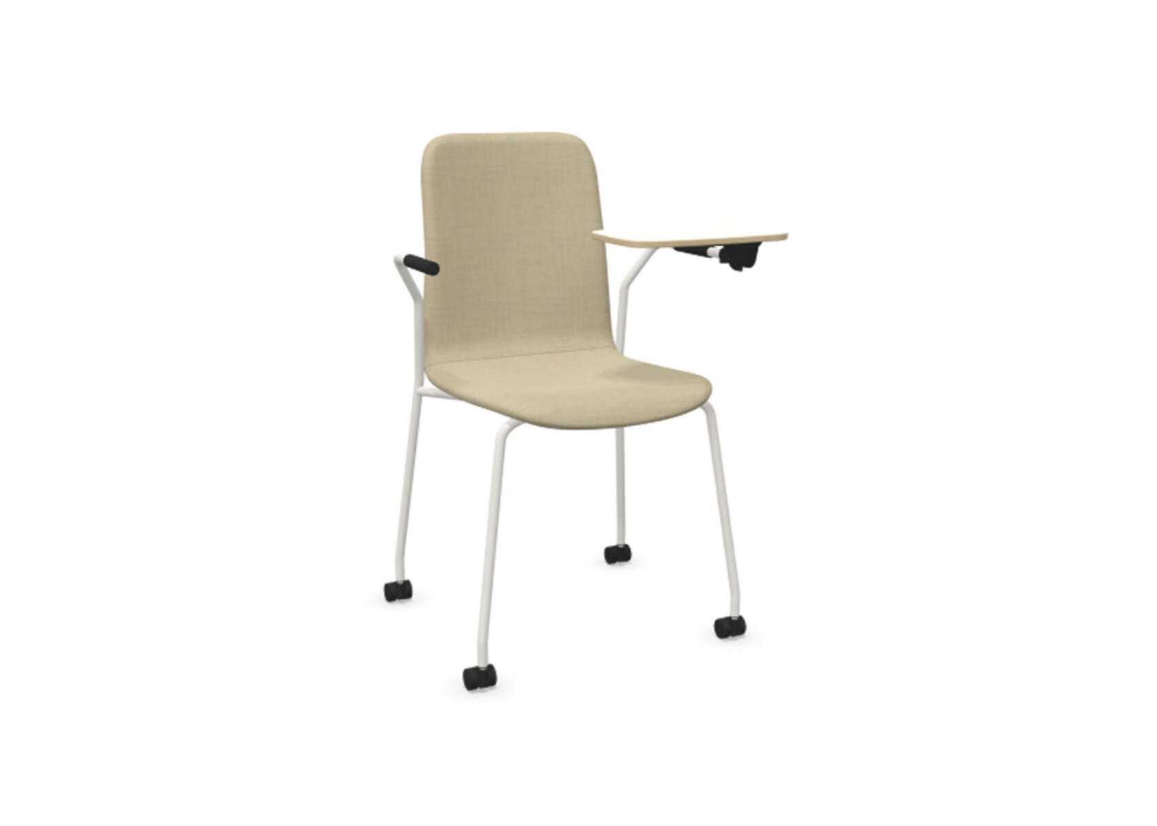 Stol Vapaa høy rygg helkledd med skriveplate 4-ben med hjul hvit