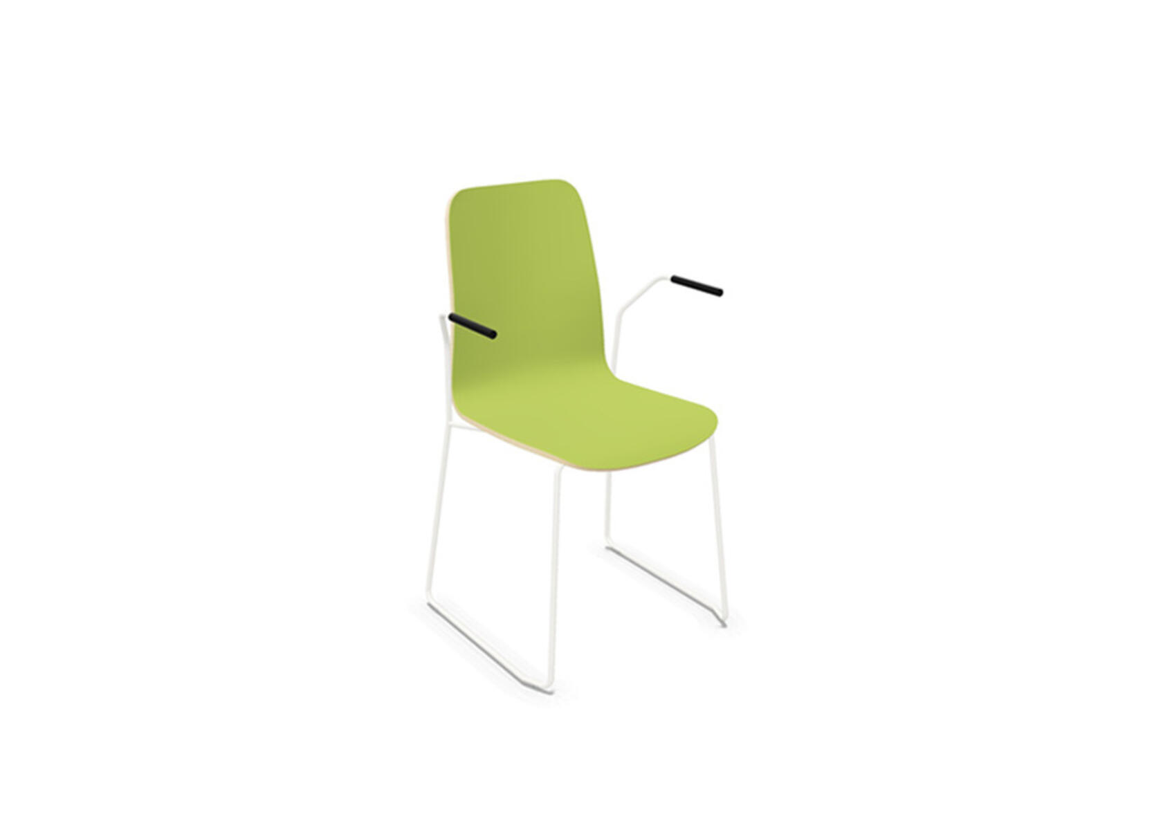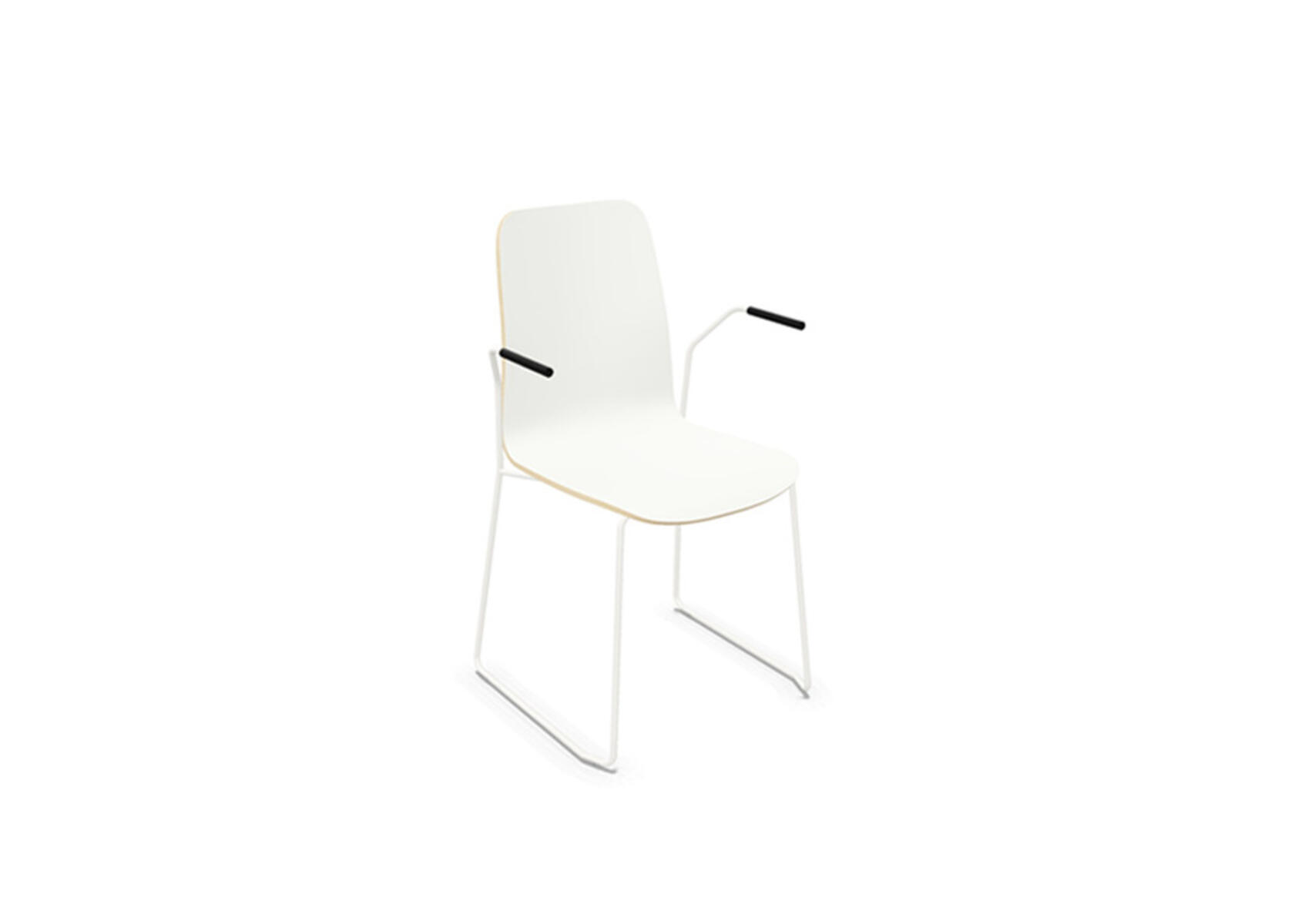 Seteskall i formpresset kryssfiner belagt med høytrykkslaminat. Stabilt pulverlakkert understell av 12 mm rør med møbeltasser for å beskytte gulvet. Armlener finnes som tilvalg. Maksimal vekt: 110 kg. Stolen kan stables opp til 6 stk.