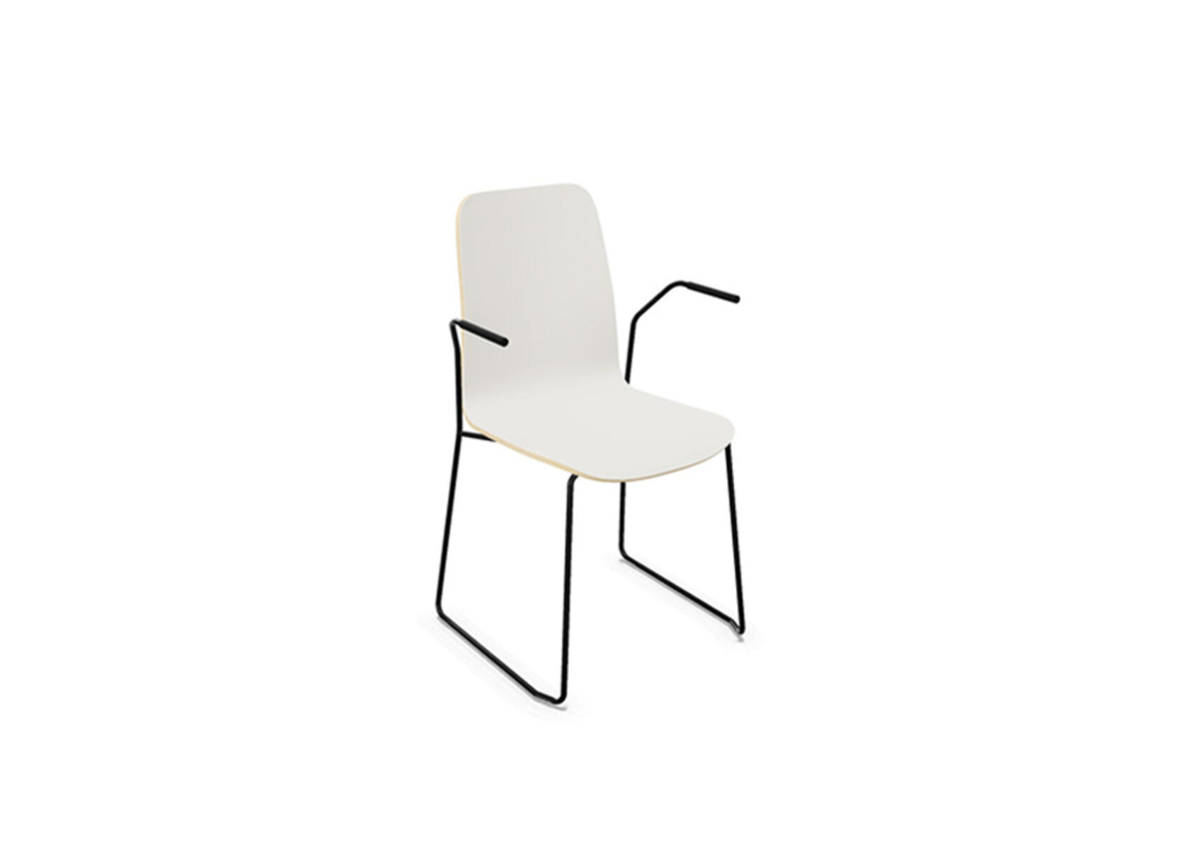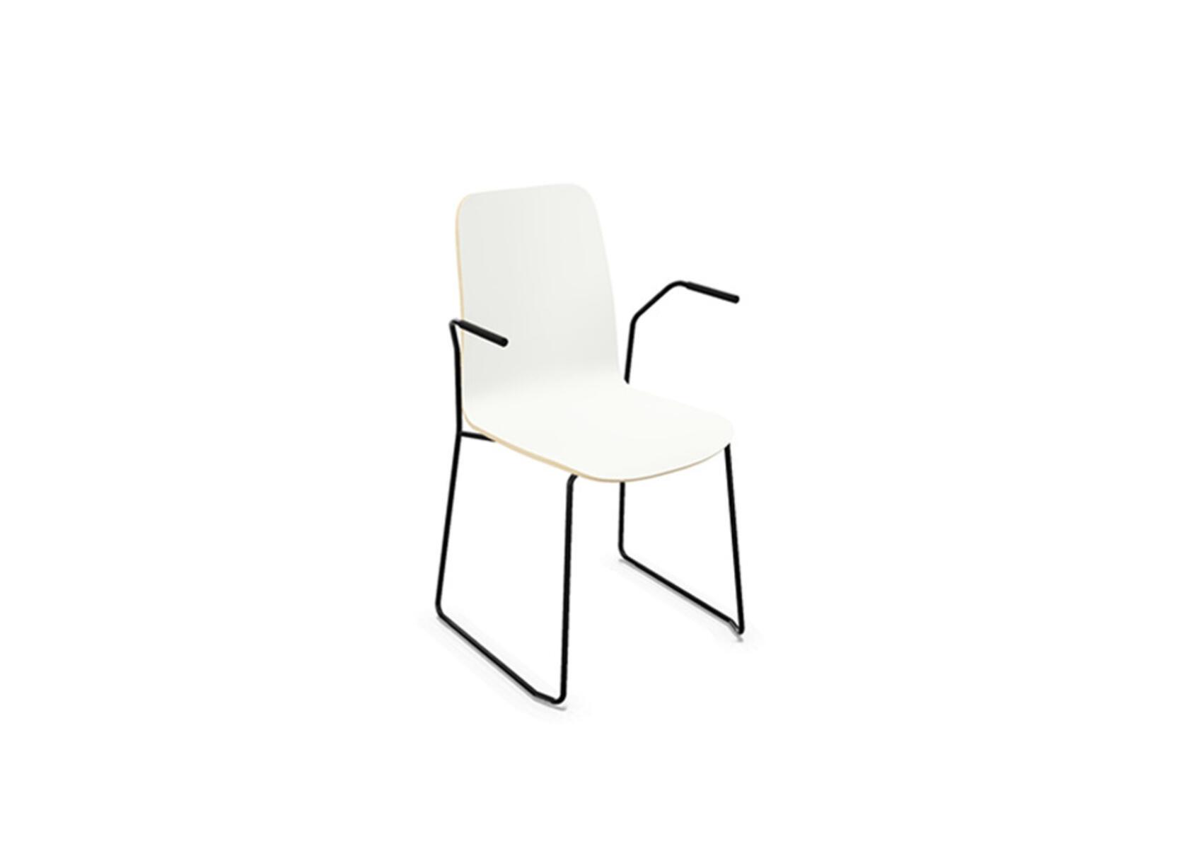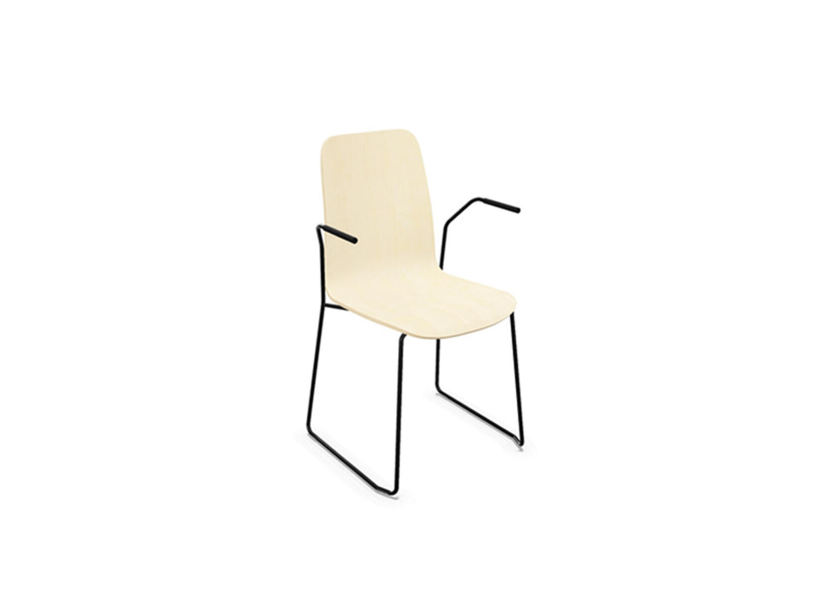 Seteskall i formpresset kryssfiner belagt med høytrykkslaminat. Stabilt pulverlakkert understell av 12 mm rør med møbeltasser for å beskytte gulvet. Armlener finnes som tilvalg. Maksimal vekt: 110 kg. Stolen kan stables opp til 6 stk.