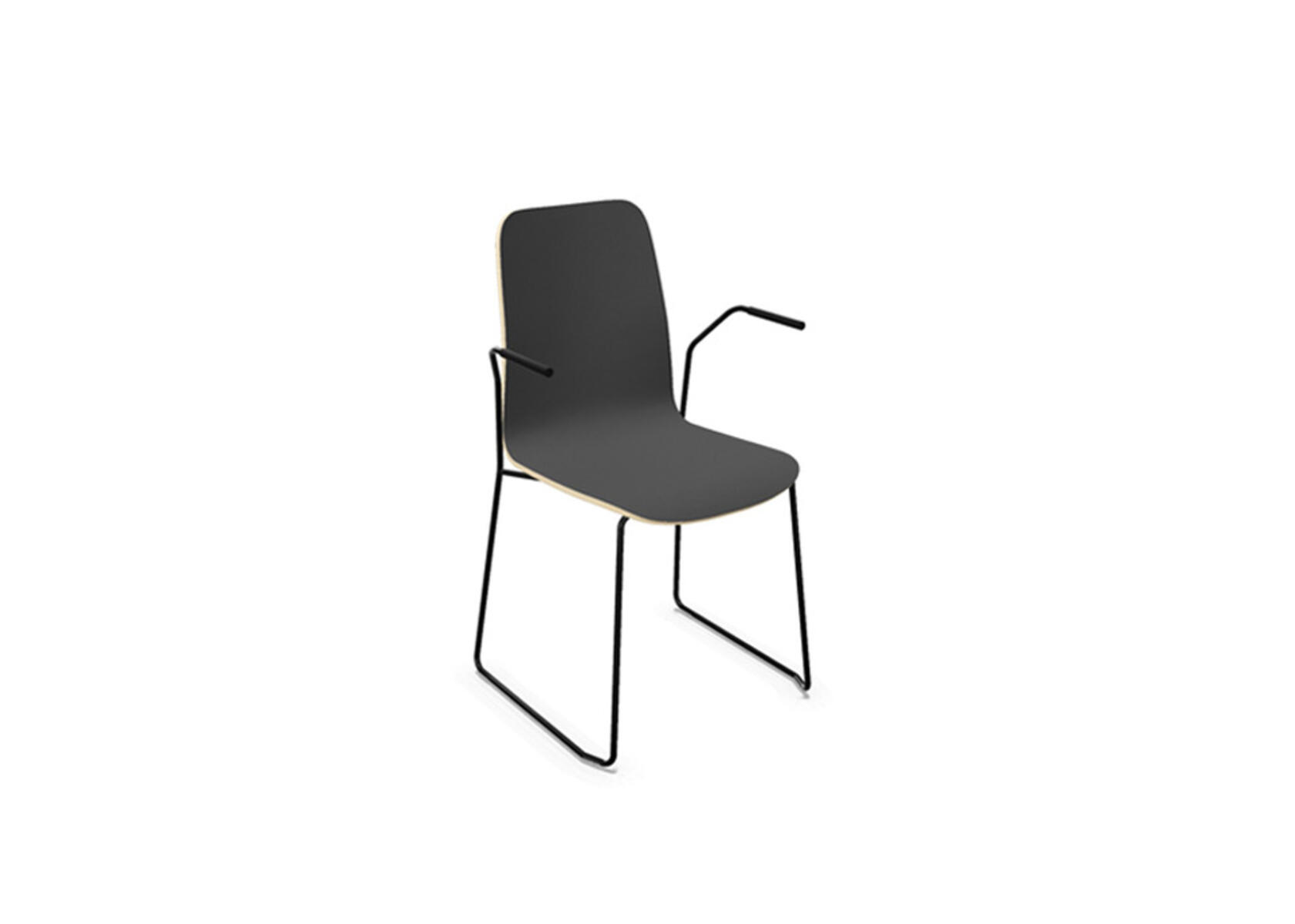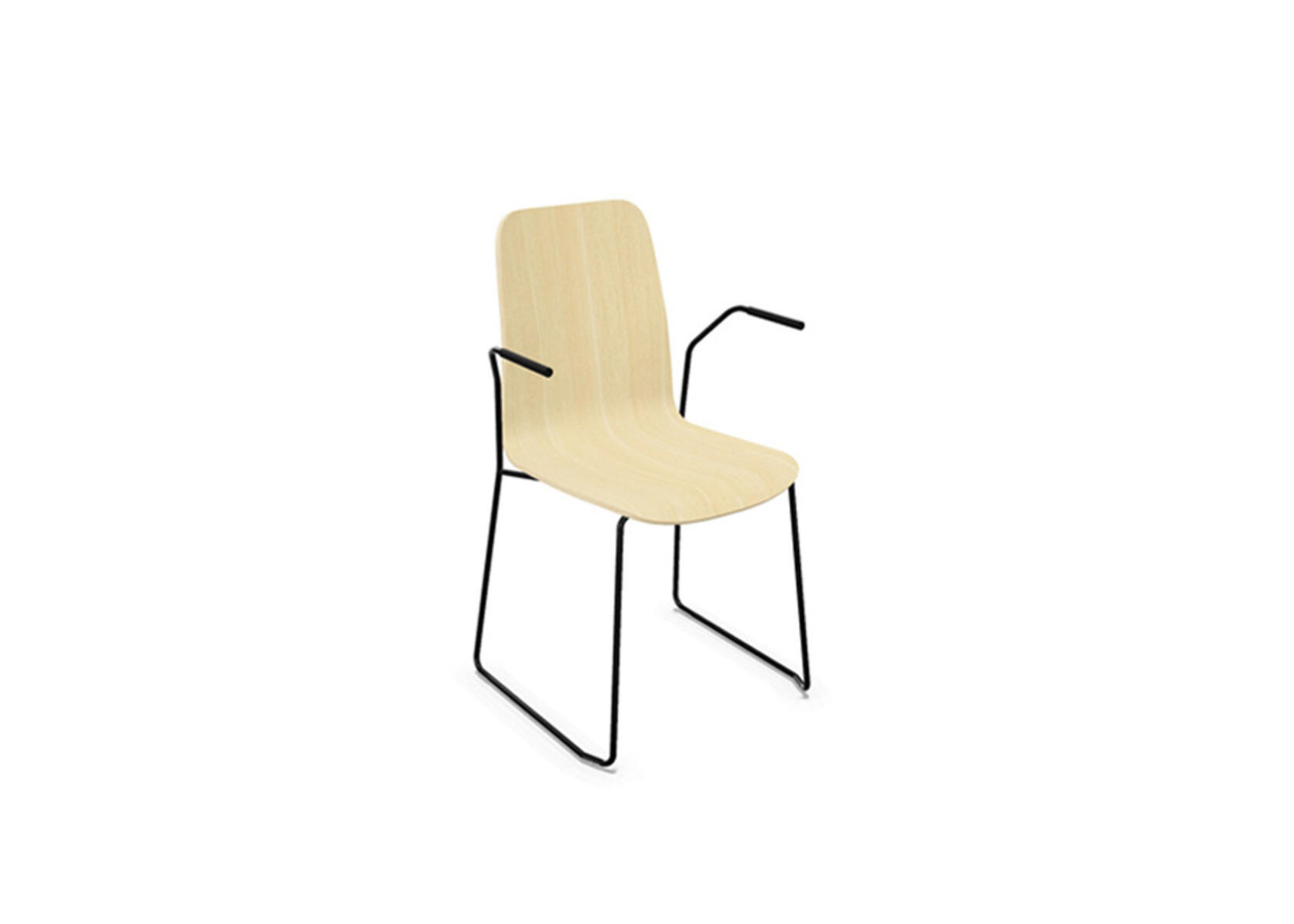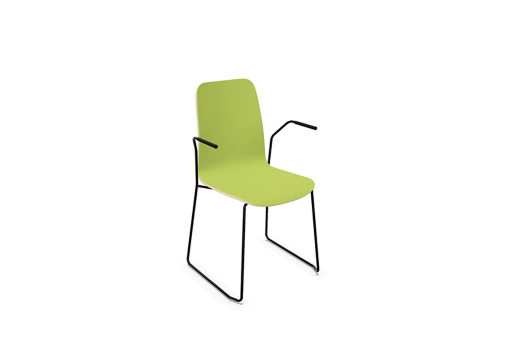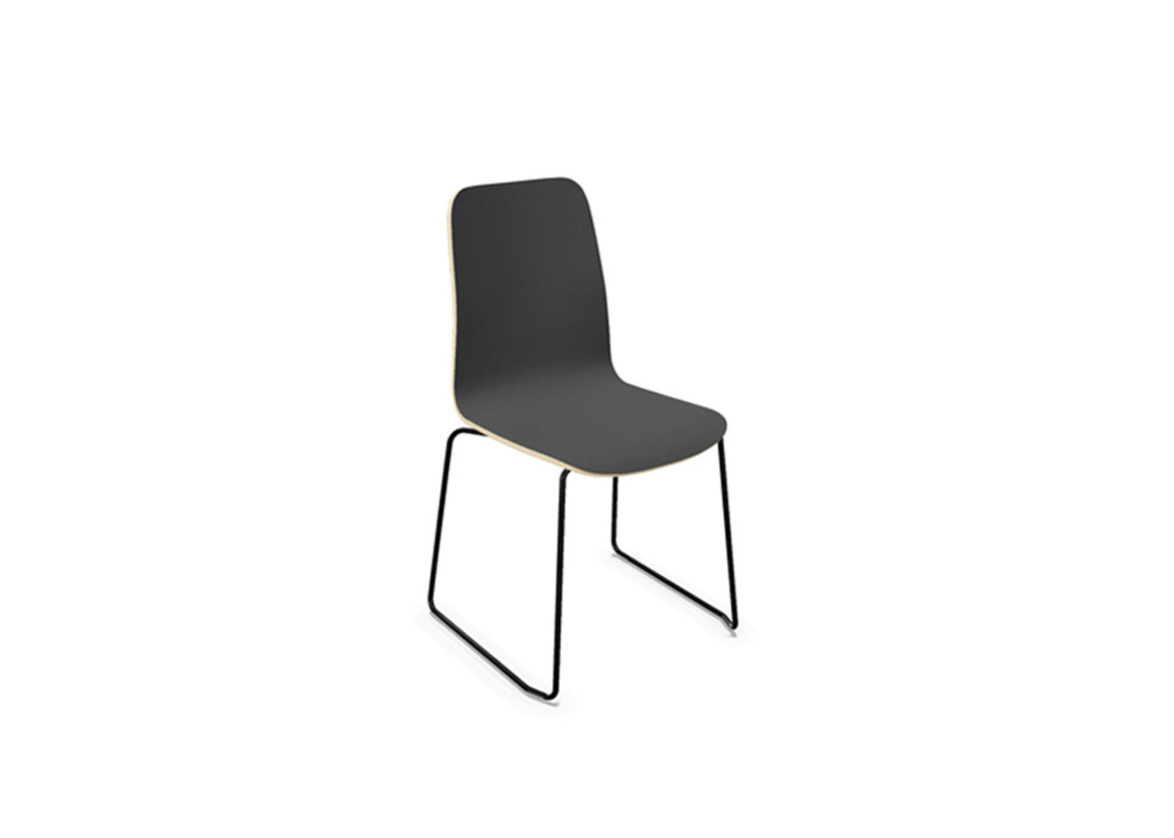 Seteskall i formpresset kryssfiner belagt med høytrykkslaminat. Stabilt pulverlakkert understell av 12 mm rør med møbeltasser for å beskytte gulvet. Armlener finnes som tilvalg. Maksimal vekt: 110 kg. Stolen kan stables opp til 6 stk.