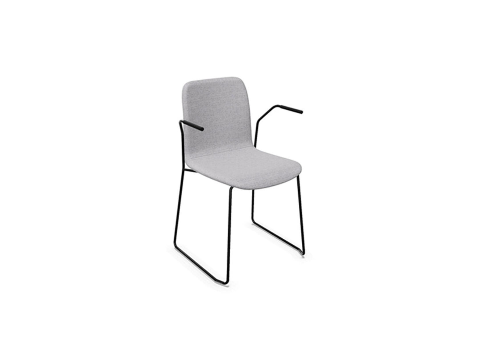 Seteskall i formpresset kryssfiner kleddmed kaldskum, som gir både komfort og støtte. Stabilt pulverlakkert understell av 12 mm rør med møbeltasser for å beskytte gulvet. Armlener finnes som tilvalg. Maksimal vekt: 110 kg. Stolen kan stables opp til 6 stk.