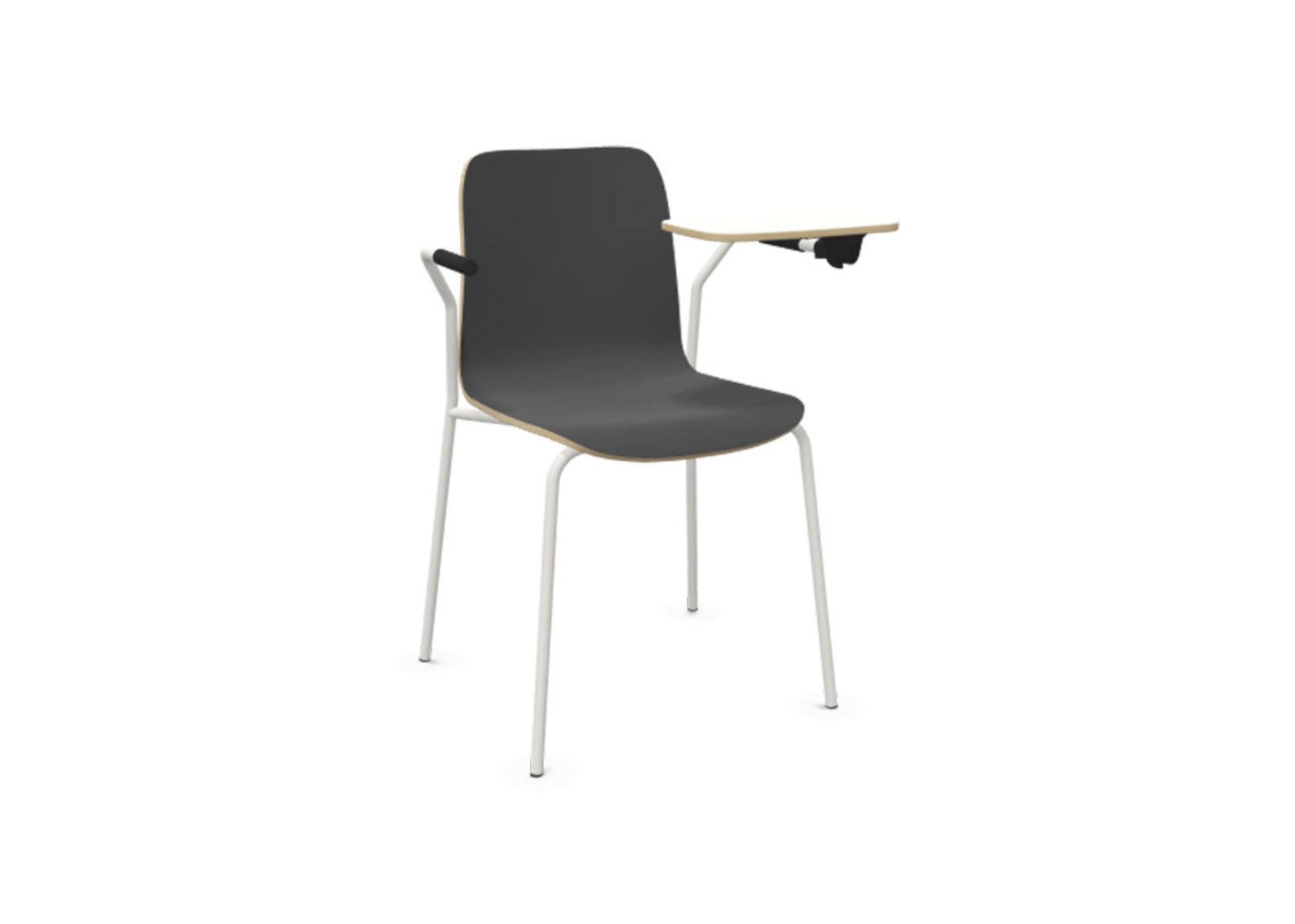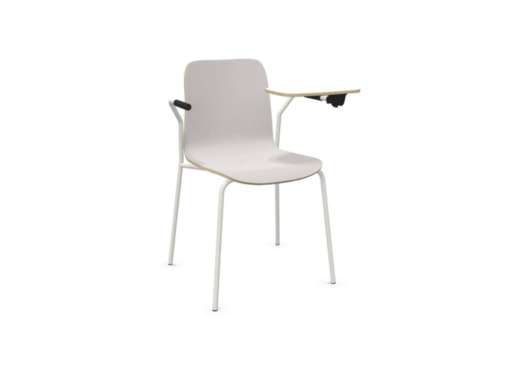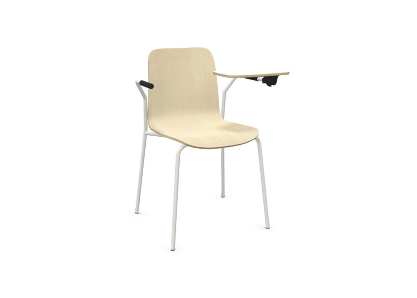 Seteskall i formpresset kryssfiner trukket med kaldskum, som gir både komfort og støtte. Stabilt pulverlakkert stativ av 18 mm rør med møbeltasser for å beskytte gulvet. Skriveplate i kryssfiner belagt med laminat, tykkelse 10,5 mm. For enda større fleksibilitet finnes koblingsbeslag og rekkekoblingsbeslag (selges separat), som gjør det enkelt å lage rekker eller gruppesitteplasser. Maksimal vekt: 110 kg. Stolen er ikke stabelbar.