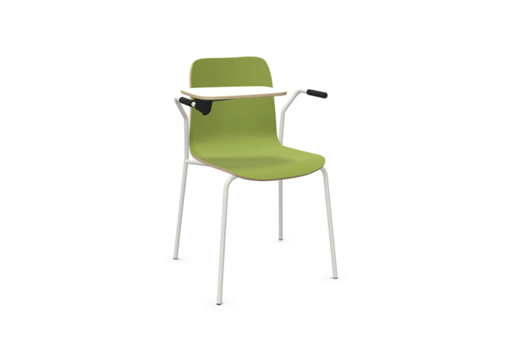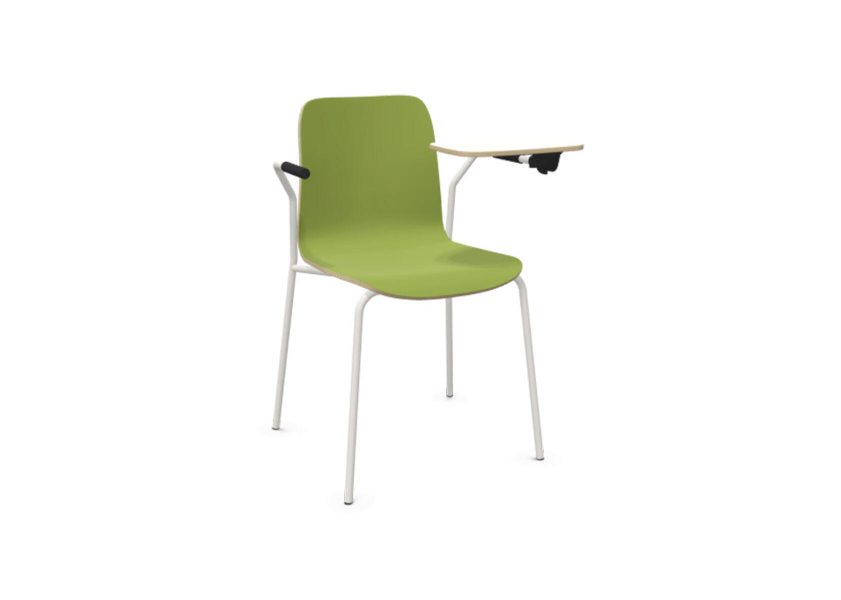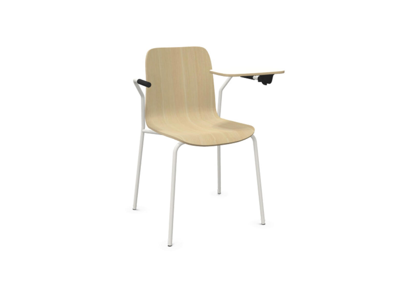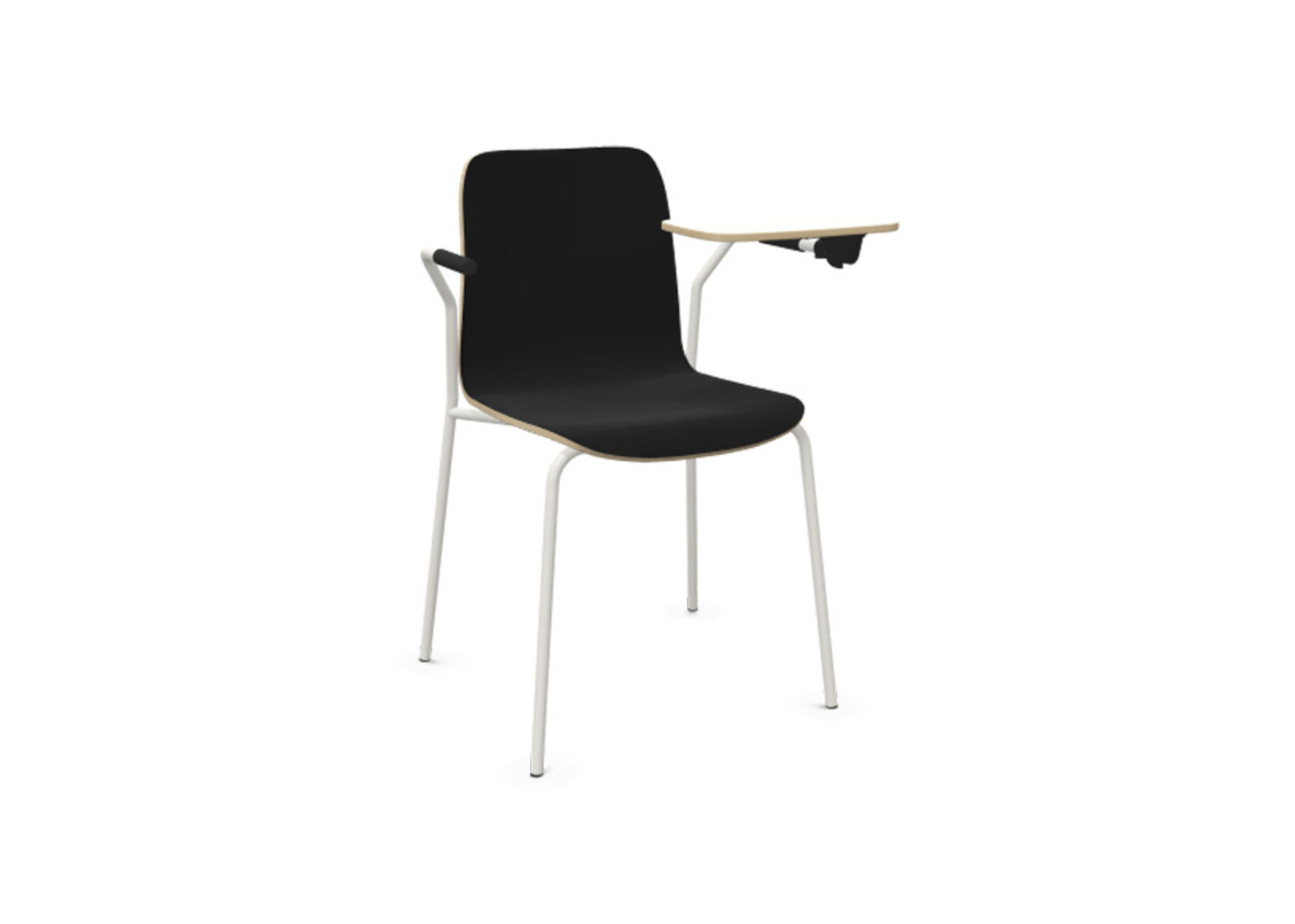 Seteskall i formpresset kryssfiner trukket med kaldskum, som gir både komfort og støtte. Stabilt pulverlakkert stativ av 18 mm rør med møbeltasser for å beskytte gulvet. Skriveplate i kryssfiner belagt med laminat, tykkelse 10,5 mm. For enda større fleksibilitet finnes koblingsbeslag og rekkekoblingsbeslag (selges separat), som gjør det enkelt å lage rekker eller gruppesitteplasser. Maksimal vekt: 110 kg. Stolen er ikke stabelbar.