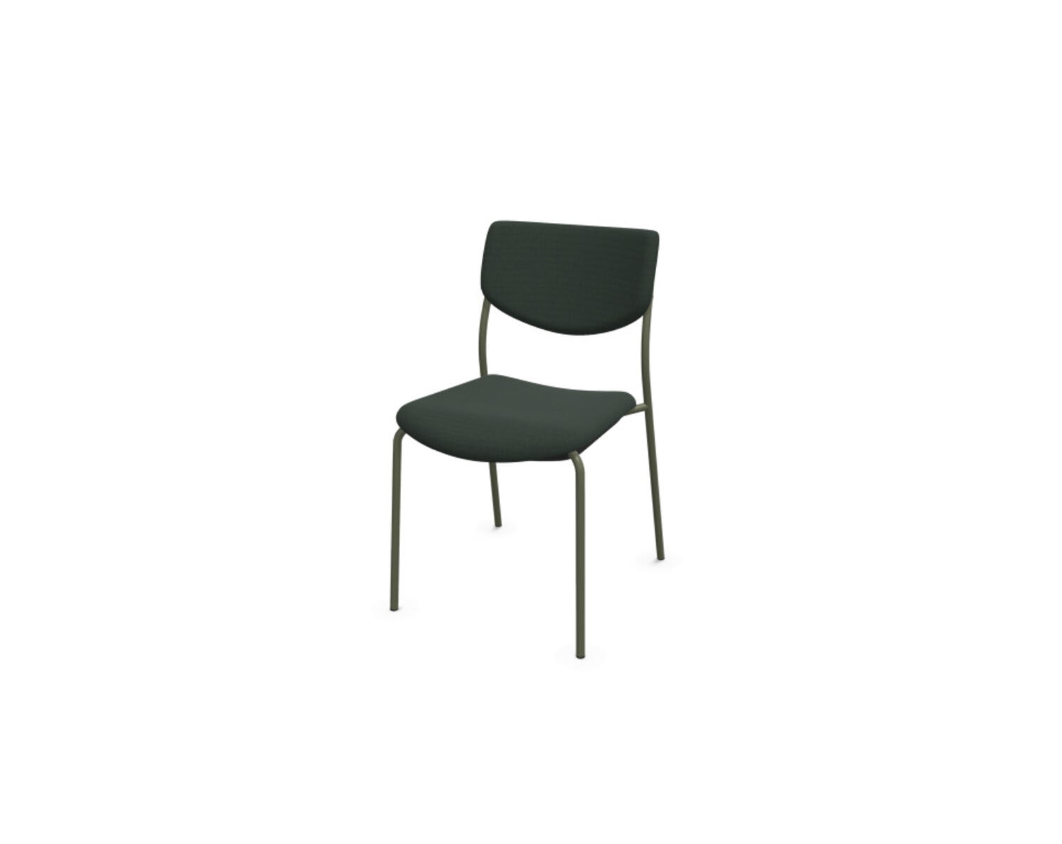 Understell i pulverlakkert metall. Sete og rygg er trukket i Cura – et allsidig, tofarget melert møbelstoff laget av 100 % resirkulert polyester. Maks belastning: 150 kg. Stolen kan stables opptil 8 enheter.
