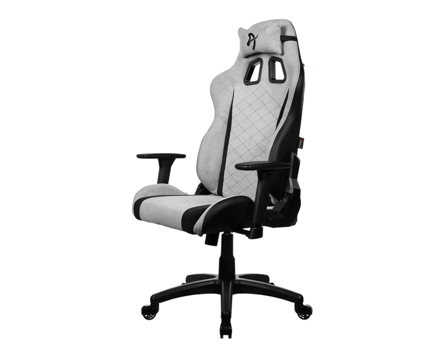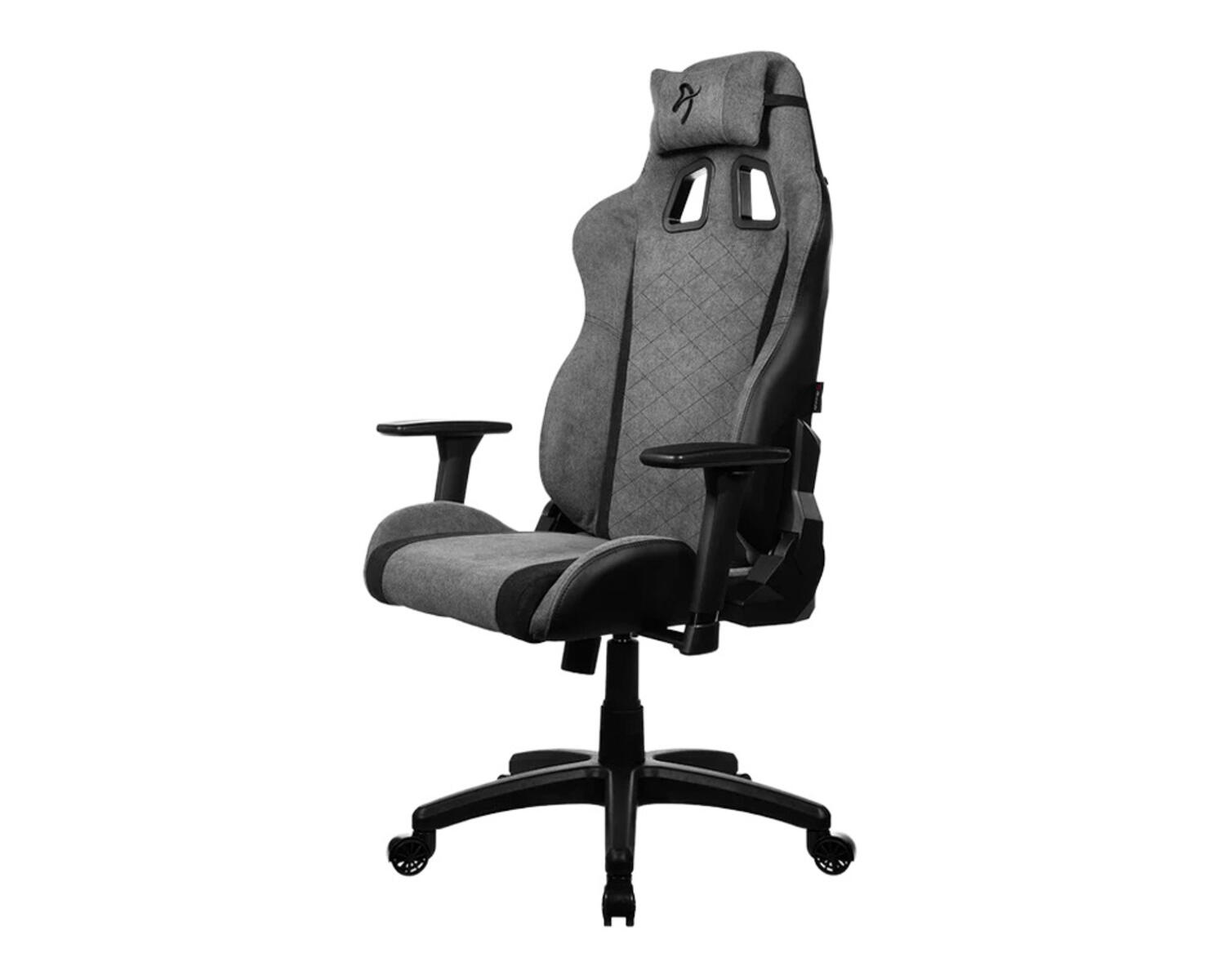 Ergonomisk spillestol i slitesterkt polyesterstoff. Bredt sete og rygg, samt ekstra tykk polstring i sete, ryggstøtte og armlener for høy komfort. Sort nylonkryss med ekerformede doble nylonhjul. Stolen kan låses i oppreist posisjon eller vippes fritt opptil 12° med justerbar motstand. Justerbar ryggstøtte i låsbare trinn på 4°. 3D-armlener – justerbare i høyde, sideveis og dybde. Lett konstruksjon for enkel forflytning. Justerbar høyde med gasslift som tåler opptil 120 kg.
