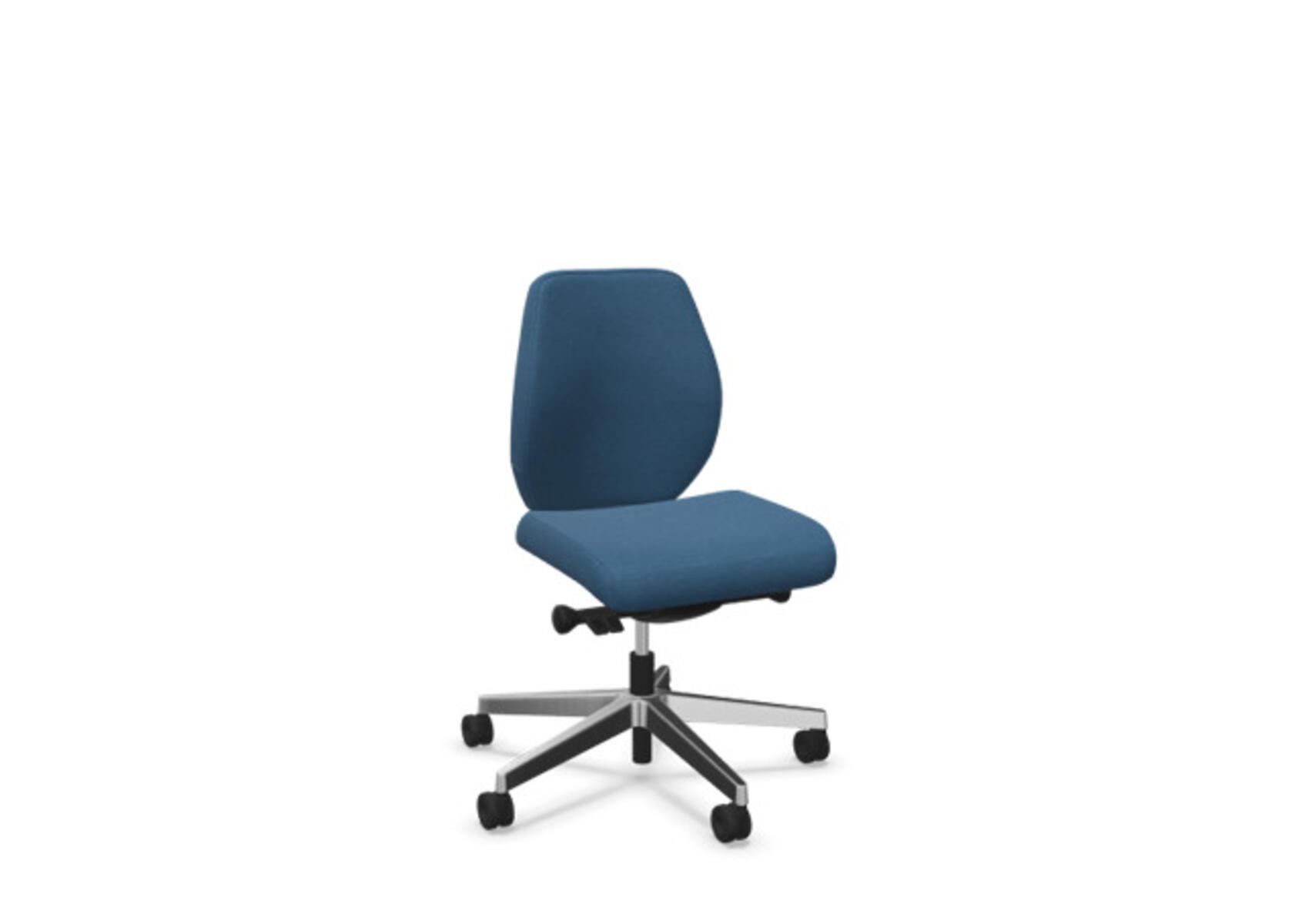 En stilren og ergonomisk kontorstol med heltrukket lav rygg og synkronmekanisme samt justering av sittedybde, utformet for å gi støtte ved aktiv sitting gjennom hele arbeidsdagen. Den synkroniserte vippen mellom ryggstøtte og sete gir en aktiv og komfortabel sittestilling. Ryggstøttens vippevinkel er 20° synkronisert med setets vippevinkel på 11°. Ryggstøtten kan låses i 5 ulike posisjoner for individuell tilpasning, og motstanden i ryggstøtten justeres enkelt med et dreiehjul. Ryggstøtten er høydejusterbar innenfor et område på 70 mm med 13 låseposisjoner. Sittedybden kan justeres innenfor et område på 50 mm. Stolen har også Anti-Shock-funksjon som hindrer ryggstøtten i å slå tilbake når vippen låses opp. Velg mellom kryss i svart polyamid eller polert aluminium samt selvbremsende hjul for myke eller harde gulv. Som tilvalg finnes også lumbalstøtte (Shukra-mekanisme), manuelt justerbar i dybden (20 mm) med et dreiehjul. Armlener i 1D, 2D, 3D eller 4D selges separat.