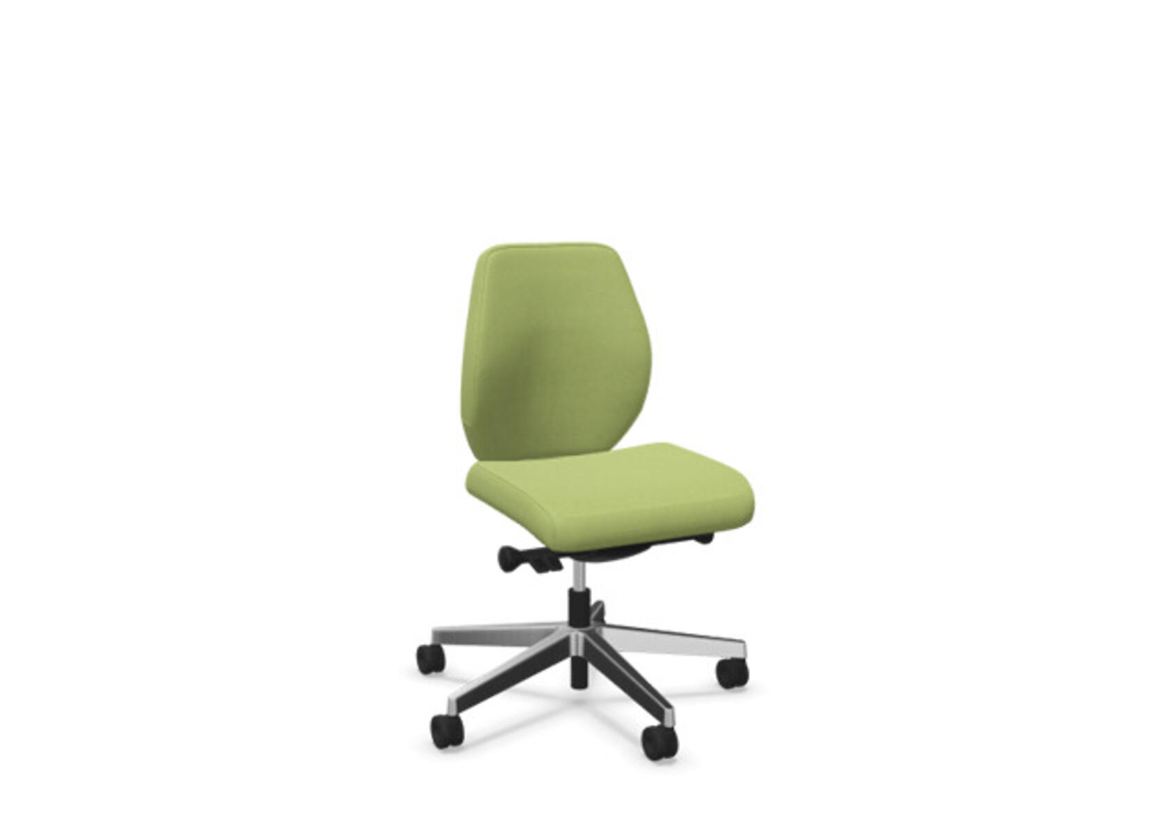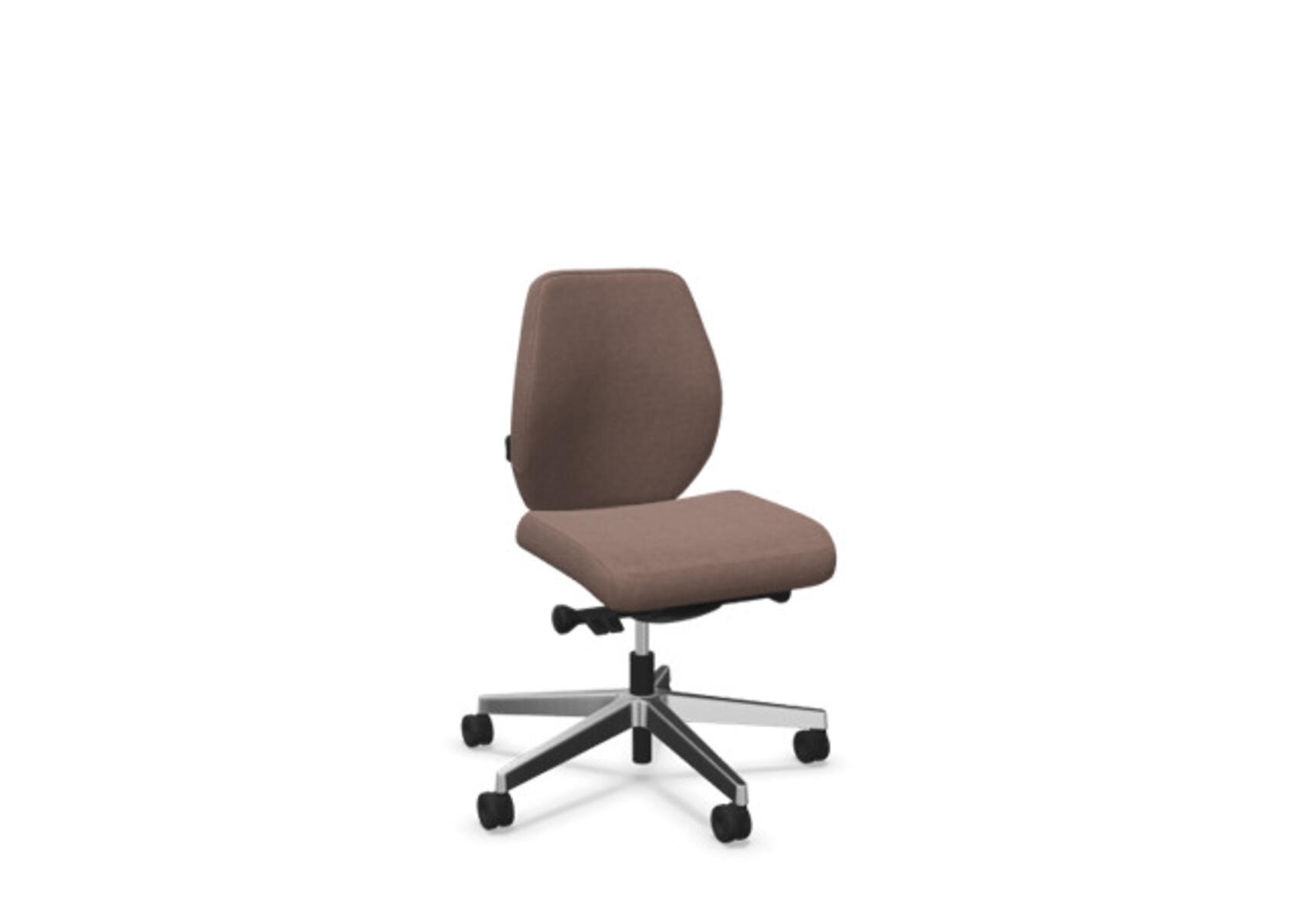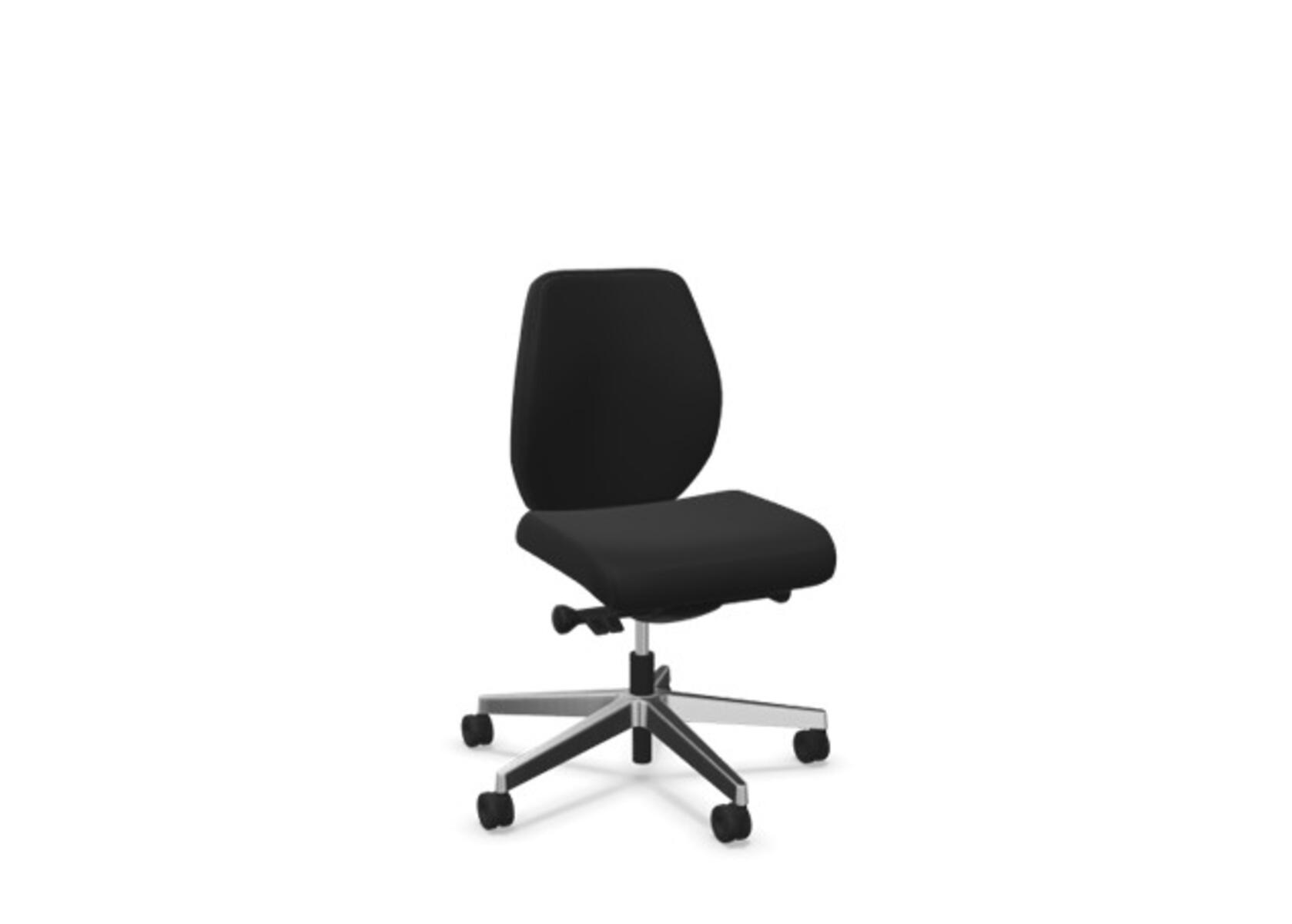 En stilren og ergonomisk kontorstol med heltrukket lav rygg og synkronmekanisme, utformet for å gi støtte ved aktiv sitting gjennom hele arbeidsdagen. Den synkroniserte bevegelsen mellom ryggstøtte og sete gir en aktiv og komfortabel sittestilling. Ryggstøttens vippevinkel er 20° synkronisert med setets vippevinkel på 11°. Ryggstøtten kan låses i 5 ulike posisjoner for individuell tilpasning, og motstanden i ryggstøtten justeres enkelt med et dreiehjul. Ryggstøtten er høydejusterbar innenfor et område på 70 mm med 13 låseposisjoner. Stolen har også Anti-Shock-funksjon som hindrer ryggstøtten i å slå tilbake når vippen låses opp. Velg mellom kryss i svart polyamid eller polert aluminium samt selvbremsende hjul for myke eller harde gulv. Som tilvalg finnes også lumbalstøtte (Shukra-mekanisme), manuelt justerbar i dybden (20 mm) med et dreiehjul. Armlener i 1D, 2D, 3D eller 4D selges separat.