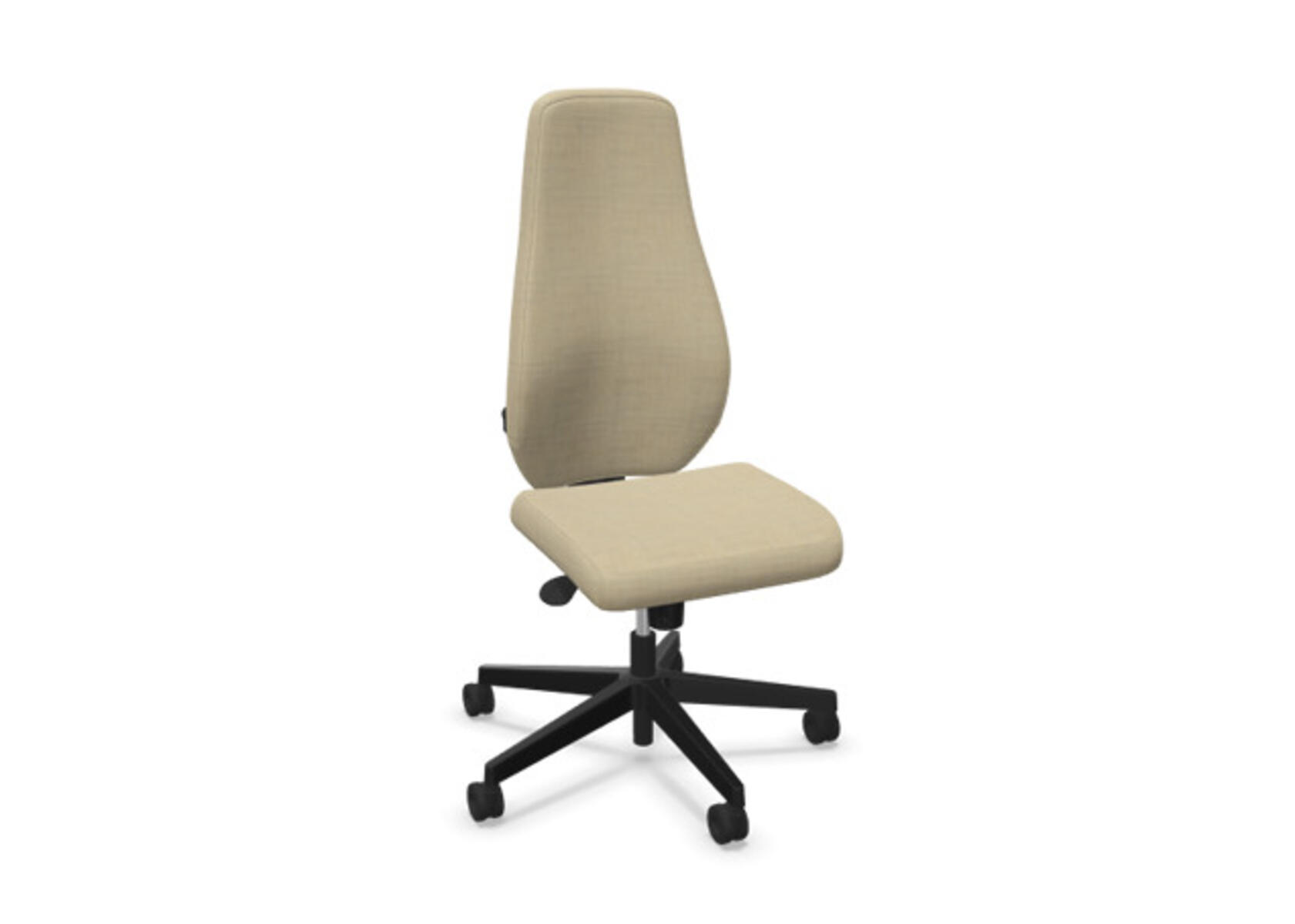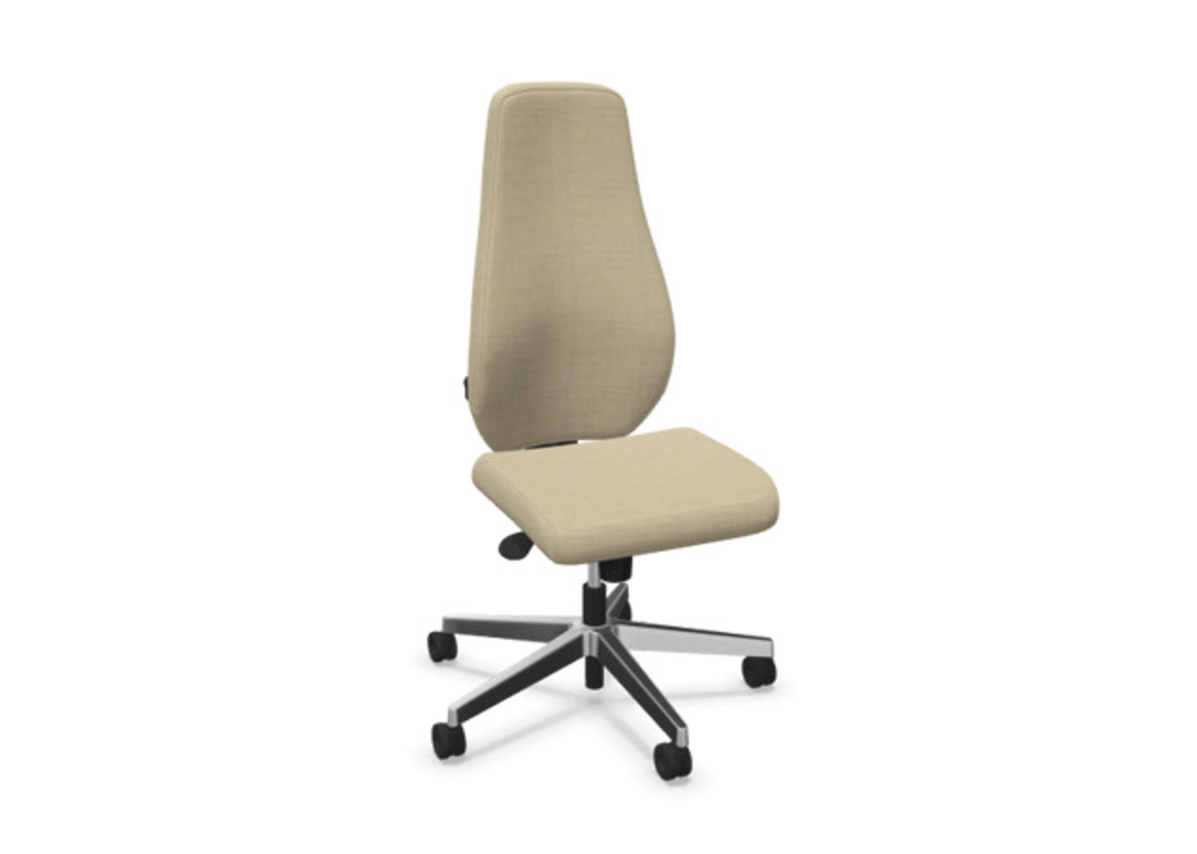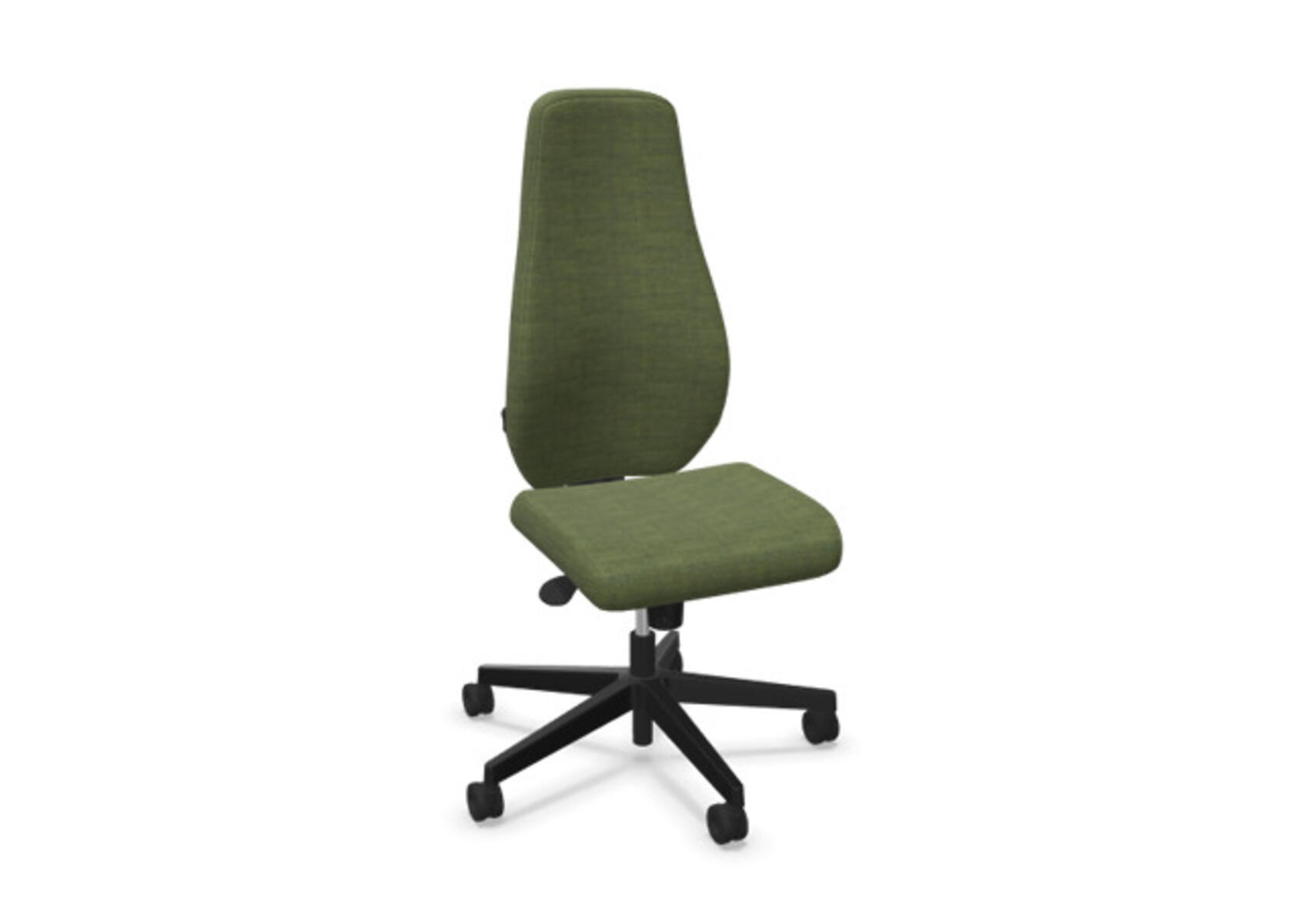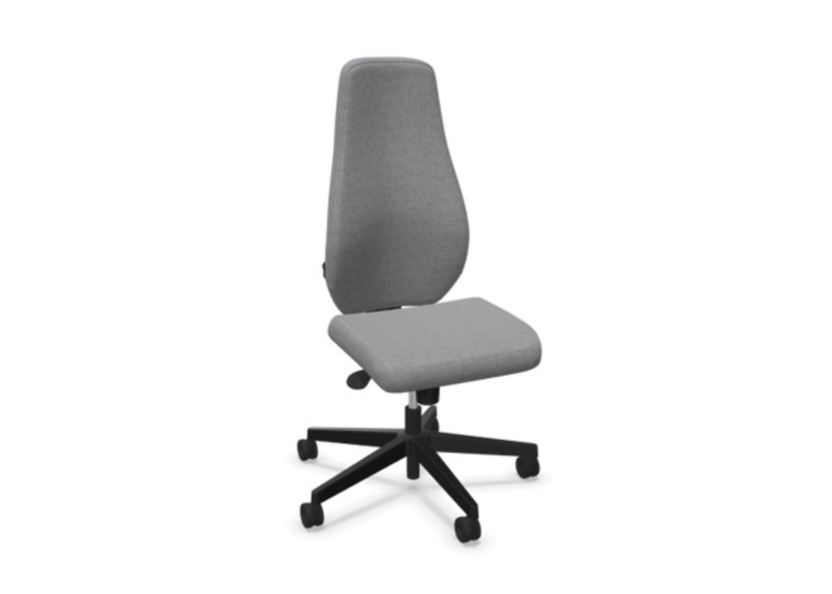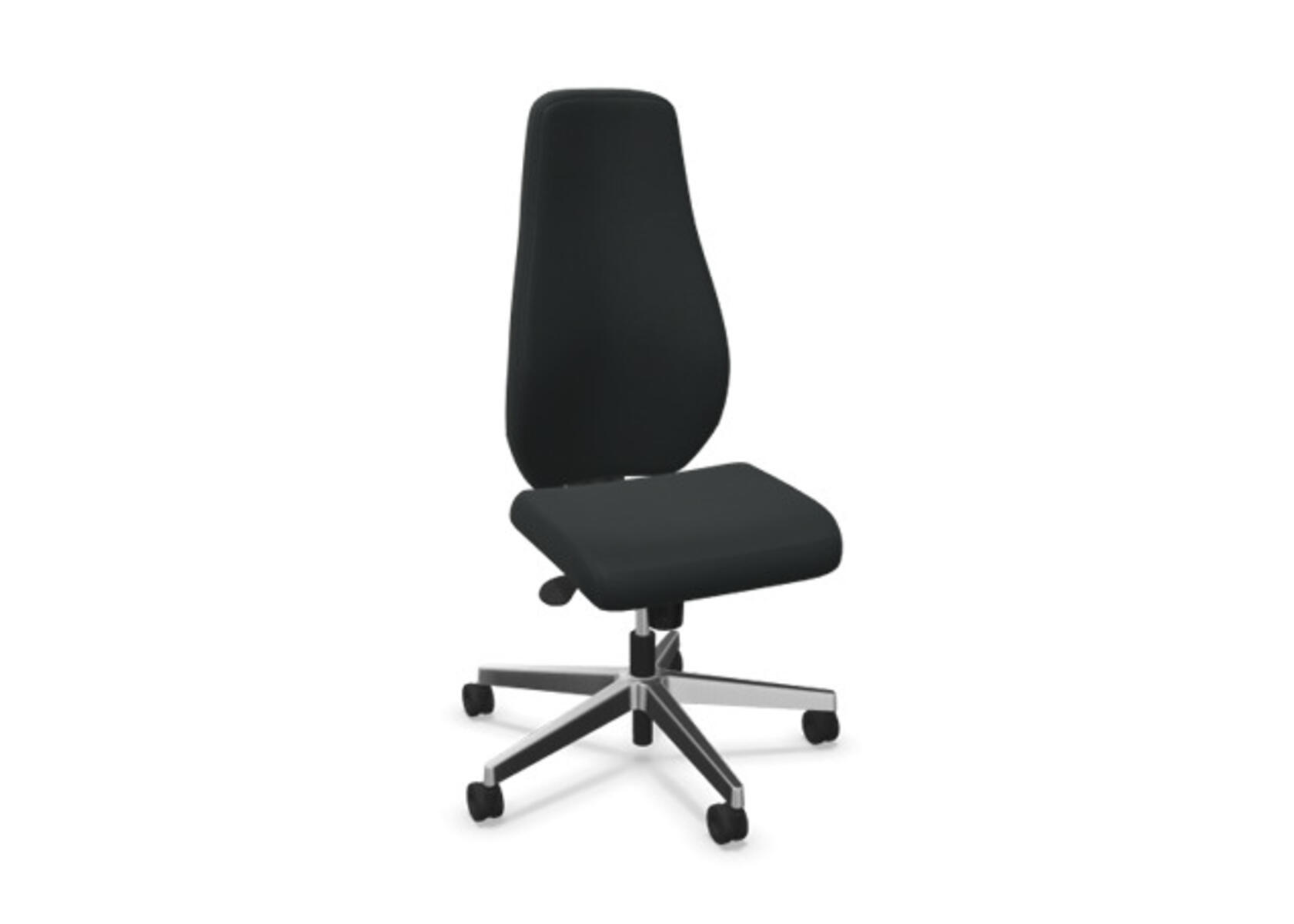 En stilren og ergonomisk kontorstol med heltrukket høy rygg og synkronmekanisme, utformet for å gi støtte ved aktiv sitting gjennom hele arbeidsdagen. Den synkroniserte vippen mellom ryggstøtte og sete gir en aktiv og komfortabel sittestilling. Ryggstøttens vippevinkel er 20° synkronisert med setets vippevinkel på 11°. Ryggstøtten kan låses i 5 ulike posisjoner for individuell tilpasning, og motstanden i ryggstøtten justeres enkelt med et dreiehjul. Ryggstøtten er høydejusterbar innenfor et område på 70 mm med 13 låseposisjoner. Stolen har også Anti-Shock-funksjon som hindrer ryggstøtten i å slå tilbake når vippen låses opp. Velg mellom kryss i svart polyamid eller polert aluminium samt selvbremsende hjul for myke eller harde gulv. Som tilvalg finnes også lumbalstøtte (Shukra-mekanisme), manuelt justerbar i dybden (20 mm) med et dreiehjul. Armlener i 1D, 2D, 3D eller 4D selges separat.