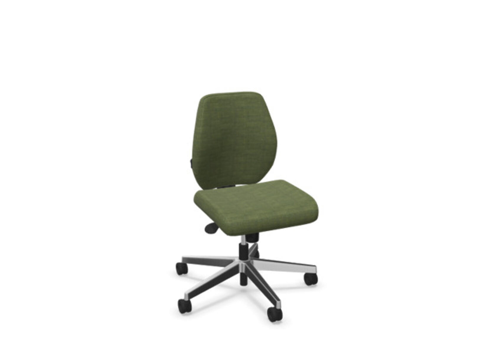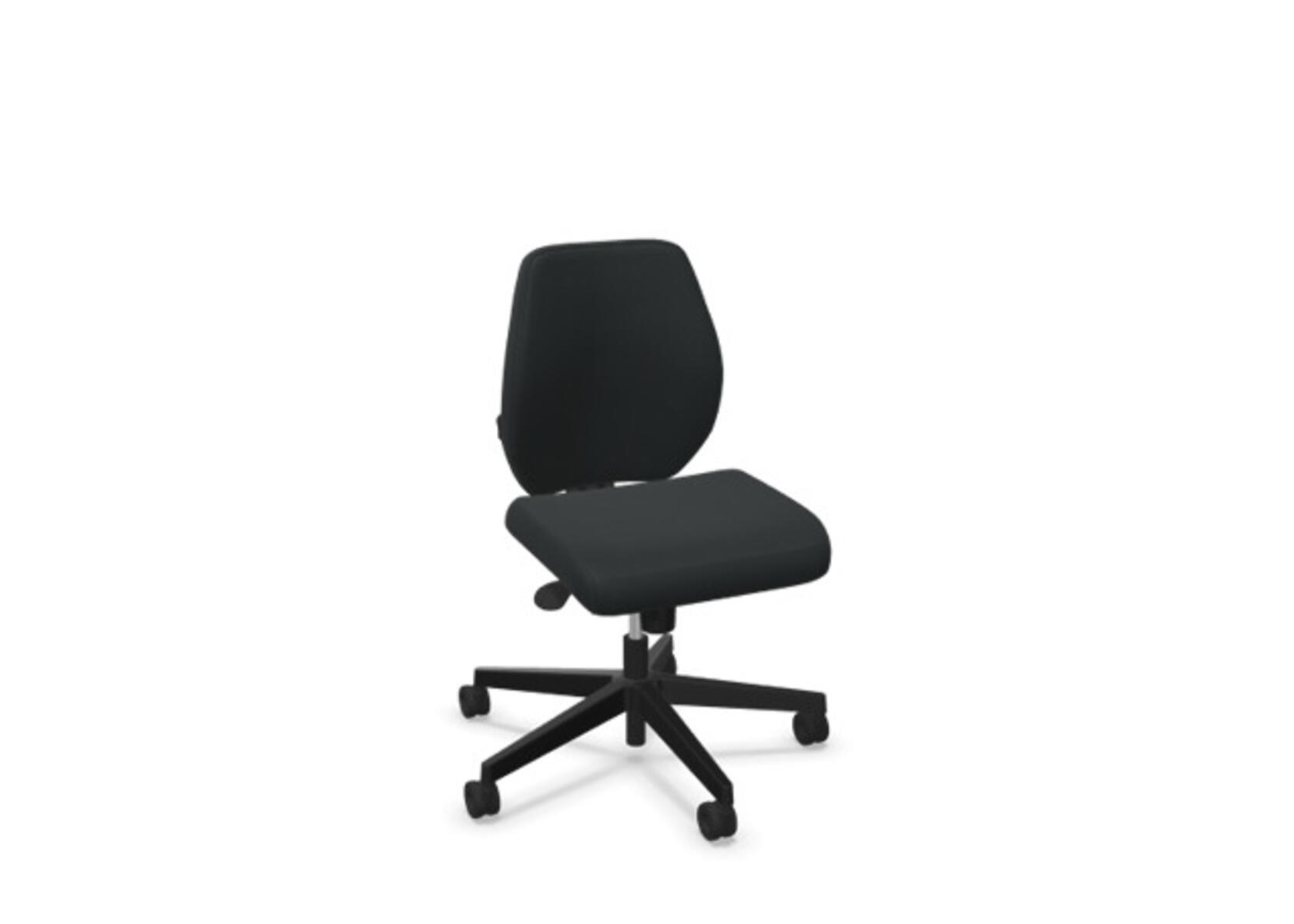 En stilren og ergonomisk kontorstol med heltrukket lav rygg og avansert synkronmekanisme samt justering av sittedybde, utformet for å gi støtte ved aktiv sitting gjennom hele arbeidsdagen. Den synkroniserte vippen mellom ryggstøtte og sete gir en aktiv og komfortabel sittestilling. Ryggstøttens vippevinkel er 23° synkronisert med setets vippevinkel på 10°. Ryggstøtten kan låses i 5 ulike posisjoner for individuell tilpasning, og motstanden i ryggstøtten justeres enkelt med et dreiehjul i 7 trinn. Ryggstøtten er høydejusterbar innenfor et område på 70 mm med 13 låseposisjoner. Sittedybden kan justeres innenfor et område på 60 mm. Negativ setevinkel på –2° synkronisert med ryggstøtte ved 5°, noe som sikrer optimalt ryggstøtte i alle vippeposisjoner. Stolen har også Anti-Shock-funksjon som hindrer ryggstøtten i å slå tilbake når vippen låses opp. Velg mellom kryss i svart polyamid eller polert aluminium samt selvbremsende hjul for myke eller harde gulv. Som tilvalg finnes også lumbalstøtte (Shukra-mekanisme), manuelt justerbar i dybden (20 mm) med et dreiehjul. Armlener i 1D, 2D, 3D eller 4D selges separat.