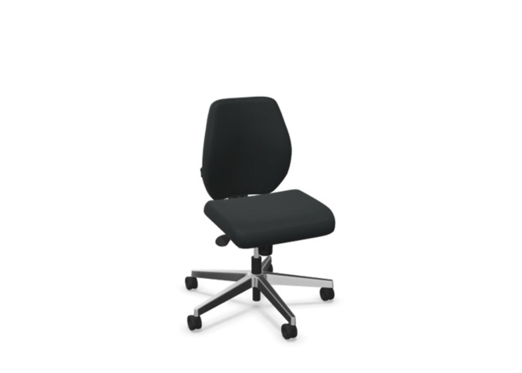 En stilren og ergonomisk kontorstol med heltrukket lav rygg og synkronmekanisme samt justering av sittedybde, utformet for å gi støtte ved aktiv sitting gjennom hele arbeidsdagen. Den synkroniserte vippen mellom ryggstøtte og sete gir en aktiv og komfortabel sittestilling. Ryggstøttens vippevinkel er 20° synkronisert med setets vippevinkel på 11°. Ryggstøtten kan låses i 5 ulike posisjoner for individuell tilpasning, og motstanden i ryggstøtten justeres enkelt med et dreiehjul. Ryggstøtten er høydejusterbar innenfor et område på 70 mm med 13 låseposisjoner. Sittedybden kan justeres innenfor et område på 50 mm. Stolen har også Anti-Shock-funksjon som hindrer ryggstøtten i å slå tilbake når vippen låses opp. Velg mellom kryss i svart polyamid eller polert aluminium samt selvbremsende hjul for myke eller harde gulv. Som tilvalg finnes også lumbalstøtte (Shukra-mekanisme), manuelt justerbar i dybden (20 mm) med et dreiehjul. Armlener i 1D, 2D, 3D eller 4D selges separat.