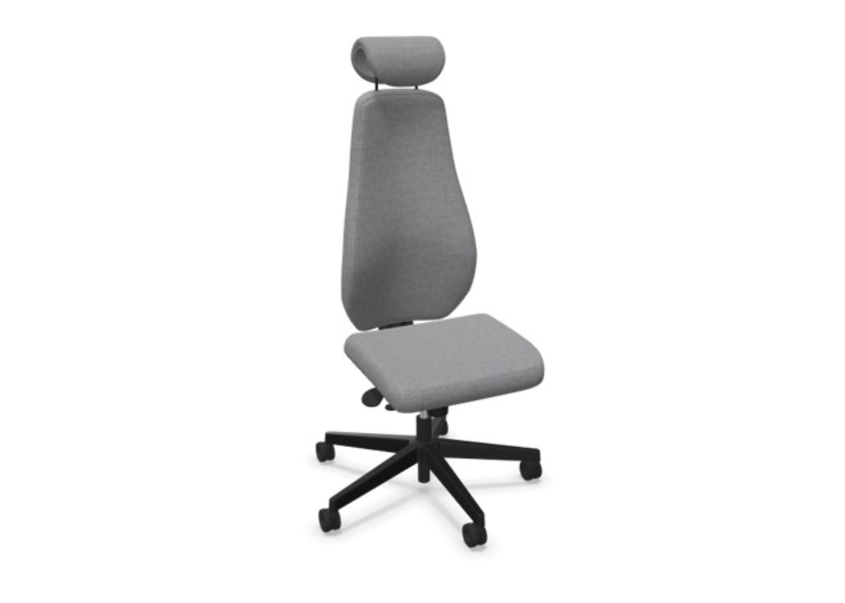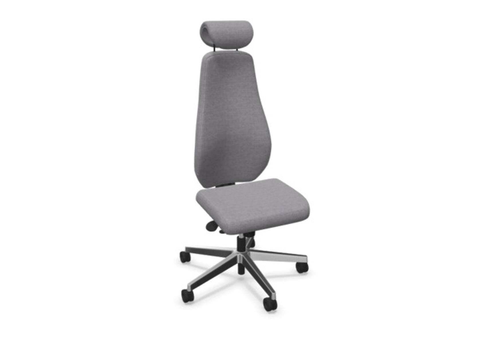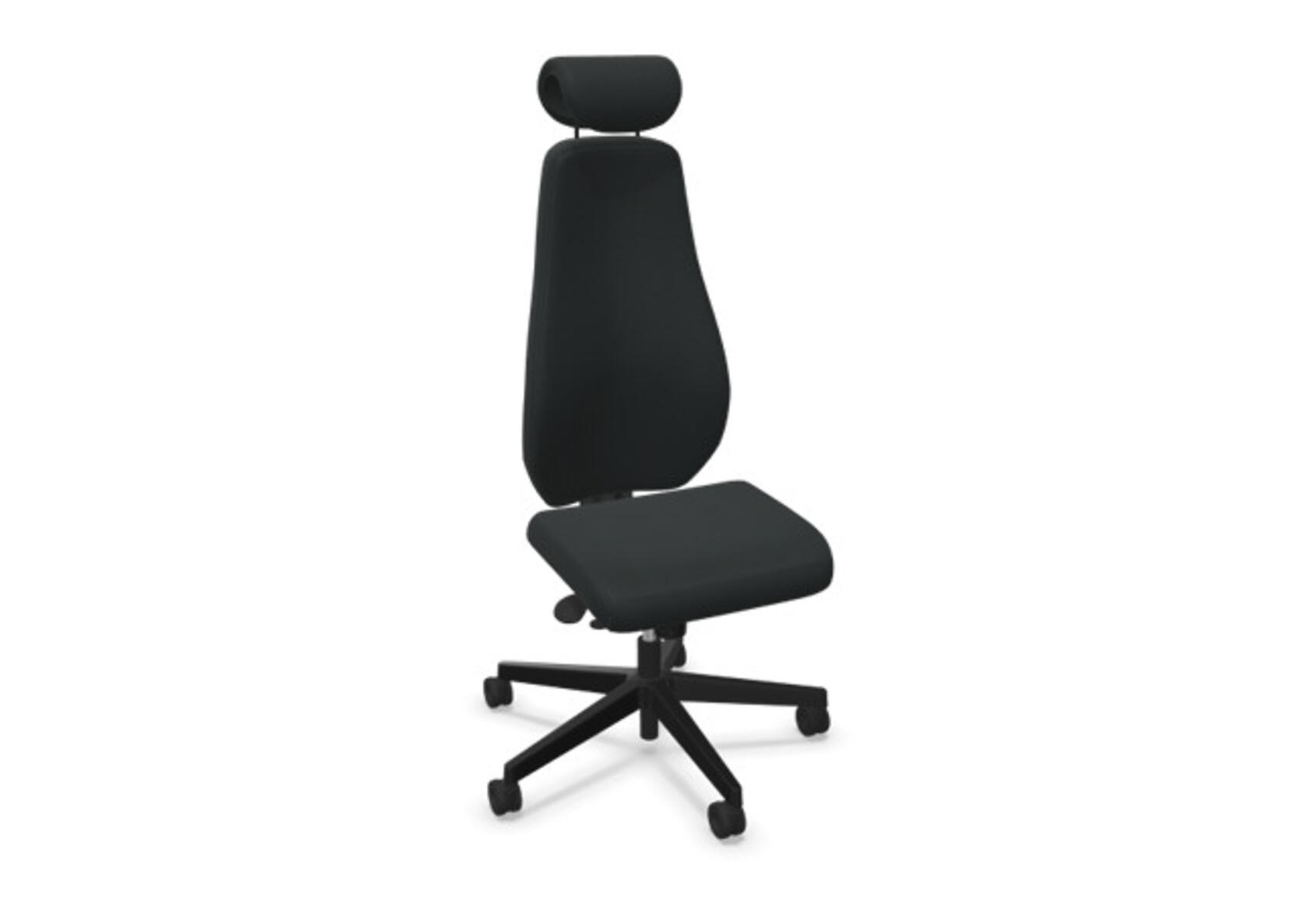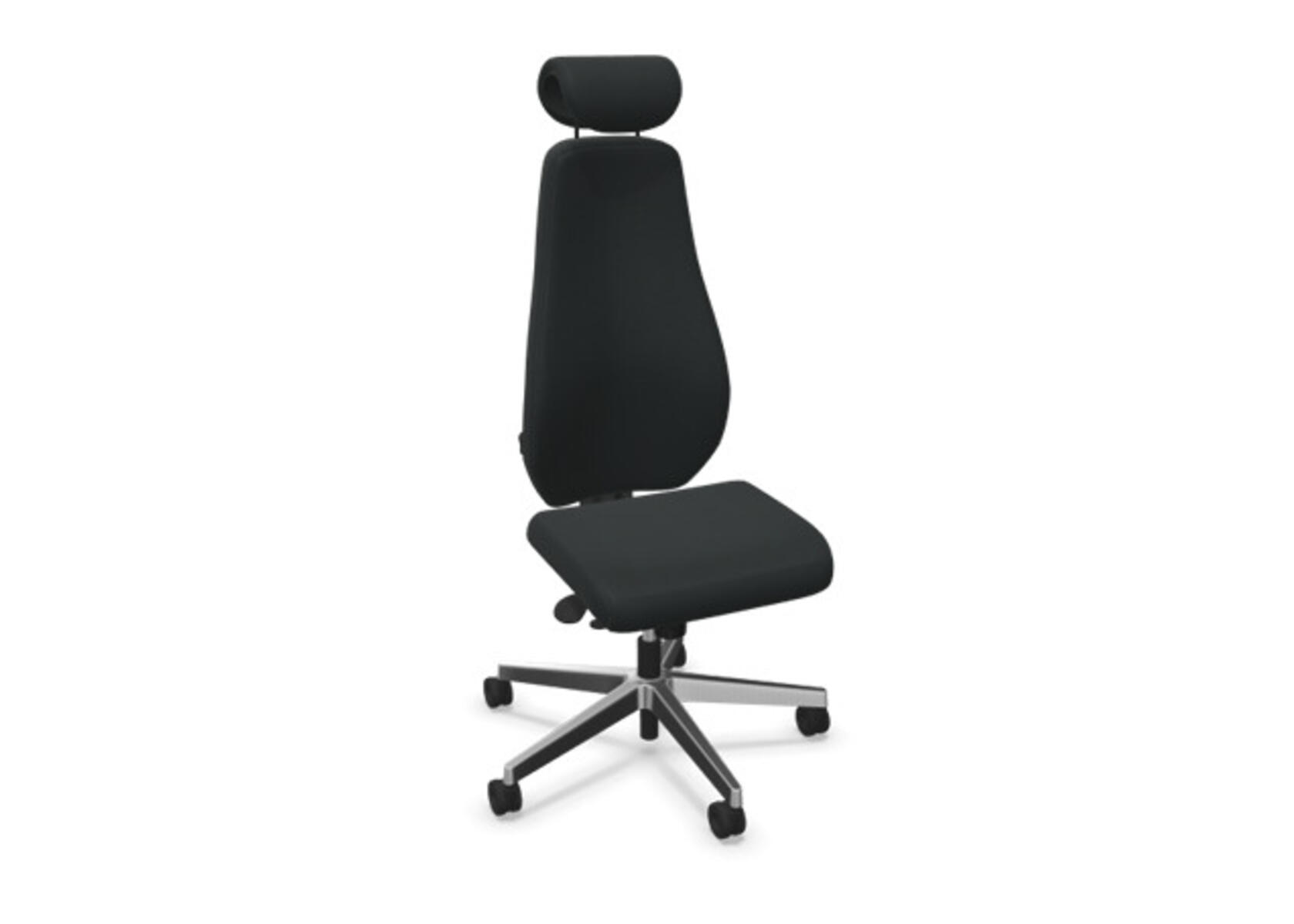 En stilren og ergonomisk kontorstol med heltrukket høy rygg og synkronmekanisme samt justering av sittedybde, utformet for å gi støtte ved aktiv sitting gjennom hele arbeidsdagen. Den synkroniserte vippen mellom ryggstøtte og sete gir en aktiv og komfortabel sittestilling. Ryggstøttens vippevinkel er 20° synkronisert med setets vippevinkel på 11°. Ryggstøtten kan låses i 5 ulike posisjoner for individuell tilpasning, og motstanden i ryggstøtten justeres enkelt med et dreiehjul. Ryggstøtten er høydejusterbar innenfor et område på 70 mm med 13 låseposisjoner. Sittedybden kan justeres innenfor et område på 50 mm. Justerbart, polstret nakkestøtte med vinkel- og høydejustering innenfor et område på 100 mm. Stolen har også Anti-Shock-funksjon som hindrer ryggstøtten i å slå tilbake når vippen låses opp. Velg mellom kryss i svart polyamid eller polert aluminium samt selvbremsende hjul for myke eller harde gulv. Som tilvalg finnes også lumbalstøtte (Shukra-mekanisme), manuelt justerbar i dybden (20 mm) med et dreiehjul. Armlener i 1D, 2D, 3D eller 4D selges separat.