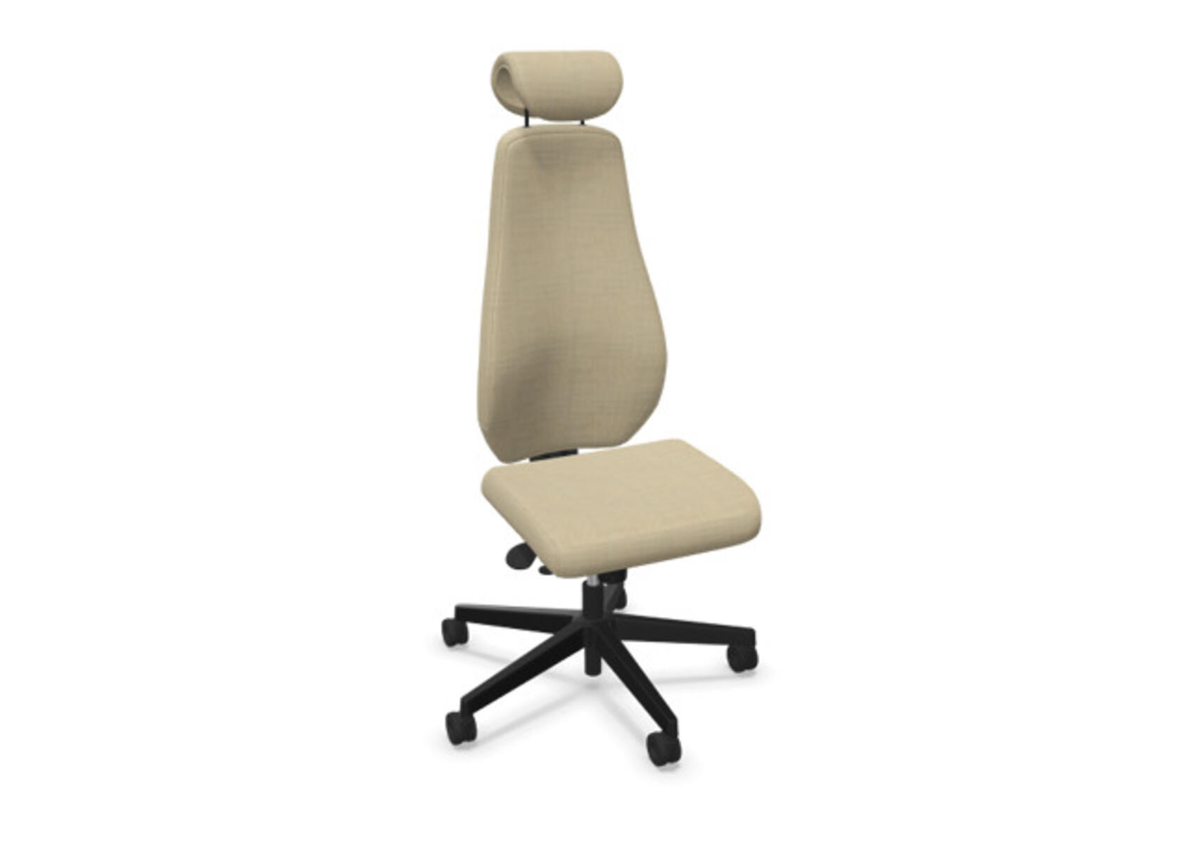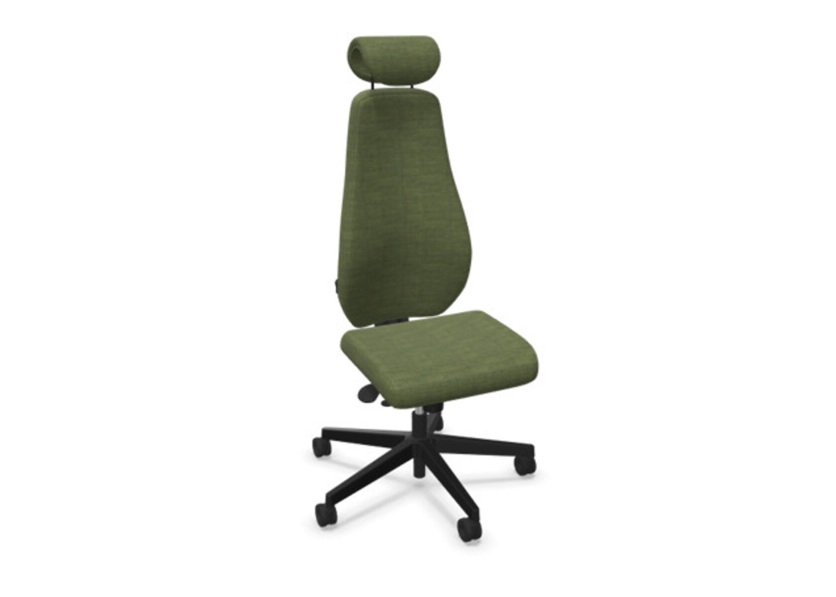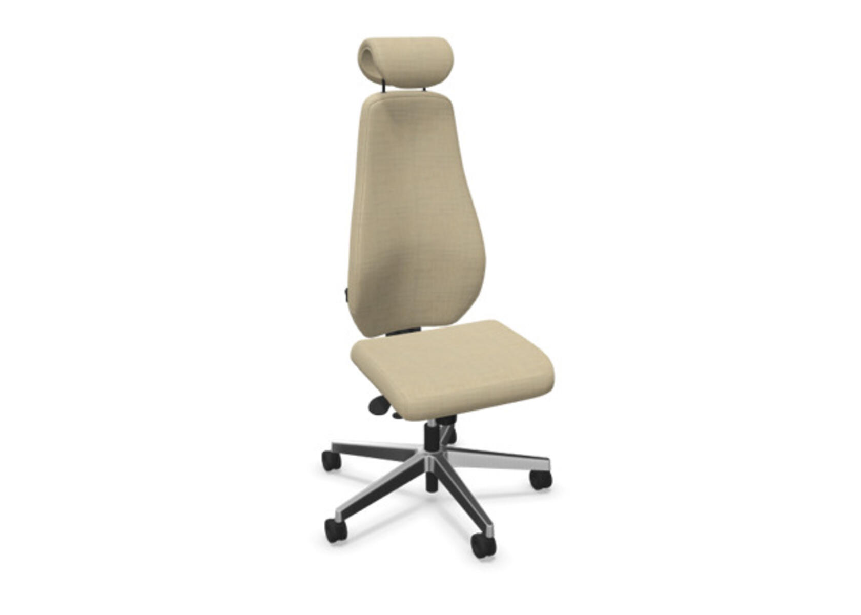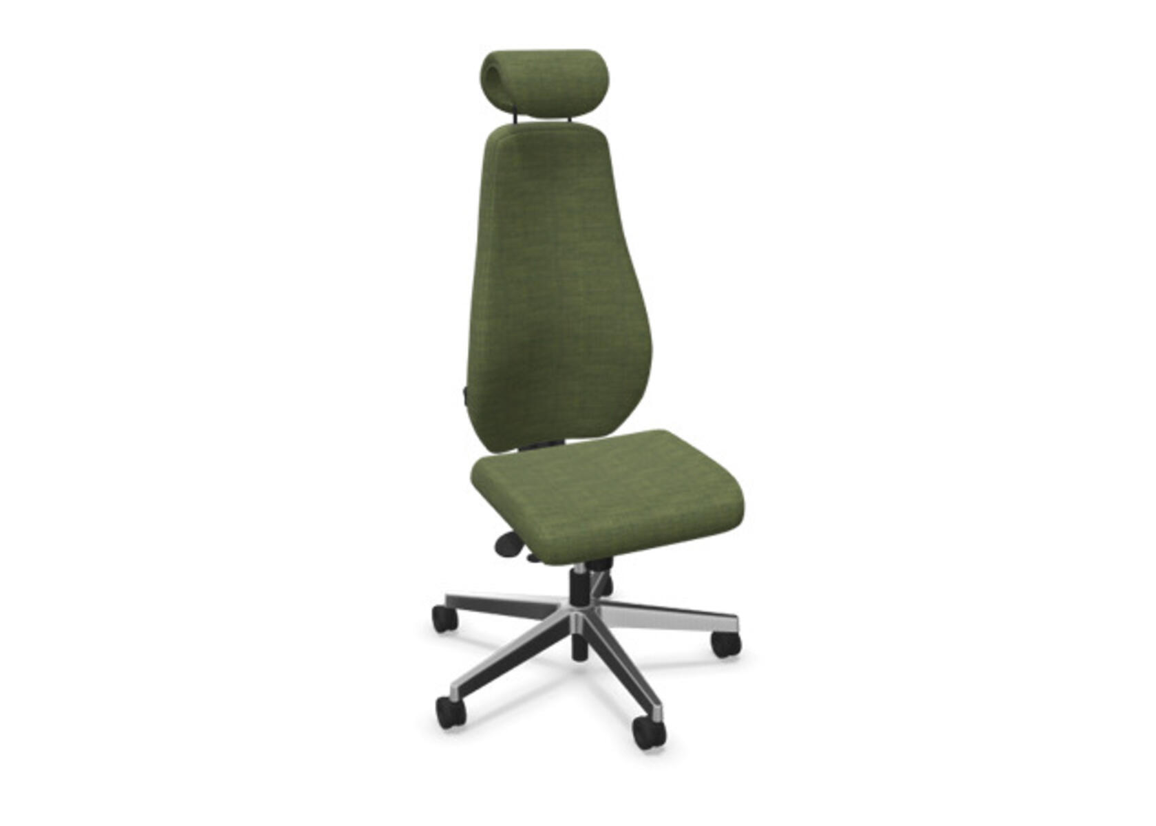 En stilren og ergonomisk kontorstol med heltrukket høy rygg og synkronmekanisme samt justering av sittedybde, utformet for å gi støtte ved aktiv sitting gjennom hele arbeidsdagen. Den synkroniserte vippen mellom ryggstøtte og sete gir en aktiv og komfortabel sittestilling. Ryggstøttens vippevinkel er 20° synkronisert med setets vippevinkel på 11°. Ryggstøtten kan låses i 5 ulike posisjoner for individuell tilpasning, og motstanden i ryggstøtten justeres enkelt med et dreiehjul. Ryggstøtten er høydejusterbar innenfor et område på 70 mm med 13 låseposisjoner. Sittedybden kan justeres innenfor et område på 50 mm. Justerbart, polstret nakkestøtte med vinkel- og høydejustering innenfor et område på 100 mm. Stolen har også Anti-Shock-funksjon som hindrer ryggstøtten i å slå tilbake når vippen låses opp. Velg mellom kryss i svart polyamid eller polert aluminium samt selvbremsende hjul for myke eller harde gulv. Som tilvalg finnes også lumbalstøtte (Shukra-mekanisme), manuelt justerbar i dybden (20 mm) med et dreiehjul. Armlener i 1D, 2D, 3D eller 4D selges separat.