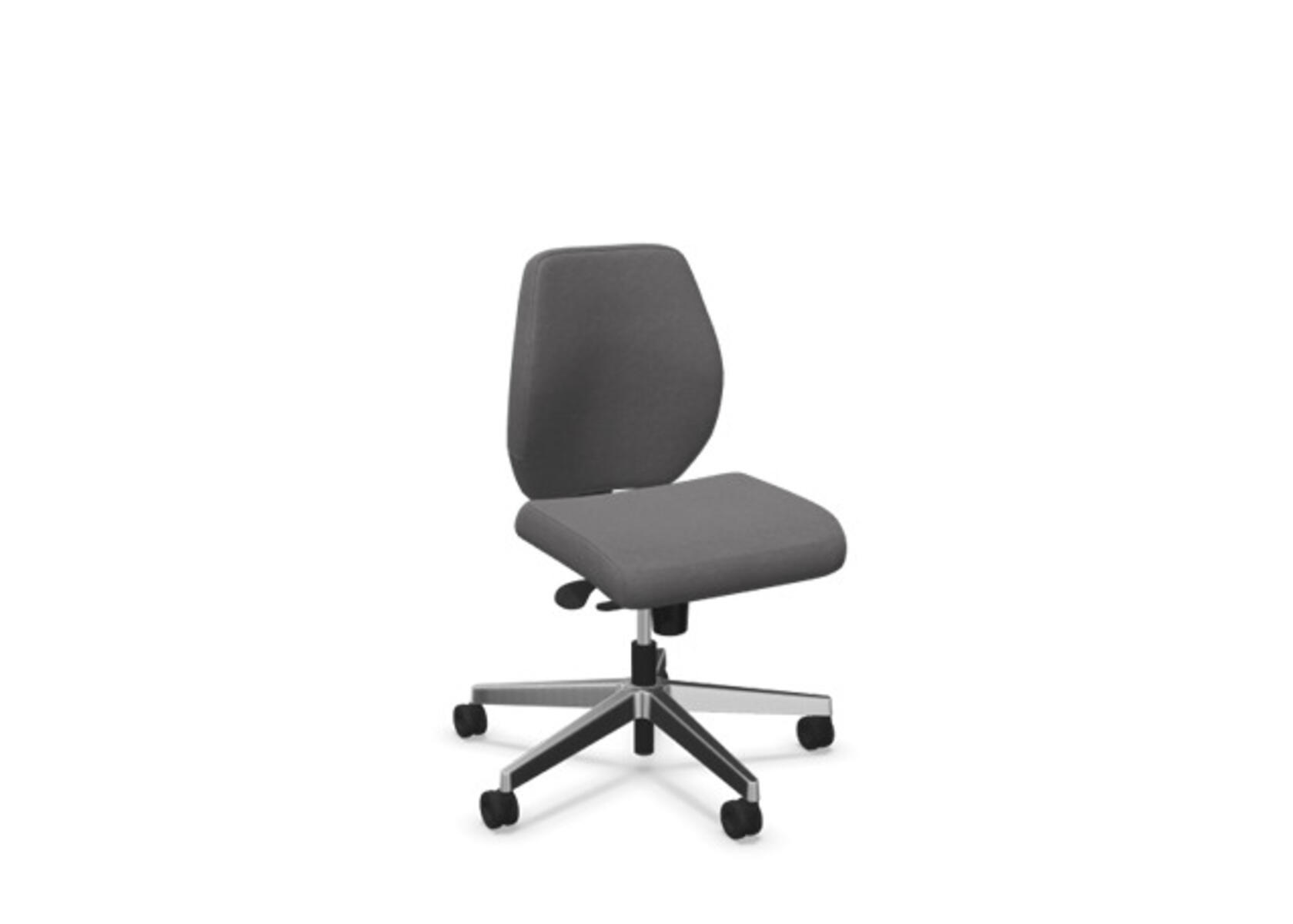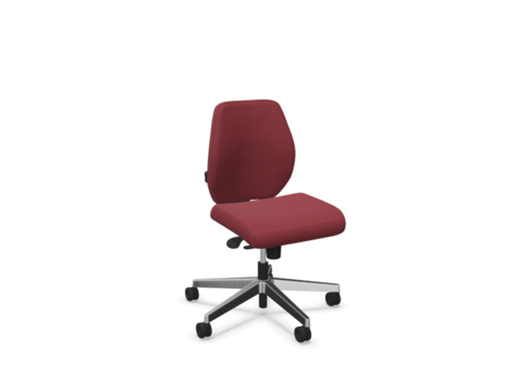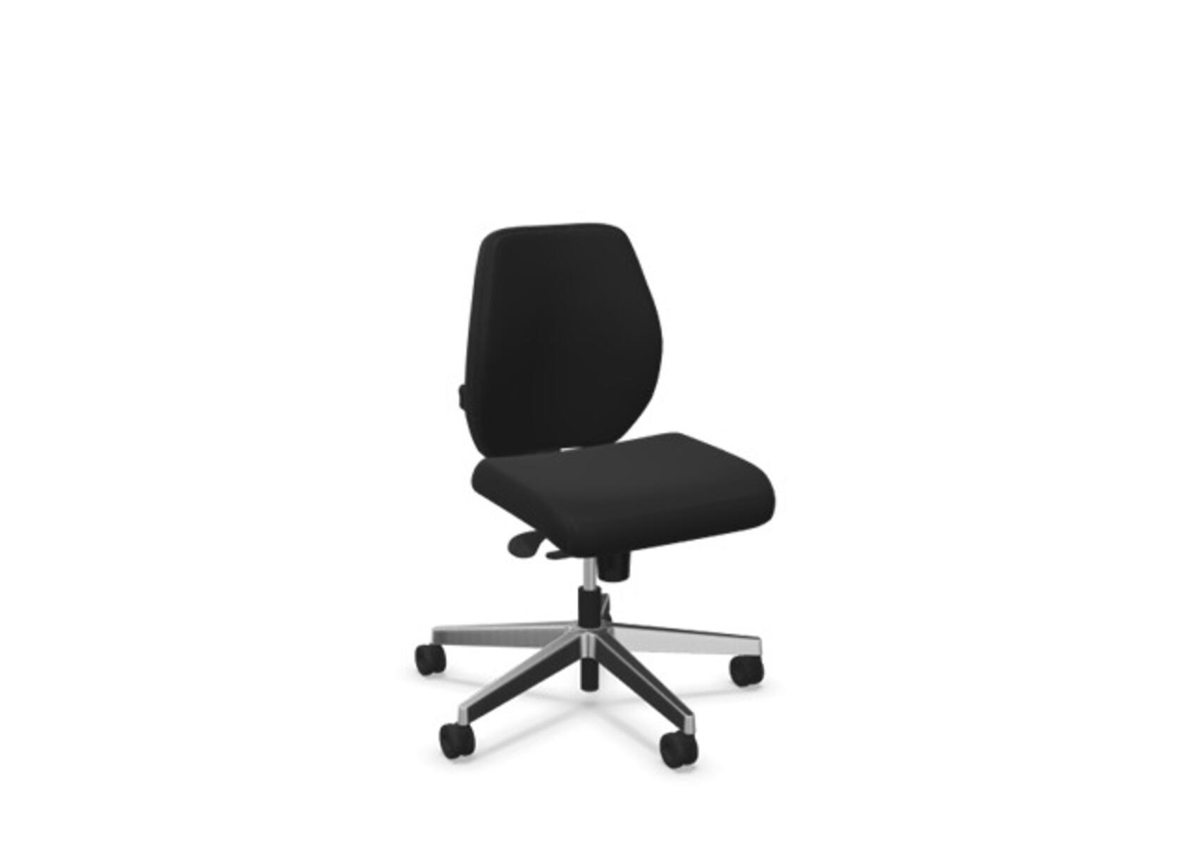 En stilren og ergonomisk kontorstol med heltrukket lav rygg og synkronmekanisme, utformet for å gi støtte ved aktiv sitting gjennom hele arbeidsdagen. Den synkroniserte bevegelsen mellom ryggstøtte og sete gir en aktiv og komfortabel sittestilling. Ryggstøttens vippevinkel er 20° synkronisert med setets vippevinkel på 11°. Ryggstøtten kan låses i 5 ulike posisjoner for individuell tilpasning, og motstanden i ryggstøtten justeres enkelt med et dreiehjul. Ryggstøtten er høydejusterbar innenfor et område på 70 mm med 13 låseposisjoner. Stolen har også Anti-Shock-funksjon som hindrer ryggstøtten i å slå tilbake når vippen låses opp. Velg mellom kryss i svart polyamid eller polert aluminium samt selvbremsende hjul for myke eller harde gulv. Som tilvalg finnes også lumbalstøtte (Shukra-mekanisme), manuelt justerbar i dybden (20 mm) med et dreiehjul. Armlener i 1D, 2D, 3D eller 4D selges separat.