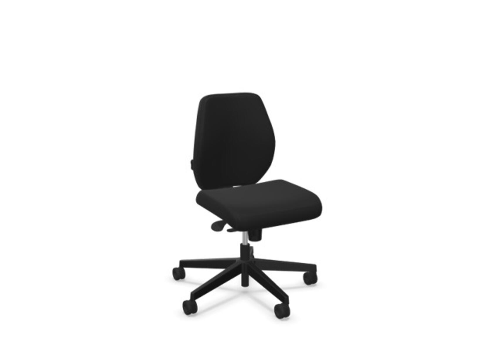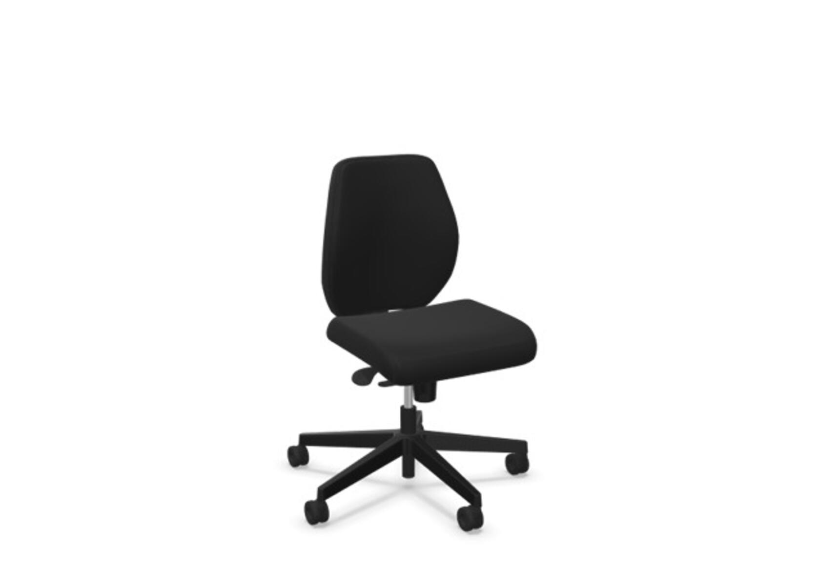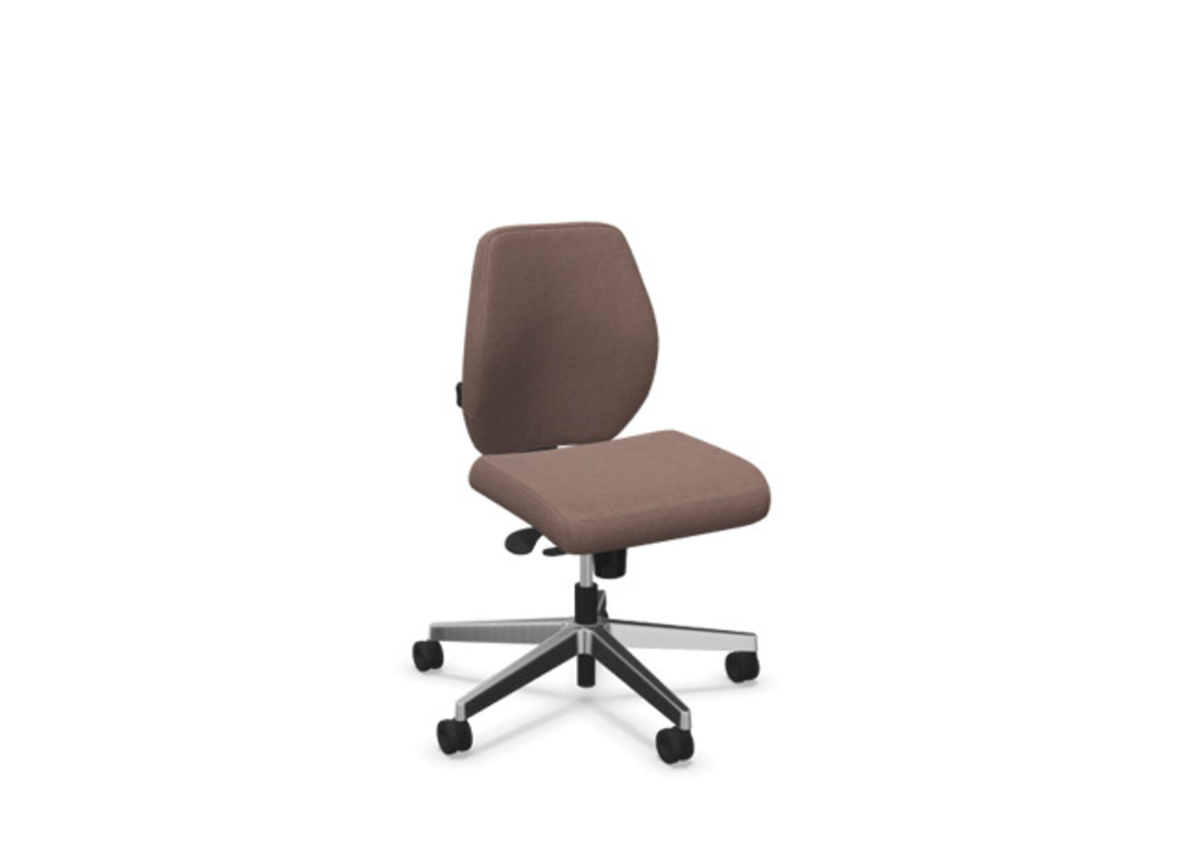 En stilren og ergonomisk kontorstol med heltrukket lav rygg og synkronmekanisme, utformet for å gi støtte ved aktiv sitting gjennom hele arbeidsdagen. Den synkroniserte bevegelsen mellom ryggstøtte og sete gir en aktiv og komfortabel sittestilling. Ryggstøttens vippevinkel er 20° synkronisert med setets vippevinkel på 11°. Ryggstøtten kan låses i 5 ulike posisjoner for individuell tilpasning, og motstanden i ryggstøtten justeres enkelt med et dreiehjul. Ryggstøtten er høydejusterbar innenfor et område på 70 mm med 13 låseposisjoner. Stolen har også Anti-Shock-funksjon som hindrer ryggstøtten i å slå tilbake når vippen låses opp. Velg mellom kryss i svart polyamid eller polert aluminium samt selvbremsende hjul for myke eller harde gulv. Som tilvalg finnes også lumbalstøtte (Shukra-mekanisme), manuelt justerbar i dybden (20 mm) med et dreiehjul. Armlener i 1D, 2D, 3D eller 4D selges separat.