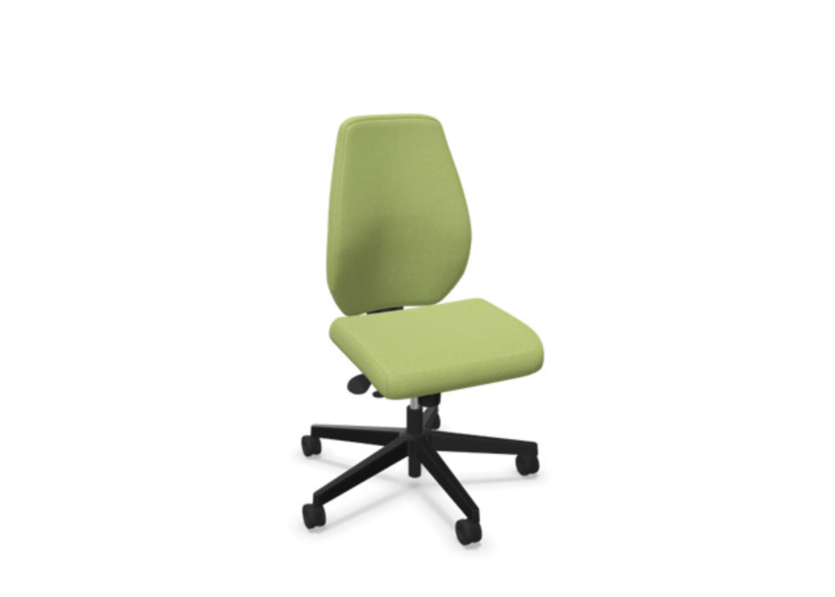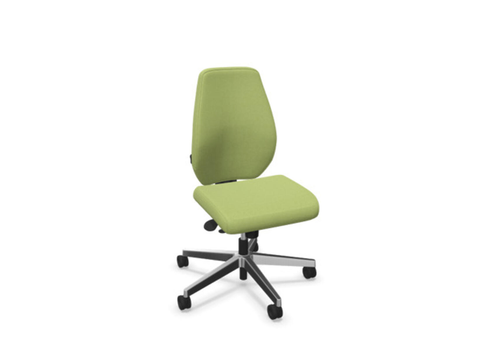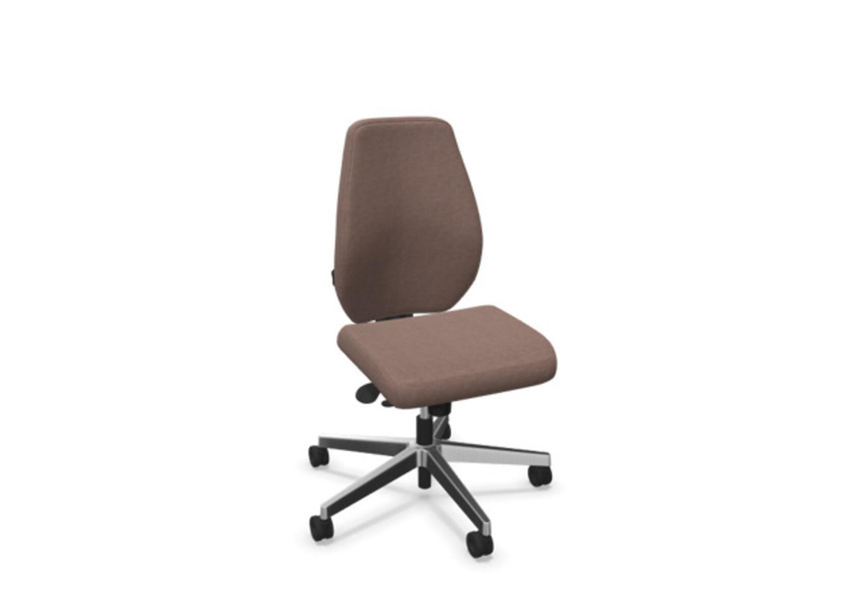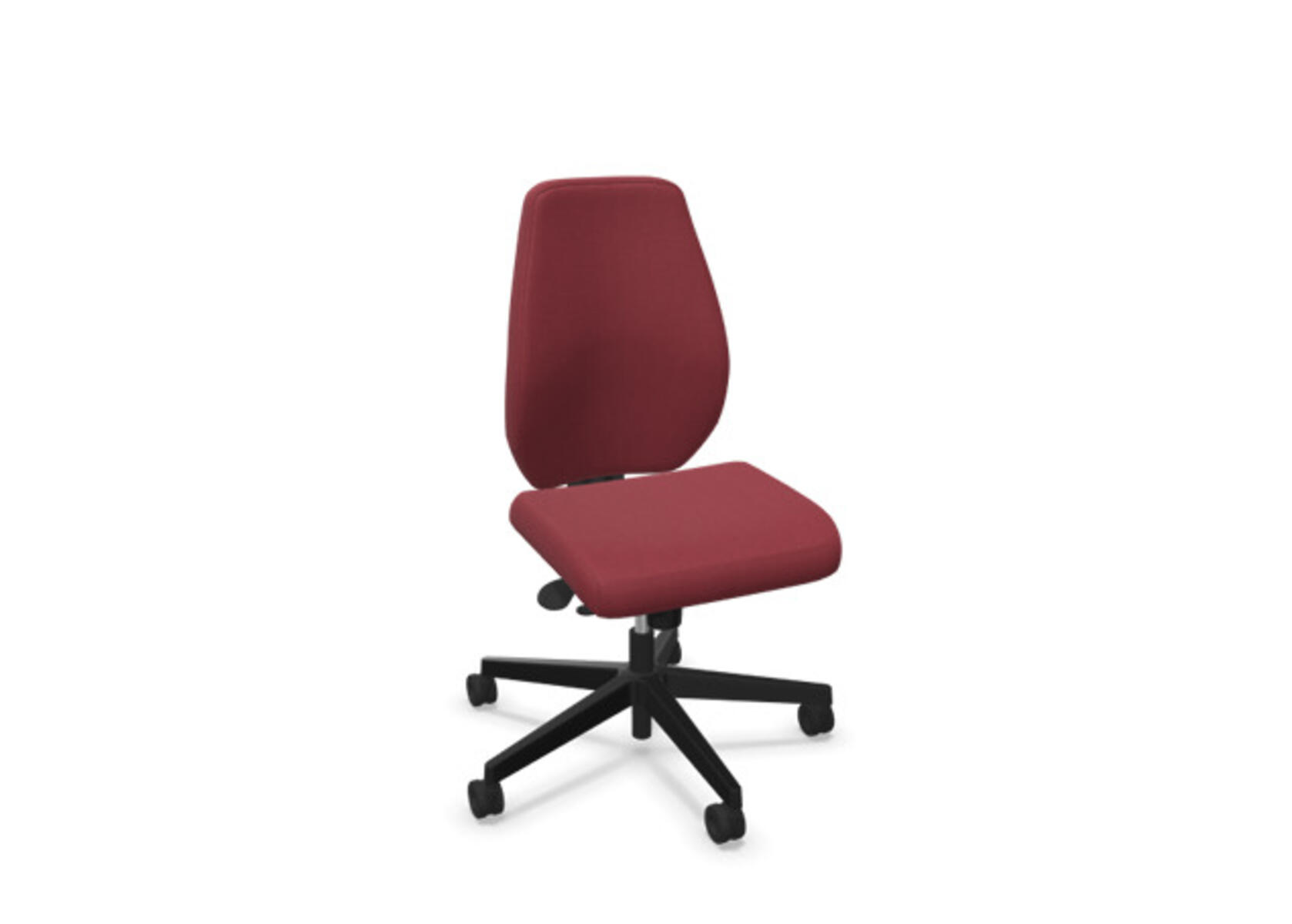 En stilren og ergonomisk kontorstol med heltrukket lav rygg og synkronmekanisme, utformet for å gi støtte ved aktiv sitting gjennom hele arbeidsdagen. Den synkroniserte bevegelsen mellom ryggstøtte og sete gir en aktiv og komfortabel sittestilling. Ryggstøttens vippevinkel er 20° synkronisert med setets vippevinkel på 11°. Ryggstøtten kan låses i 5 ulike posisjoner for individuell tilpasning, og motstanden i ryggstøtten justeres enkelt med et dreiehjul. Ryggstøtten er høydejusterbar innenfor et område på 70 mm med 13 låseposisjoner. Stolen har også Anti-Shock-funksjon som hindrer ryggstøtten i å slå tilbake når vippen låses opp. Velg mellom kryss i svart polyamid eller polert aluminium samt selvbremsende hjul for myke eller harde gulv. Som tilvalg finnes også lumbalstøtte (Shukra-mekanisme), manuelt justerbar i dybden (20 mm) med et dreiehjul. Armlener i 1D, 2D, 3D eller 4D selges separat.