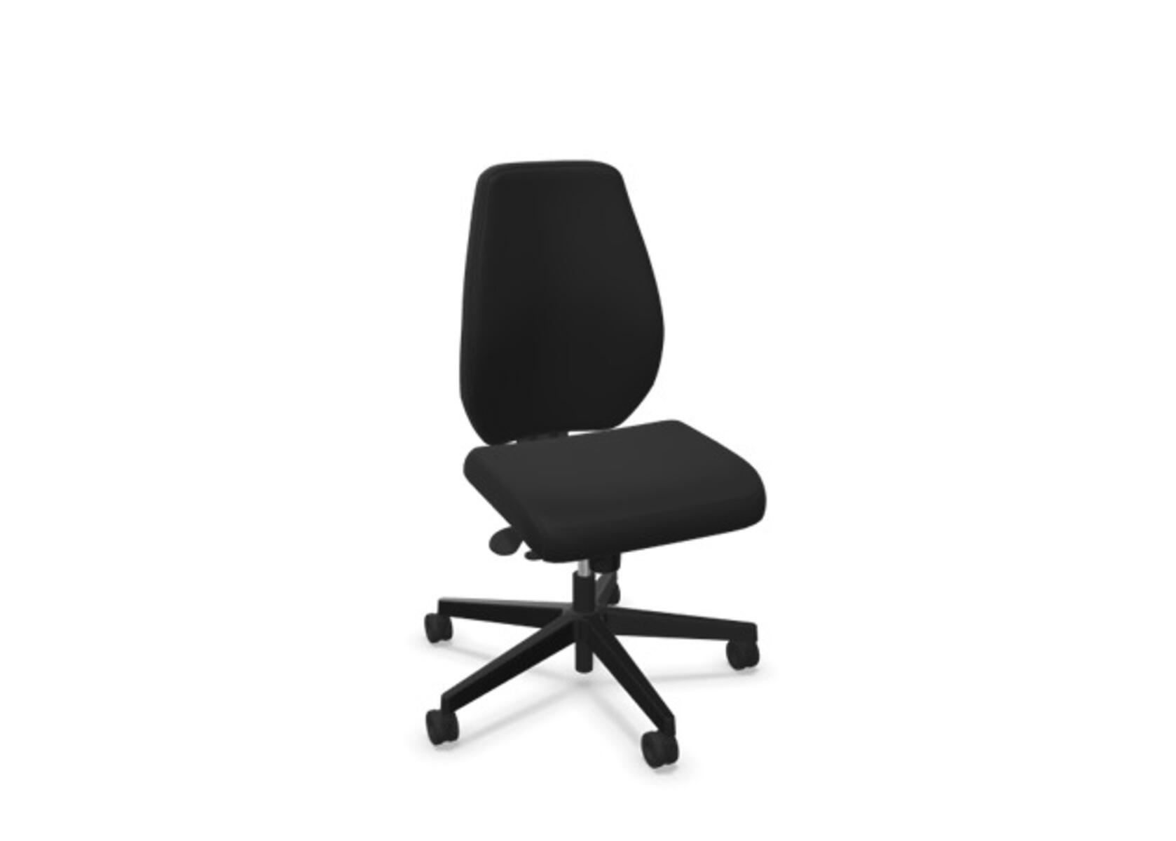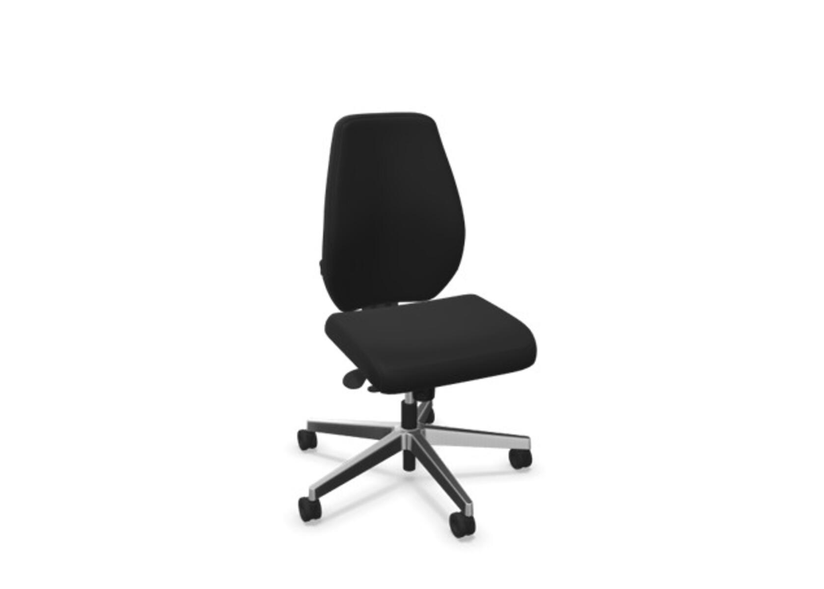 En stilren og ergonomisk kontorstol med heltrukket høy rygg og synkronmekanisme samt justering av sittedybde, utformet for å gi støtte ved aktiv sitting gjennom hele arbeidsdagen. Den synkroniserte vippen mellom ryggstøtte og sete gir en aktiv og komfortabel sittestilling. Ryggstøttens vippevinkel er 20° synkronisert med setets vippevinkel på 11°. Ryggstøtten kan låses i 5 ulike posisjoner for individuell tilpasning, og motstanden i ryggstøtten justeres enkelt med et dreiehjul. Ryggstøtten er høydejusterbar innenfor et område på 70 mm med 13 låseposisjoner. Sittedybden kan justeres innenfor et område på 50 mm. Justerbart, polstret nakkestøtte med vinkel- og høydejustering innenfor et område på 100 mm. Stolen har også Anti-Shock-funksjon som hindrer ryggstøtten i å slå tilbake når vippen låses opp. Velg mellom kryss i svart polyamid eller polert aluminium samt selvbremsende hjul for myke eller harde gulv. Som tilvalg finnes også lumbalstøtte (Shukra-mekanisme), manuelt justerbar i dybden (20 mm) med et dreiehjul. Armlener i 1D, 2D, 3D eller 4D selges separat.