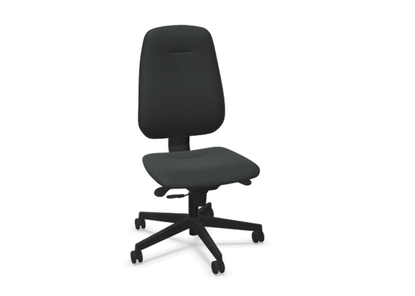 Ergonomisk kontorstol med delvis polstret medium høy rygg og synkronmekanisme, utformet for å gi støtte ved aktiv sitting gjennom hele arbeidsdagen. Den synkroniserte vinklingen mellom ryggstøtte og sete muliggjør en aktiv og komfortabel sittestilling. Ryggstøttens helningsvinkel er 20°, synkronisert med setets helningsvinkel på 11°. Ryggstøtten kan låses i 5 ulike posisjoner for individuell tilpasning, og motstanden justeres enkelt med et dreiehjul. Ryggstøtten er høydejusterbar innenfor et område på 75 mm med 13 låsbare trinn. Stolen har også Anti-Shock-funksjon som forhindrer at ryggstøtten slår tilbake når helningen låses opp. Velg mellom kryss i svart polyamid eller polert aluminium, samt selvbremsende hjul for myke eller harde gulv. Armlener i 2D, 3D eller 4D selges separat.