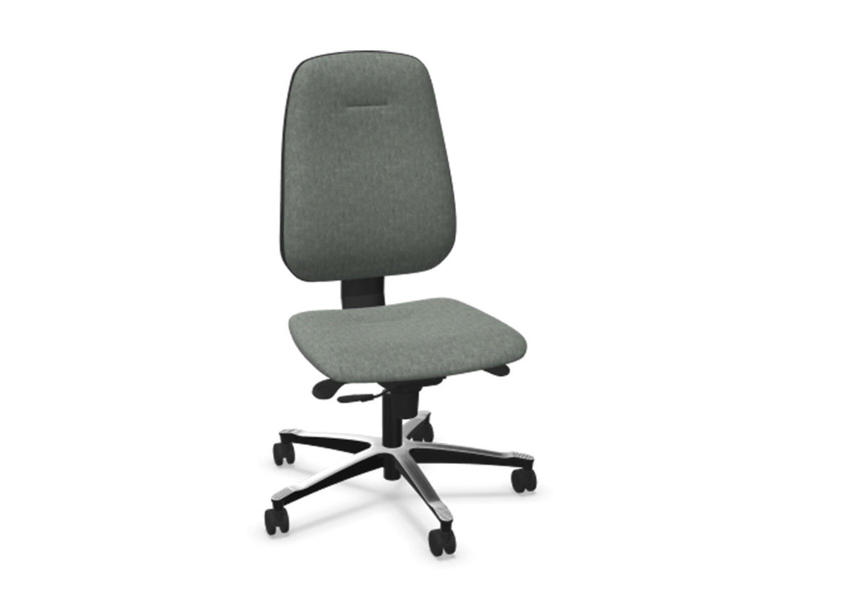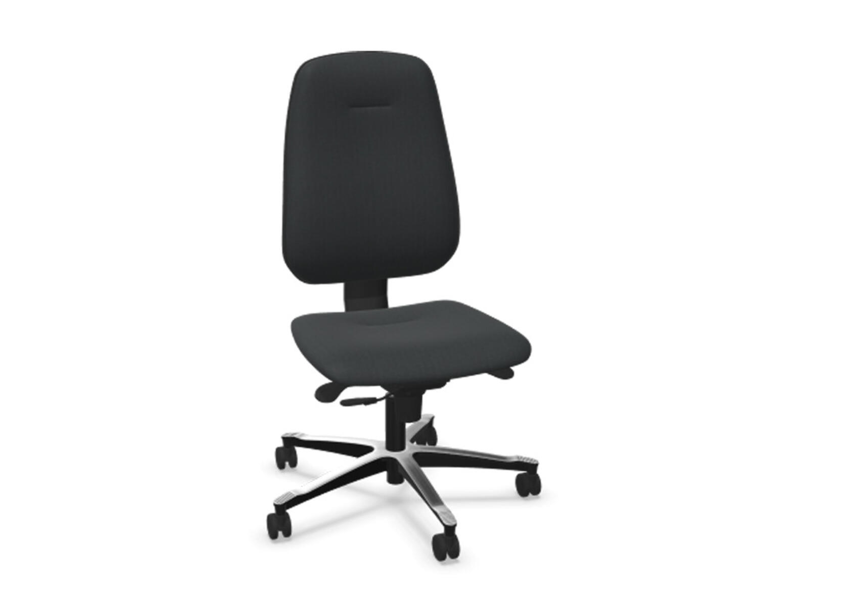 Ergonomisk kontorstol med delvis polstret høy rygg og synkronmekanisme, utformet for å gi støtte ved aktiv sitting gjennom hele arbeidsdagen. Den synkroniserte vinklingen mellom ryggstøtte og sete muliggjør en aktiv og komfortabel sittestilling. Ryggstøttens helningsvinkel er 20°, synkronisert med setets helningsvinkel på 11°. Ryggstøtten kan låses i 5 ulike posisjoner for individuell tilpasning, og motstanden i ryggstøtten justeres enkelt med et dreiehjul. Ryggstøtten er høydejusterbar innenfor et område på 75 mm med 13 låsbare trinn. Stolen har også Anti-Shock-funksjon som forhindrer at ryggstøtten slår tilbake når helningen låses opp. Velg mellom kryss i svart polyamid eller polert aluminium, samt selvbremsende hjul for myke eller harde gulv. Armlener i 2D, 3D eller 4D selges separat.