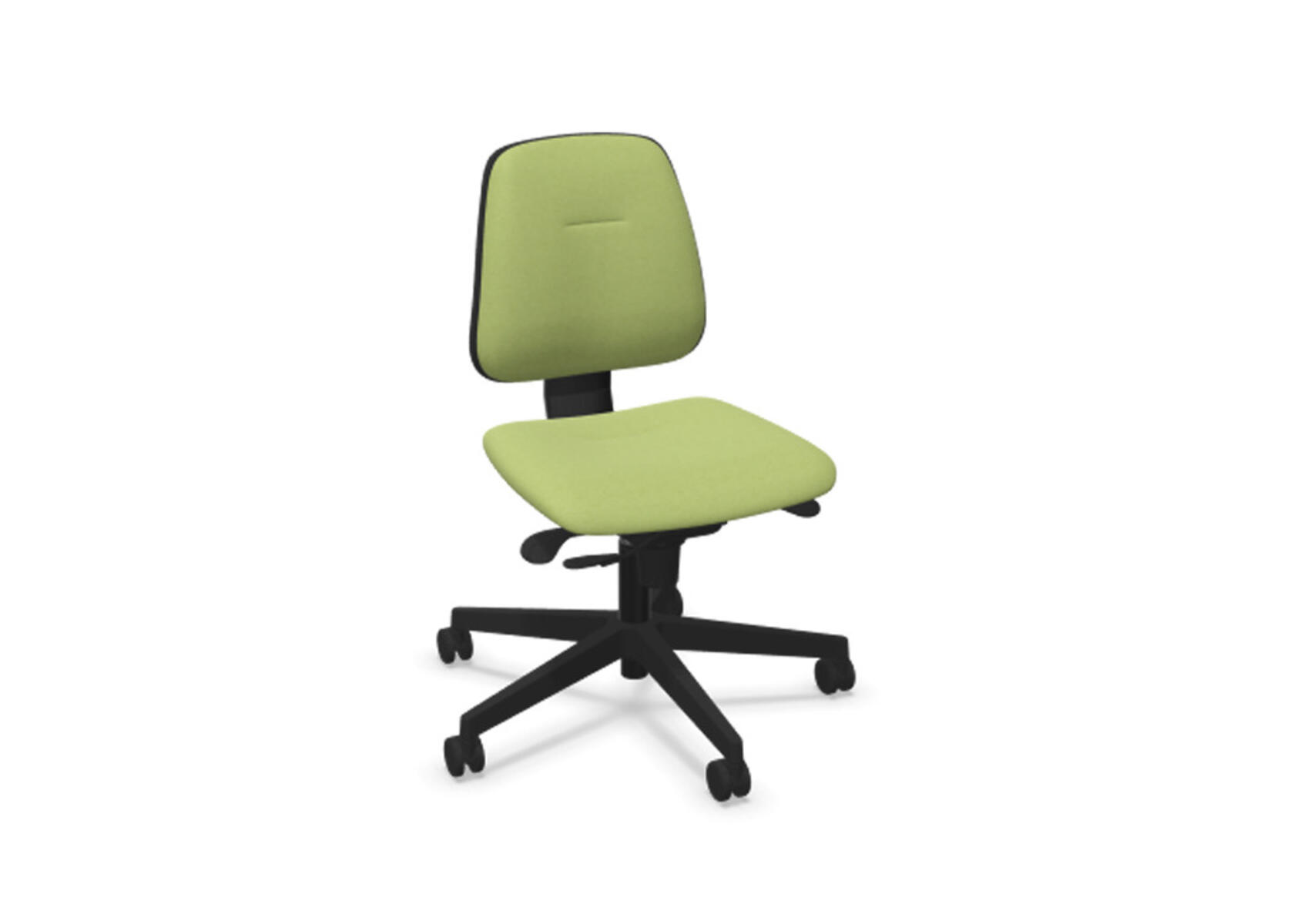 Ergonomisk kontorstol med delvis polstret medium høy rygg og synkronmekanisme, utformet for å gi støtte ved aktiv sitting gjennom hele arbeidsdagen. Den synkroniserte vinklingen mellom ryggstøtte og sete muliggjør en aktiv og komfortabel sittestilling. Ryggstøttens helningsvinkel er 20°, synkronisert med setets helningsvinkel på 11°. Ryggstøtten kan låses i 5 ulike posisjoner for individuell tilpasning, og motstanden justeres enkelt med et dreiehjul. Ryggstøtten er høydejusterbar innenfor et område på 75 mm med 13 låsbare trinn. Stolen har også Anti-Shock-funksjon som forhindrer at ryggstøtten slår tilbake når helningen låses opp. Velg mellom kryss i svart polyamid eller polert aluminium, samt selvbremsende hjul for myke eller harde gulv. Armlener i 2D, 3D eller 4D selges separat.