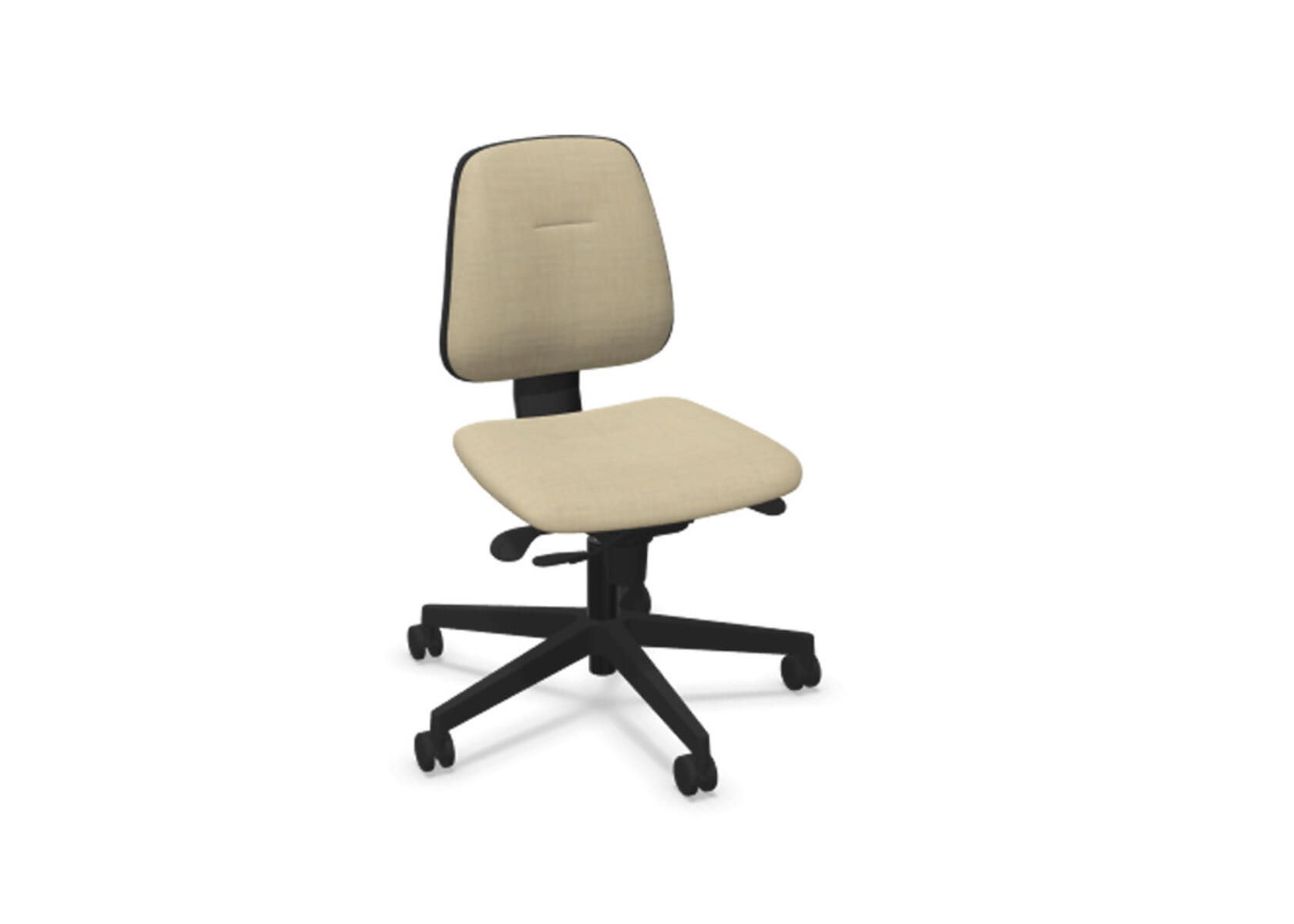 Ergonomisk kontorstol med delvis polstret lav rygg og synkronmekanisme, utformet for å gi støtte ved aktiv sitting gjennom hele arbeidsdagen. Den synkroniserte vinklingen mellom ryggstøtte og sete muliggjør en aktiv og komfortabel sittestilling. Ryggstøttens helningsvinkel er 20°, synkronisert med setets helningsvinkel på 11°. Ryggstøtten kan låses i 5 ulike posisjoner for individuell tilpasning, og motstanden justeres enkelt med et dreiehjul. Ryggstøtten er høydejusterbar innenfor et område på 75 mm med 13 låsbare trinn. Stolen har også Anti-Shock-funksjon som forhindrer at ryggstøtten slår tilbake når helningen låses opp. Velg mellom kryss i svart polyamid eller polert aluminium, samt selvbremsende hjul for myke eller harde gulv. Armlener i 2D, 3D eller 4D selges separat.