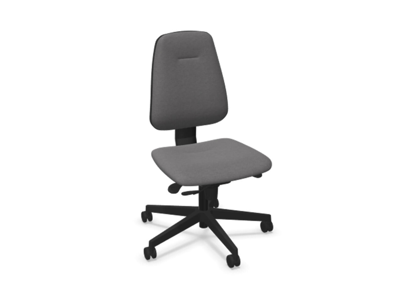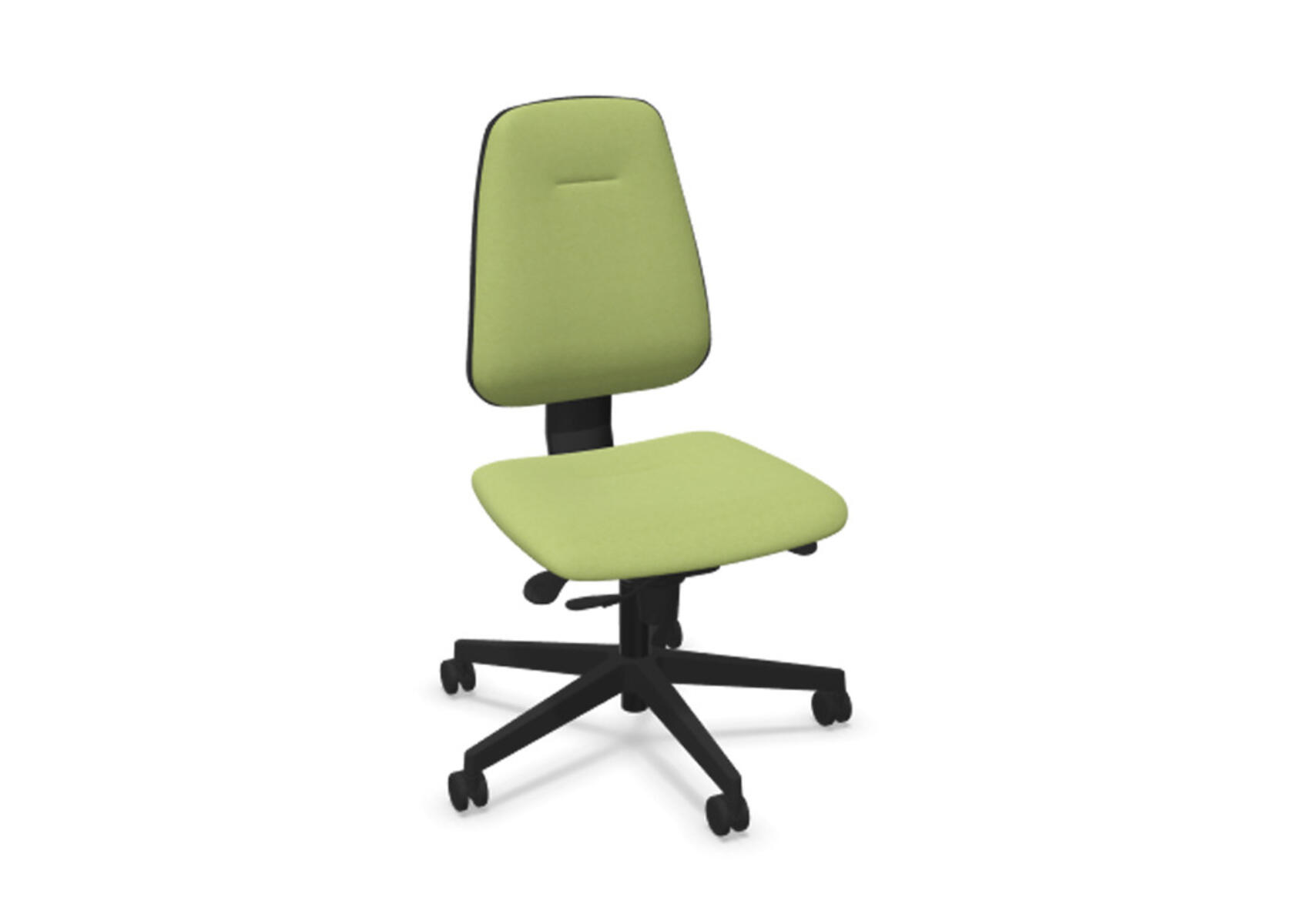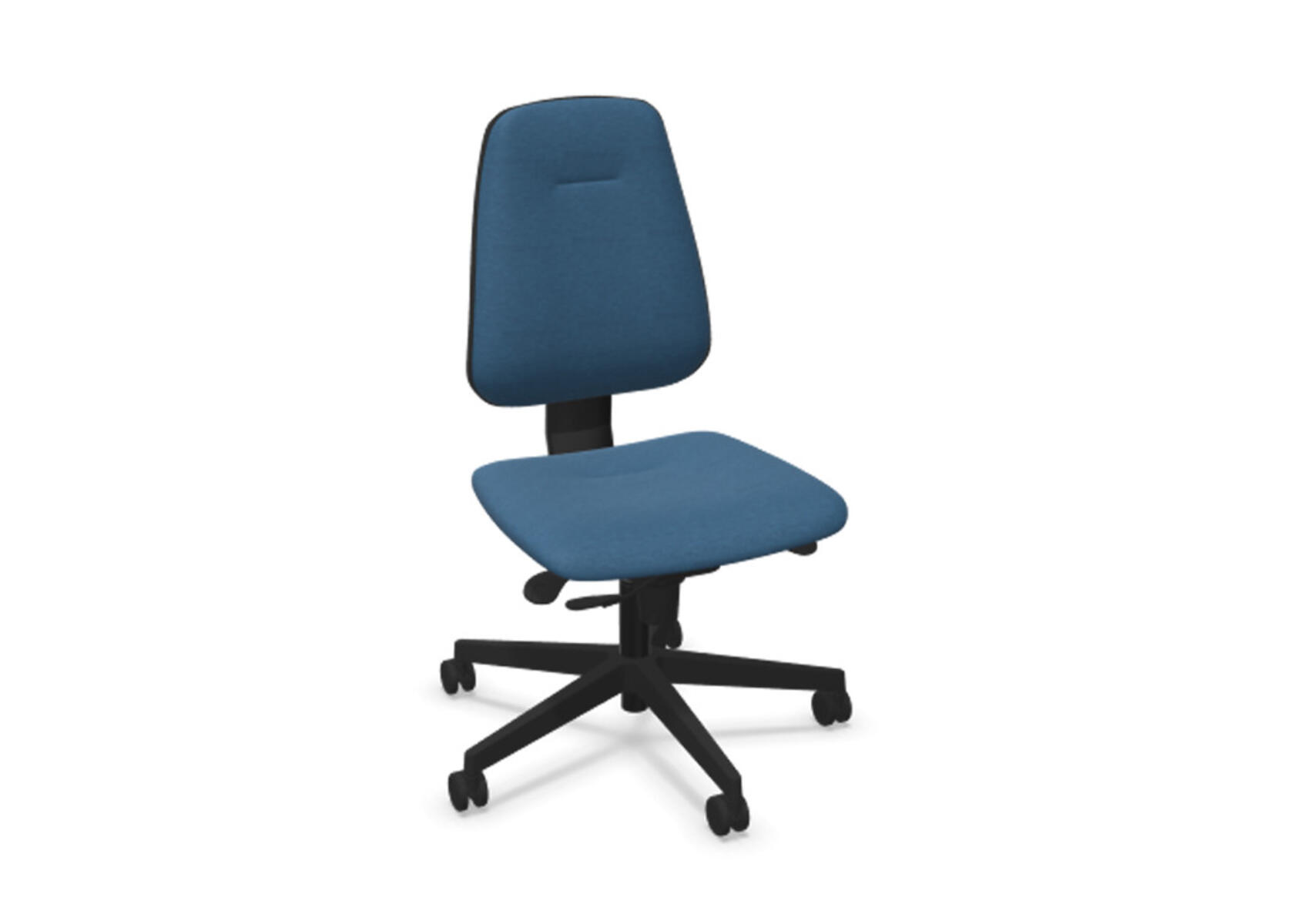 Ergonomisk kontorstol med delvis polstret medium høy rygg og synkronmekanisme, utformet for å gi støtte ved aktiv sitting gjennom hele arbeidsdagen. Den synkroniserte vinklingen mellom ryggstøtte og sete muliggjør en aktiv og komfortabel sittestilling. Ryggstøttens helningsvinkel er 20°, synkronisert med setets helningsvinkel på 11°. Ryggstøtten kan låses i 5 ulike posisjoner for individuell tilpasning, og motstanden justeres enkelt med et dreiehjul. Ryggstøtten er høydejusterbar innenfor et område på 75 mm med 13 låsbare trinn. Stolen har også Anti-Shock-funksjon som forhindrer at ryggstøtten slår tilbake når helningen låses opp. Velg mellom kryss i svart polyamid eller polert aluminium, samt selvbremsende hjul for myke eller harde gulv. Armlener i 2D, 3D eller 4D selges separat.