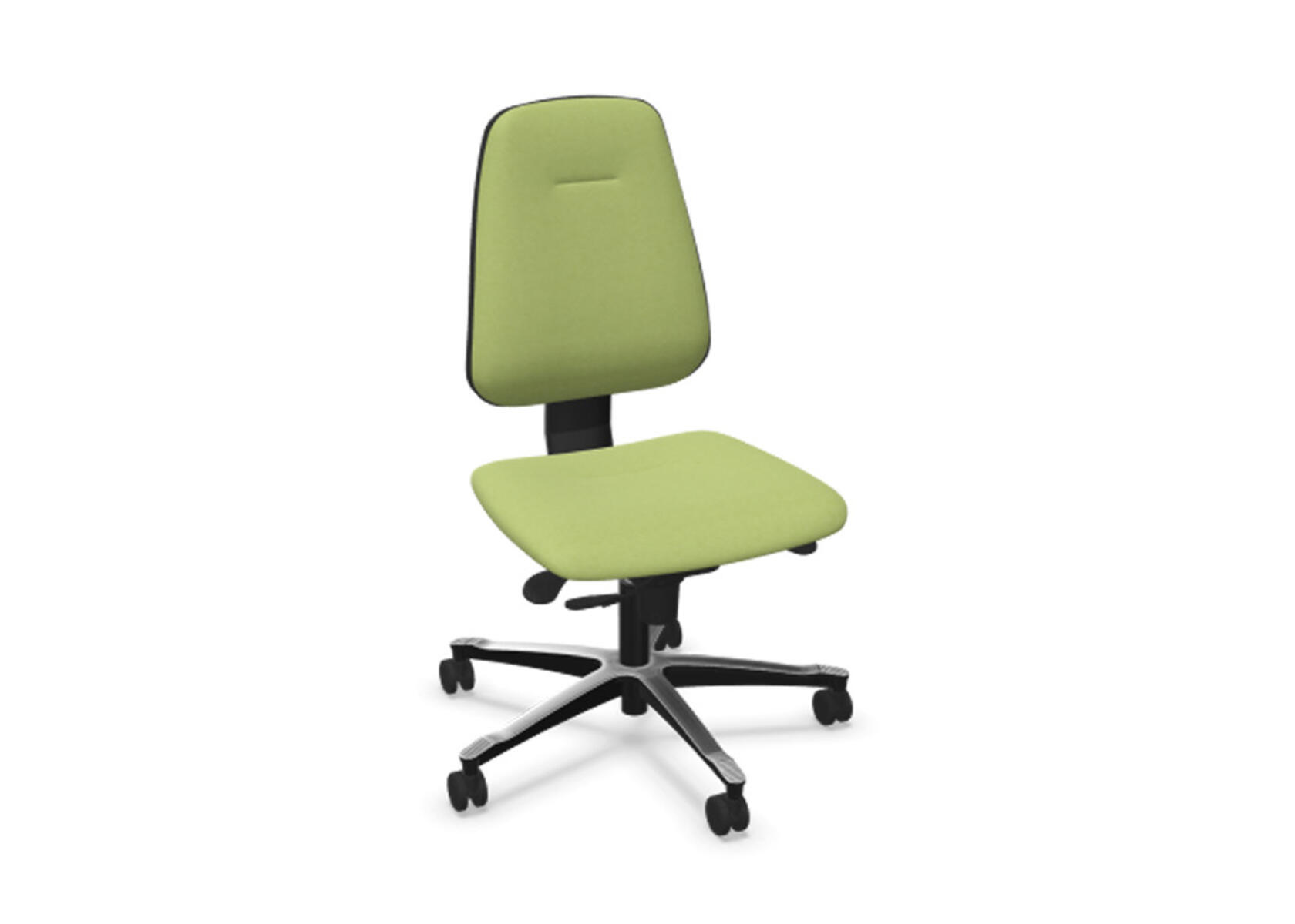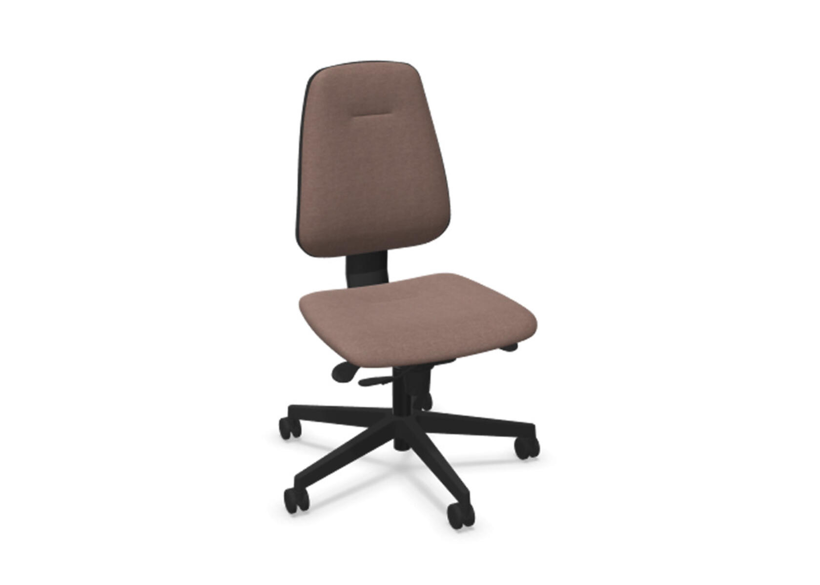 Ergonomisk kontorstol med delvis polstret lav rygg og synkronmekanisme, utformet for å gi støtte ved aktiv sitting gjennom hele arbeidsdagen. Den synkroniserte vinklingen mellom ryggstøtte og sete muliggjør en aktiv og komfortabel sittestilling. Ryggstøttens helningsvinkel er 20°, synkronisert med setets helningsvinkel på 11°. Ryggstøtten kan låses i 5 ulike posisjoner for individuell tilpasning, og motstanden justeres enkelt med et dreiehjul. Ryggstøtten er høydejusterbar innenfor et område på 75 mm med 13 låsbare trinn. Stolen har også Anti-Shock-funksjon som forhindrer at ryggstøtten slår tilbake når helningen låses opp. Velg mellom kryss i svart polyamid eller polert aluminium, samt selvbremsende hjul for myke eller harde gulv. Armlener i 2D, 3D eller 4D selges separat.