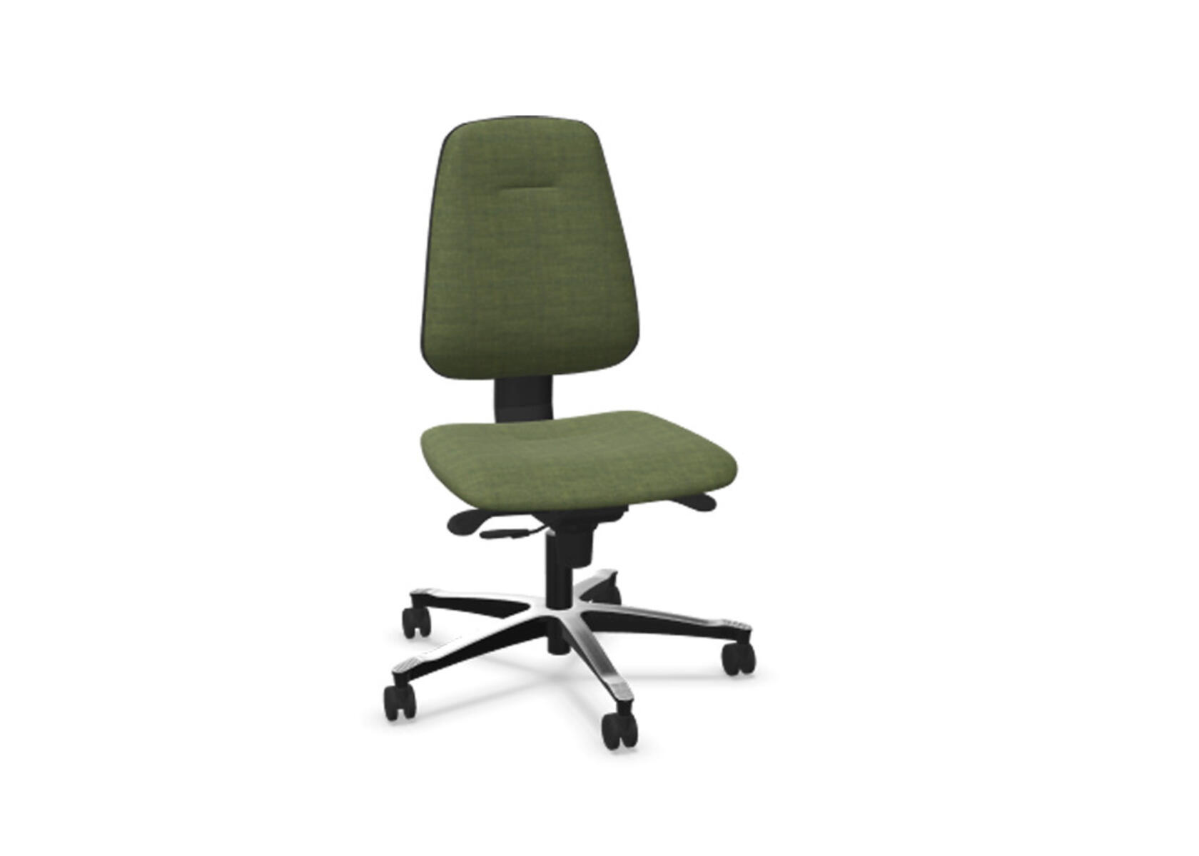 Ergonomisk kontorstol med delvis polstret medium høy rygg og synkronmekanisme, utformet for å gi støtte ved aktiv sitting gjennom hele arbeidsdagen. Den synkroniserte vinklingen mellom ryggstøtte og sete muliggjør en aktiv og komfortabel sittestilling. Ryggstøttens helningsvinkel er 20°, synkronisert med setets helningsvinkel på 11°. Ryggstøtten kan låses i 5 ulike posisjoner for individuell tilpasning, og motstanden justeres enkelt med et dreiehjul. Ryggstøtten er høydejusterbar innenfor et område på 75 mm med 13 låsbare trinn. Stolen har også Anti-Shock-funksjon som forhindrer at ryggstøtten slår tilbake når helningen låses opp. Velg mellom kryss i svart polyamid eller polert aluminium, samt selvbremsende hjul for myke eller harde gulv. Armlener i 2D, 3D eller 4D selges separat.