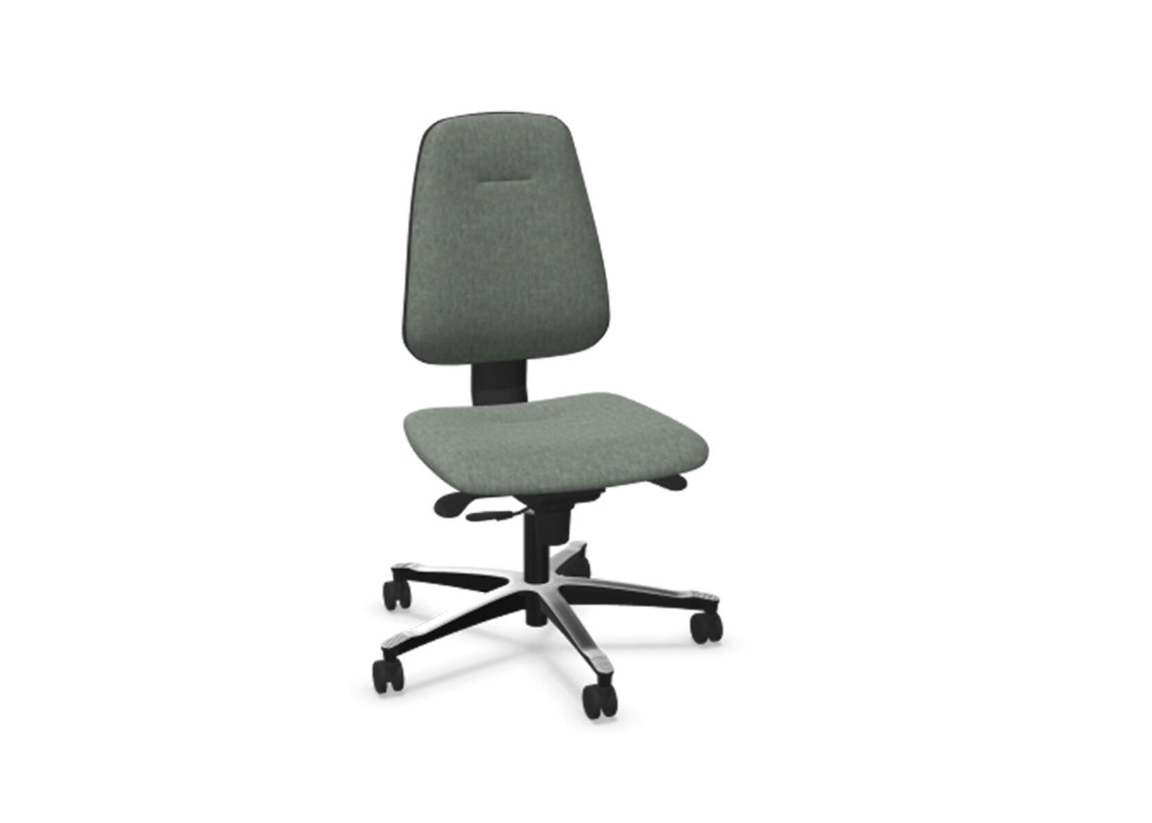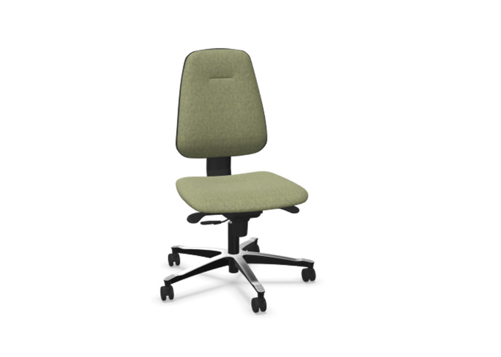Ergonomisk kontorstol med delvis polstret høy rygg og synkronmekanisme samt justering av setedybde, utformet for å gi støtte ved aktiv sitting gjennom hele arbeidsdagen. Den synkroniserte vinklingen mellom ryggstøtte og sete muliggjør en aktiv og komfortabel sittestilling. Ryggstøttens helningsvinkel er 20°, synkronisert med setets helningsvinkel på 11°. Ryggstøtten kan låses i 5 ulike posisjoner for individuell tilpasning, og motstanden justeres enkelt med et dreiehjul. Ryggstøtten er høydejusterbar innenfor et område på 70 mm med 13 låsbare trinn. Setedybden kan justeres innenfor et område på 50 mm. Stolen har også Anti-Shock-funksjon som forhindrer at ryggstøtten slår tilbake når helningen låses opp. Velg mellom kryss i svart polyamid eller polert aluminium, samt selvbremsende hjul for myke eller harde gulv. Armlener i 2D, 3D eller 4D selges separat.