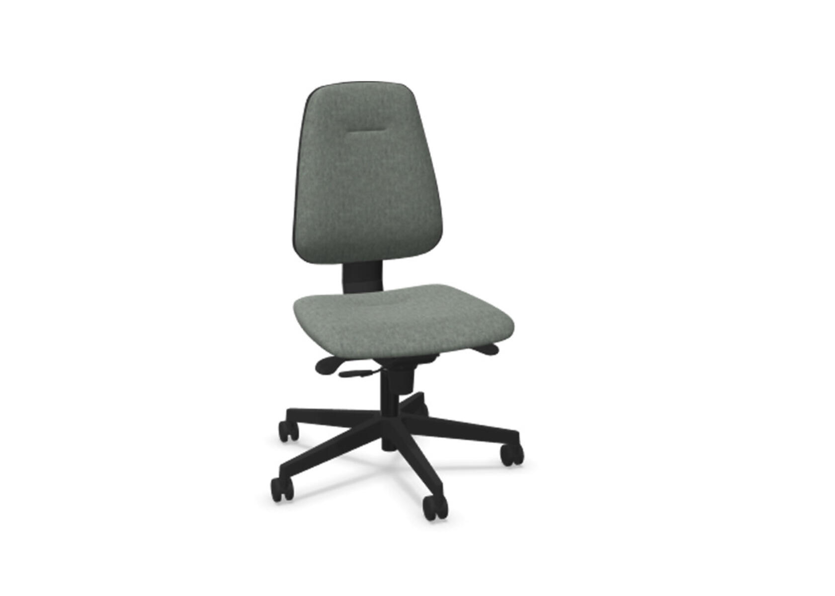 Ergonomisk kontorstol med delvis polstret medium høy rygg og synkronmekanisme, utformet for å gi støtte ved aktiv sitting gjennom hele arbeidsdagen. Den synkroniserte vinklingen mellom ryggstøtte og sete muliggjør en aktiv og komfortabel sittestilling. Ryggstøttens helningsvinkel er 20°, synkronisert med setets helningsvinkel på 11°. Ryggstøtten kan låses i 5 ulike posisjoner for individuell tilpasning, og motstanden justeres enkelt med et dreiehjul. Ryggstøtten er høydejusterbar innenfor et område på 75 mm med 13 låsbare trinn. Stolen har også Anti-Shock-funksjon som forhindrer at ryggstøtten slår tilbake når helningen låses opp. Velg mellom kryss i svart polyamid eller polert aluminium, samt selvbremsende hjul for myke eller harde gulv. Armlener i 2D, 3D eller 4D selges separat.