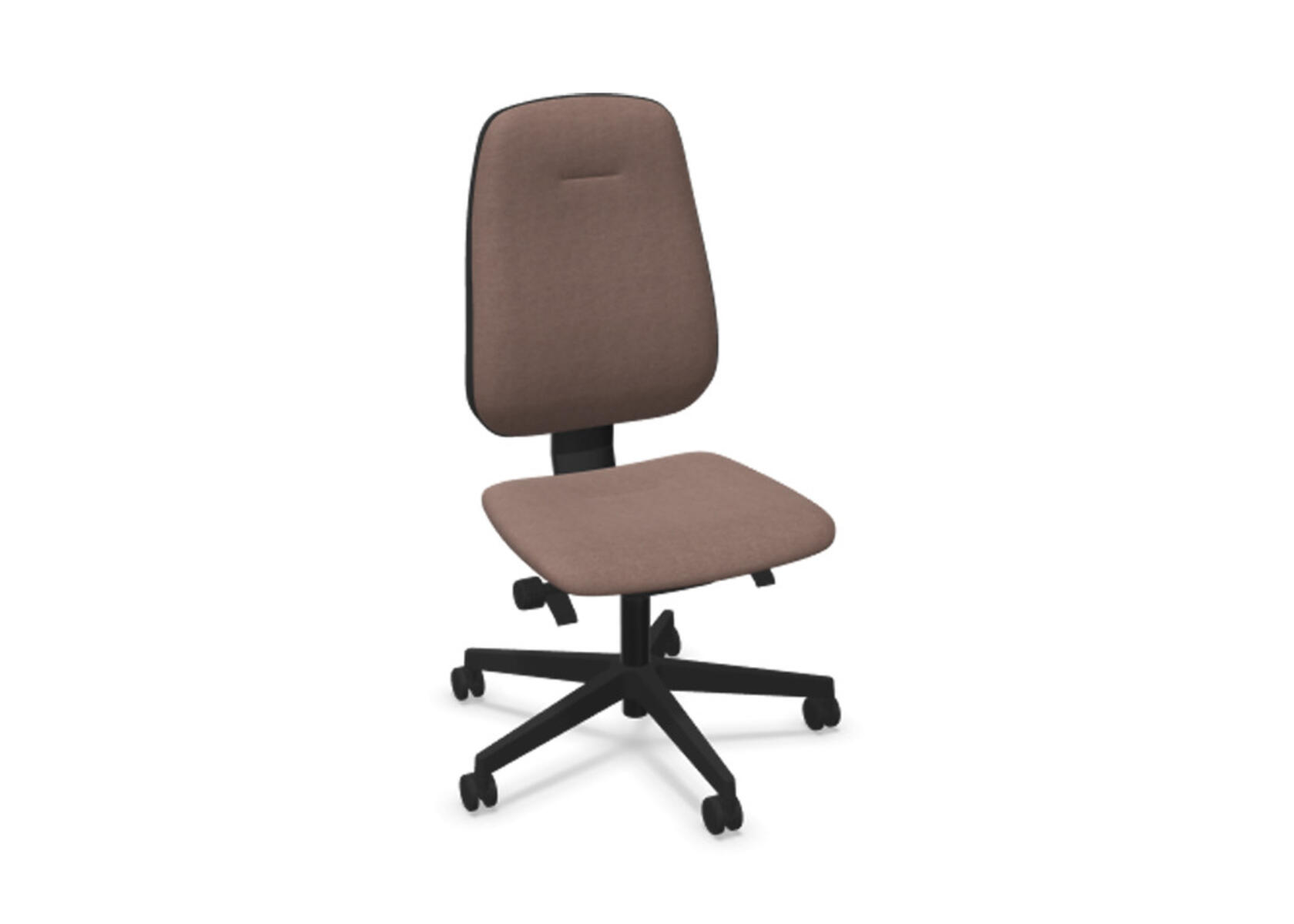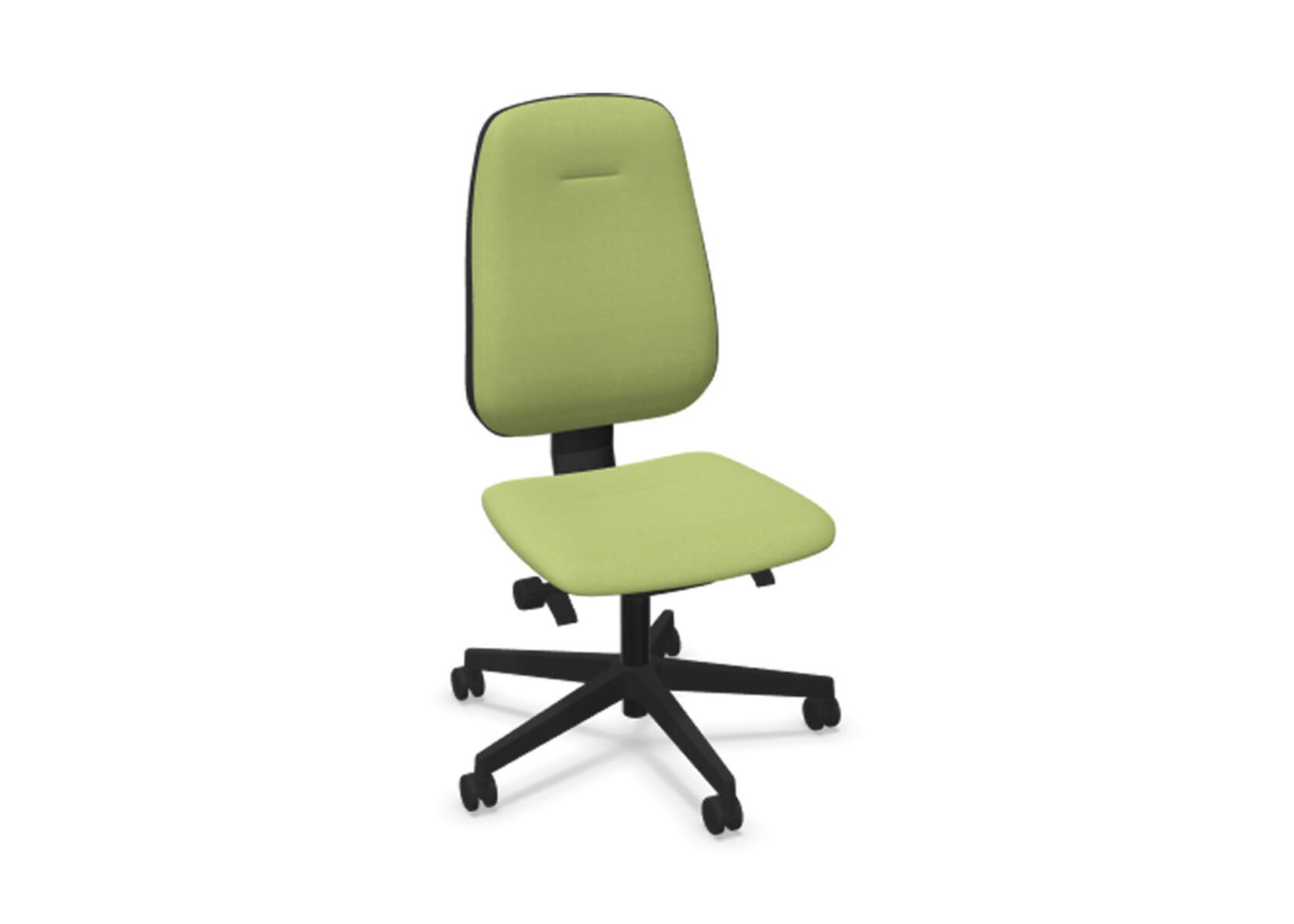 Ergonomisk kontorstol med delvis polstret medium høy rygg og synkronmekanisme, utformet for å gi støtte ved aktiv sitting gjennom hele arbeidsdagen. Den synkroniserte vinklingen mellom ryggstøtte og sete muliggjør en aktiv og komfortabel sittestilling. Ryggstøttens helningsvinkel er 20°, synkronisert med setets helningsvinkel på 11°. Ryggstøtten kan låses i 5 ulike posisjoner for individuell tilpasning, og motstanden justeres enkelt med et dreiehjul. Ryggstøtten er høydejusterbar innenfor et område på 75 mm med 13 låsbare trinn. Stolen har også Anti-Shock-funksjon som forhindrer at ryggstøtten slår tilbake når helningen låses opp. Velg mellom kryss i svart polyamid eller polert aluminium, samt selvbremsende hjul for myke eller harde gulv. Armlener i 2D, 3D eller 4D selges separat.