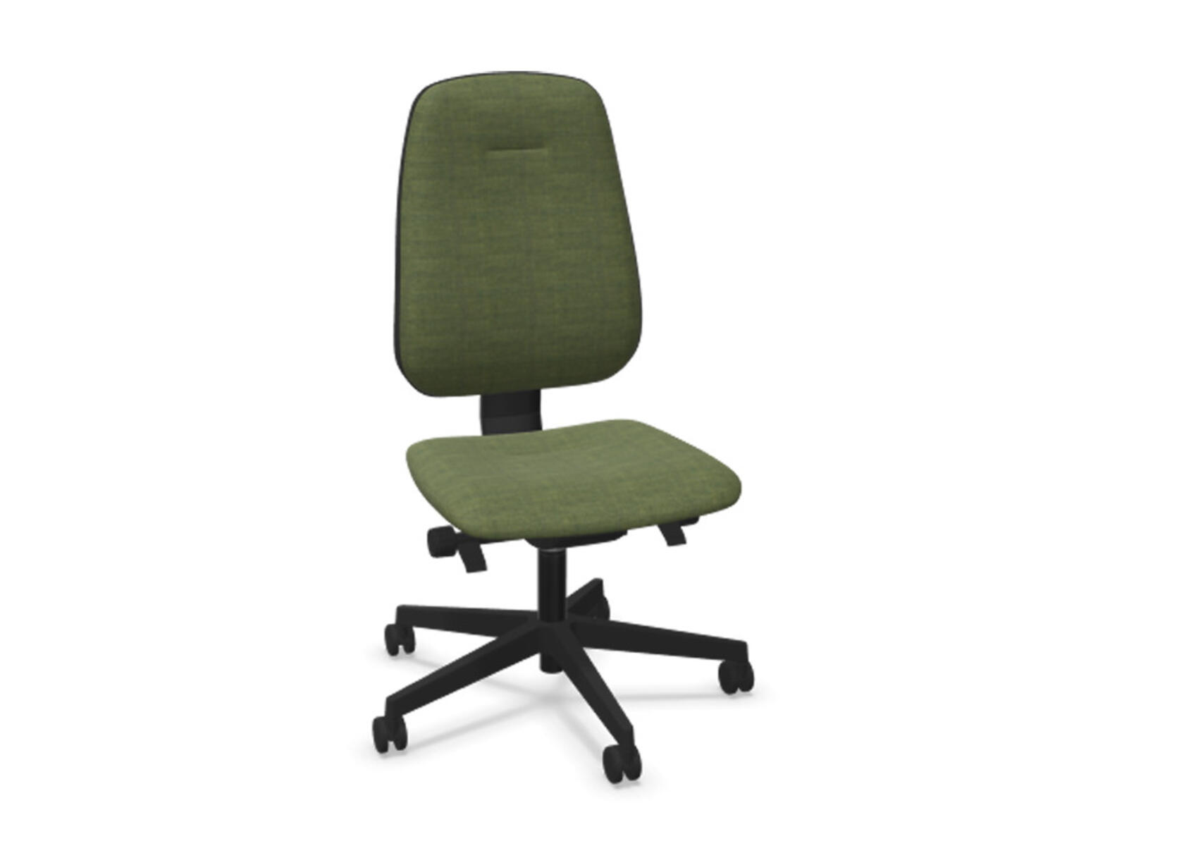 Ergonomisk kontorstol med delvis polstret medium høy rygg og synkronmekanisme, utformet for å gi støtte ved aktiv sitting gjennom hele arbeidsdagen. Den synkroniserte vinklingen mellom ryggstøtte og sete muliggjør en aktiv og komfortabel sittestilling. Ryggstøttens helningsvinkel er 20°, synkronisert med setets helningsvinkel på 11°. Ryggstøtten kan låses i 5 ulike posisjoner for individuell tilpasning, og motstanden justeres enkelt med et dreiehjul. Ryggstøtten er høydejusterbar innenfor et område på 75 mm med 13 låsbare trinn. Stolen har også Anti-Shock-funksjon som forhindrer at ryggstøtten slår tilbake når helningen låses opp. Velg mellom kryss i svart polyamid eller polert aluminium, samt selvbremsende hjul for myke eller harde gulv. Armlener i 2D, 3D eller 4D selges separat.