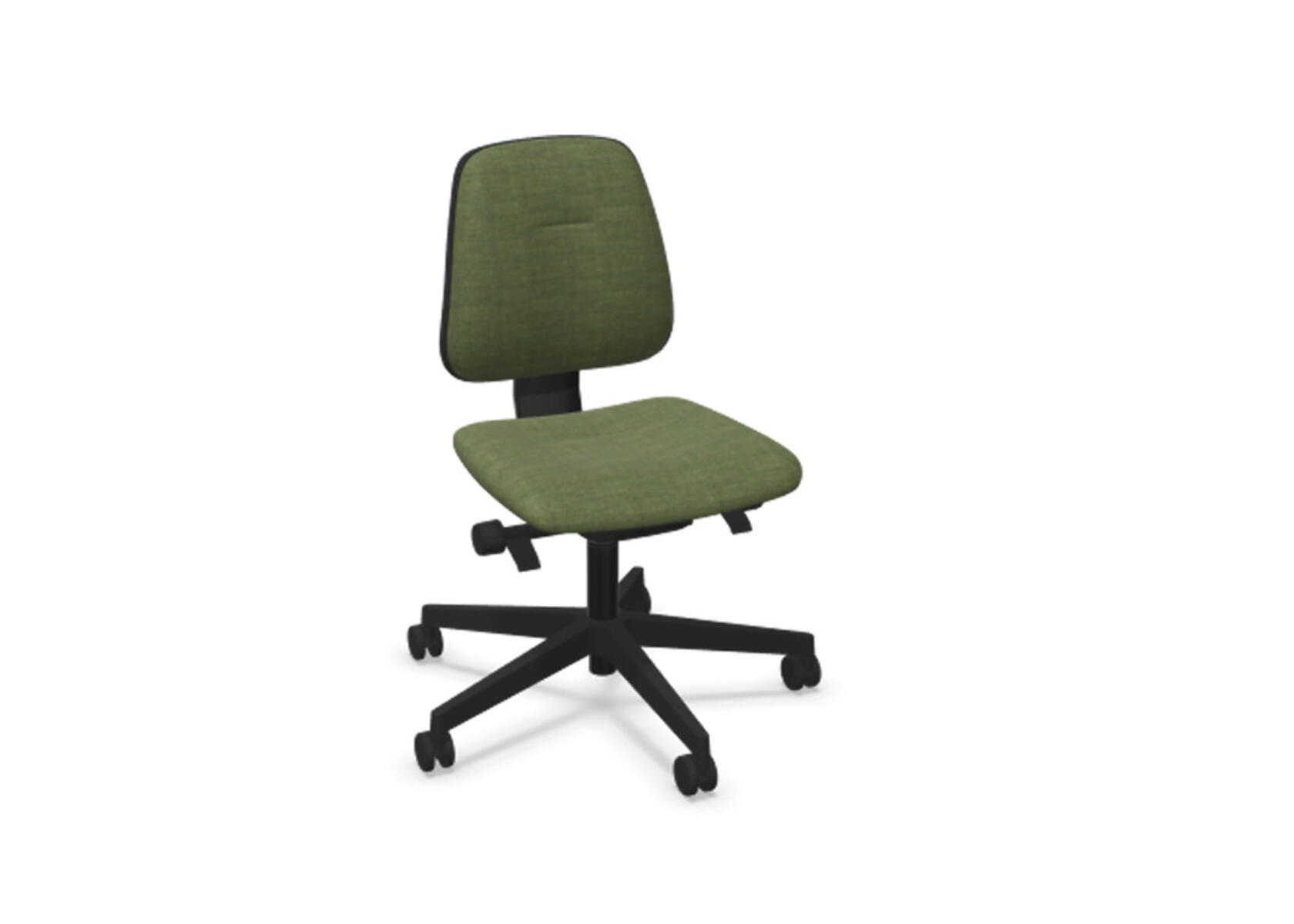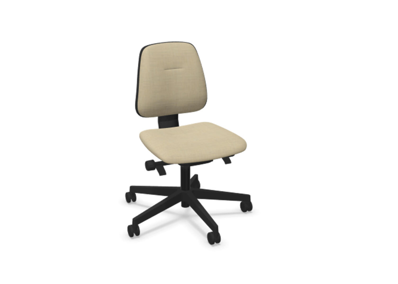 Ergonomisk kontorstol med delvis polstret lav rygg og synkronmekanisme, utformet for å gi støtte ved aktiv sitting gjennom hele arbeidsdagen. Den synkroniserte vinklingen mellom ryggstøtte og sete muliggjør en aktiv og komfortabel sittestilling. Ryggstøttens helningsvinkel er 20°, synkronisert med setets helningsvinkel på 11°. Ryggstøtten kan låses i 5 ulike posisjoner for individuell tilpasning, og motstanden justeres enkelt med et dreiehjul. Ryggstøtten er høydejusterbar innenfor et område på 75 mm med 13 låsbare trinn. Stolen har også Anti-Shock-funksjon som forhindrer at ryggstøtten slår tilbake når helningen låses opp. Velg mellom kryss i svart polyamid eller polert aluminium, samt selvbremsende hjul for myke eller harde gulv. Armlener i 2D, 3D eller 4D selges separat.