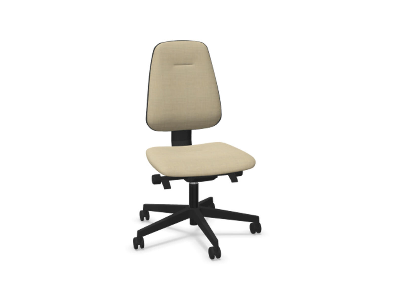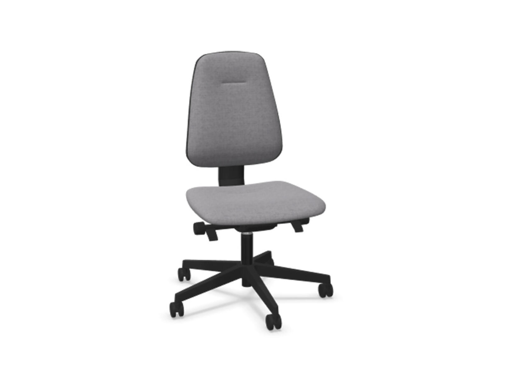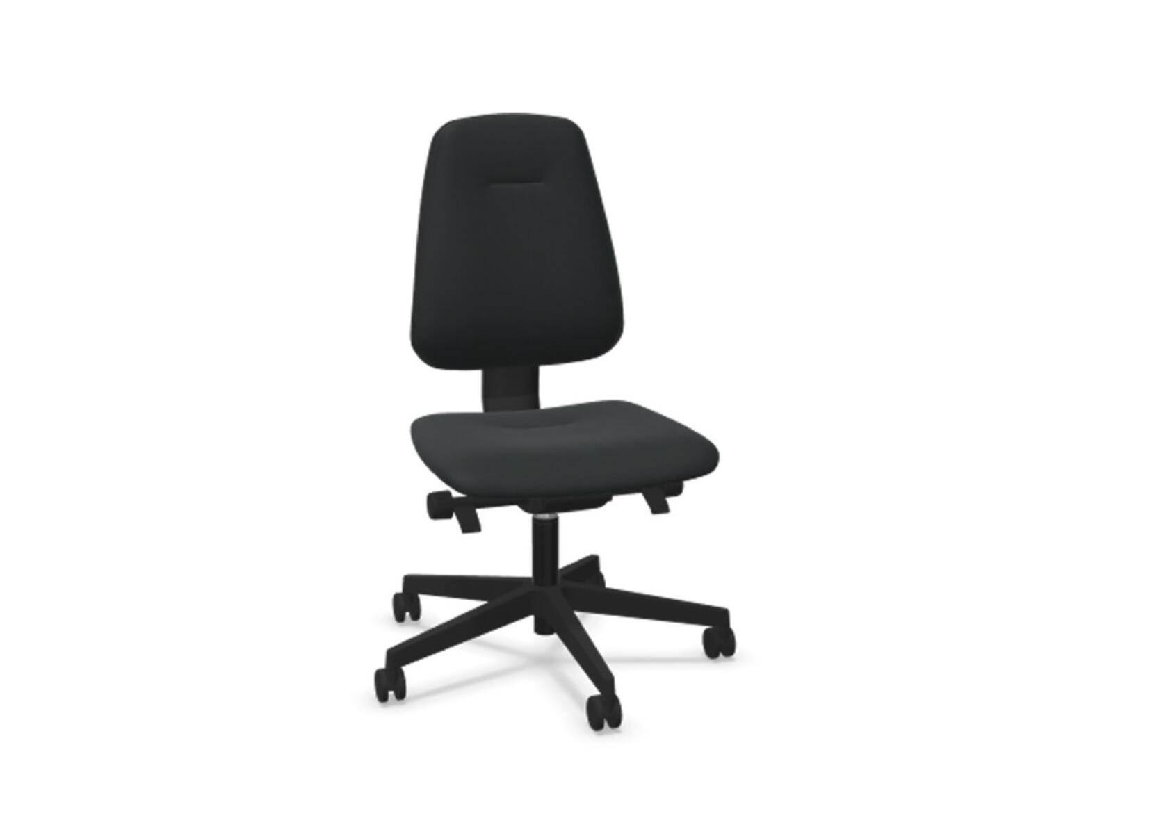 Ergonomisk kontorstol med delvis polstret medium høy rygg og synkronmekanisme, utformet for å gi støtte ved aktiv sitting gjennom hele arbeidsdagen. Den synkroniserte vinklingen mellom ryggstøtte og sete muliggjør en aktiv og komfortabel sittestilling. Ryggstøttens helningsvinkel er 20°, synkronisert med setets helningsvinkel på 11°. Ryggstøtten kan låses i 5 ulike posisjoner for individuell tilpasning, og motstanden justeres enkelt med et dreiehjul. Ryggstøtten er høydejusterbar innenfor et område på 75 mm med 13 låsbare trinn. Stolen har også Anti-Shock-funksjon som forhindrer at ryggstøtten slår tilbake når helningen låses opp. Velg mellom kryss i svart polyamid eller polert aluminium, samt selvbremsende hjul for myke eller harde gulv. Armlener i 2D, 3D eller 4D selges separat.