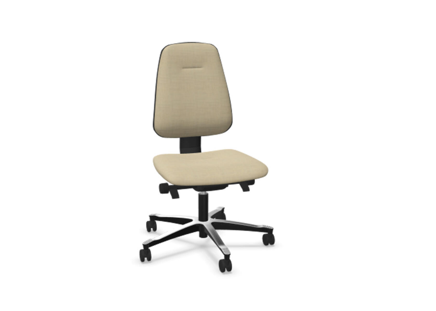 Ergonomisk kontorstol med delvis polstret lav rygg og synkronmekanisme, utformet for å gi støtte ved aktiv sitting gjennom hele arbeidsdagen. Den synkroniserte vinklingen mellom ryggstøtte og sete muliggjør en aktiv og komfortabel sittestilling. Ryggstøttens helningsvinkel er 20°, synkronisert med setets helningsvinkel på 11°. Ryggstøtten kan låses i 5 ulike posisjoner for individuell tilpasning, og motstanden justeres enkelt med et dreiehjul. Ryggstøtten er høydejusterbar innenfor et område på 75 mm med 13 låsbare trinn. Stolen har også Anti-Shock-funksjon som forhindrer at ryggstøtten slår tilbake når helningen låses opp. Velg mellom kryss i svart polyamid eller polert aluminium, samt selvbremsende hjul for myke eller harde gulv. Armlener i 2D, 3D eller 4D selges separat.