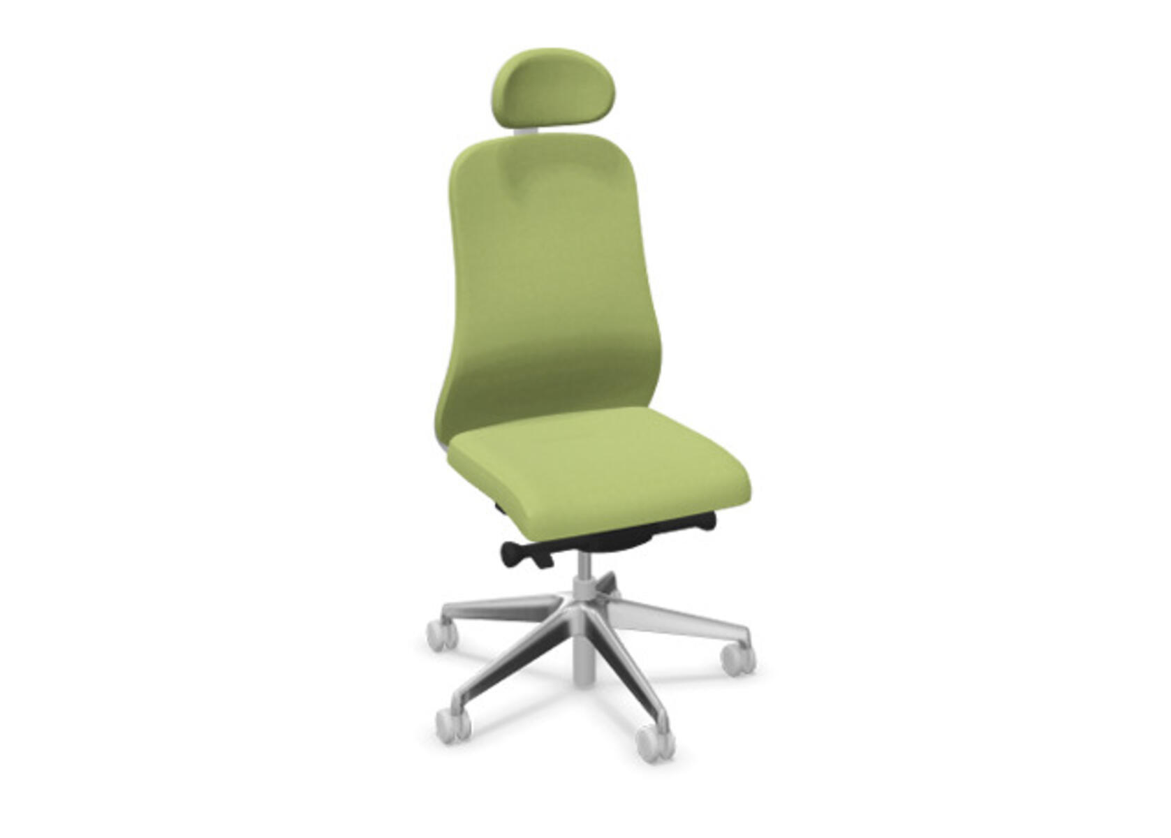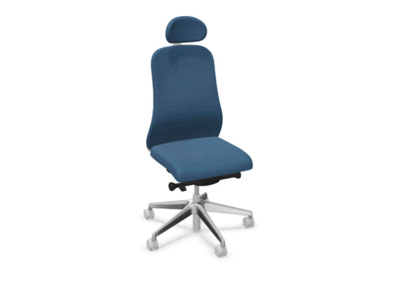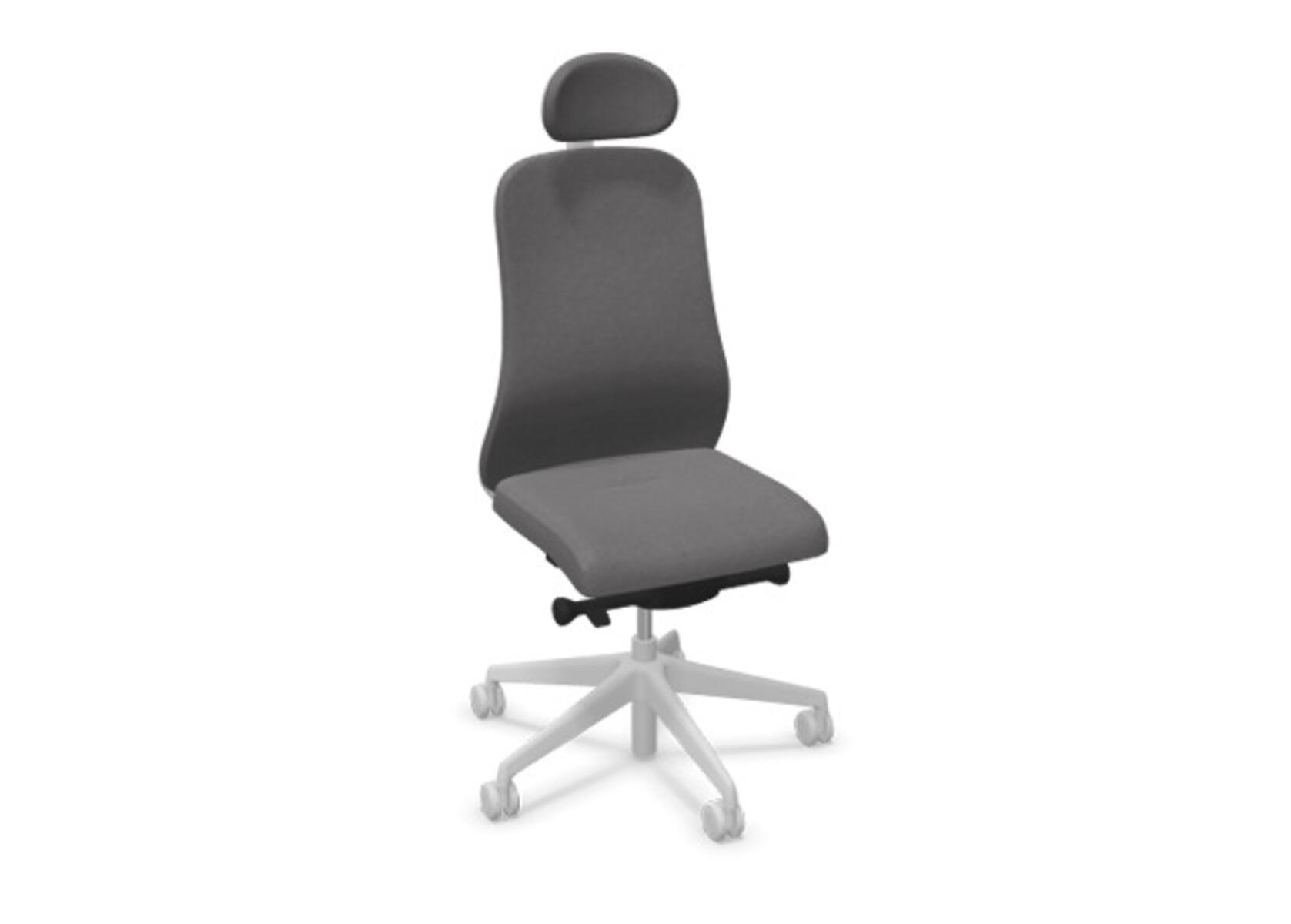 Moderne og ergonomisk kontorstol med delvis polstret rygg og avansert synkronmekanisme samt justering av sittedybde, utformet for å gi støtte ved aktiv sitting gjennom hele arbeidsdagen. Trukket i polyesterstoff. Den synkroniserte bevegelsen mellom rygg og sete gir en aktiv og komfortabel sittestilling. Ryggens vippevinkel er 23° synkronisert med setets vippevinkel på 10°. Ryggstøtten kan låses i 5 ulike posisjoner for individuell tilpasning, og motstanden i ryggstøtten justeres enkelt med et dreiehjul, 7 nivåer. Ryggstøtten er ikke høydejusterbar. Sittedybden kan justeres innenfor et område på 60 mm, med 7 låsbare posisjoner. Negativ setevinkel på –2° synkronisert med ryggvinkel på 5°, noe som sikrer optimalt støtte for brukerens rygg i alle vippeposisjoner. Stolen har også Anti-Shock-funksjon som hindrer at ryggstøtten slår tilbake når låsen frigjøres. Polstret nakkestøtte, justerbar innenfor intervaller: dybde 20 mm, vinkel 70° og høyde 100 mm. Velg mellom kryss i lysgrå polyamid eller polert aluminium samt selvbremsende hjul for myke eller harde gulv. Som tilvalg finnes også korsryggstøtte, manuelt høydejusterbar (55 mm). Armlener i 2D, 3D eller 4D selges separat.