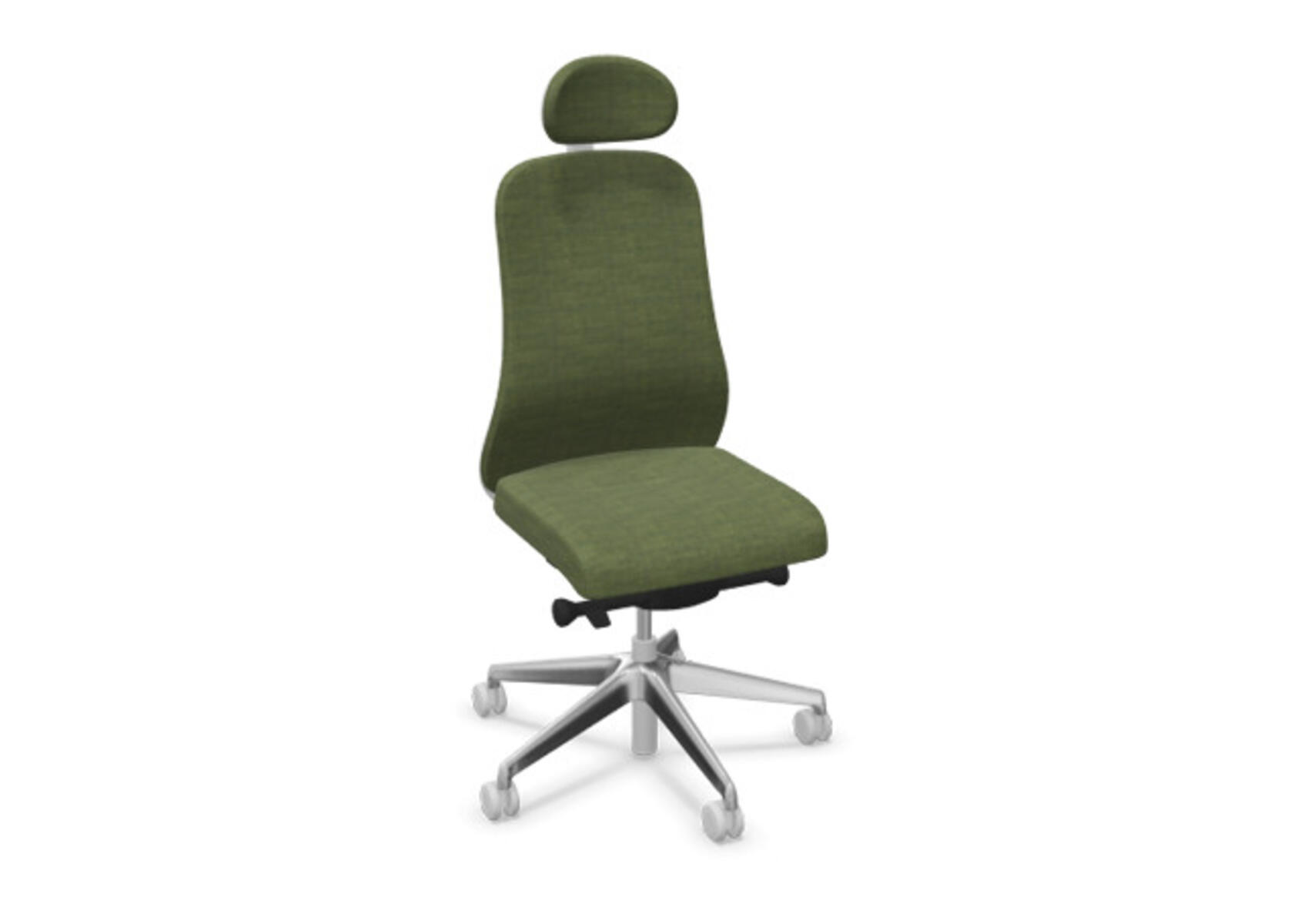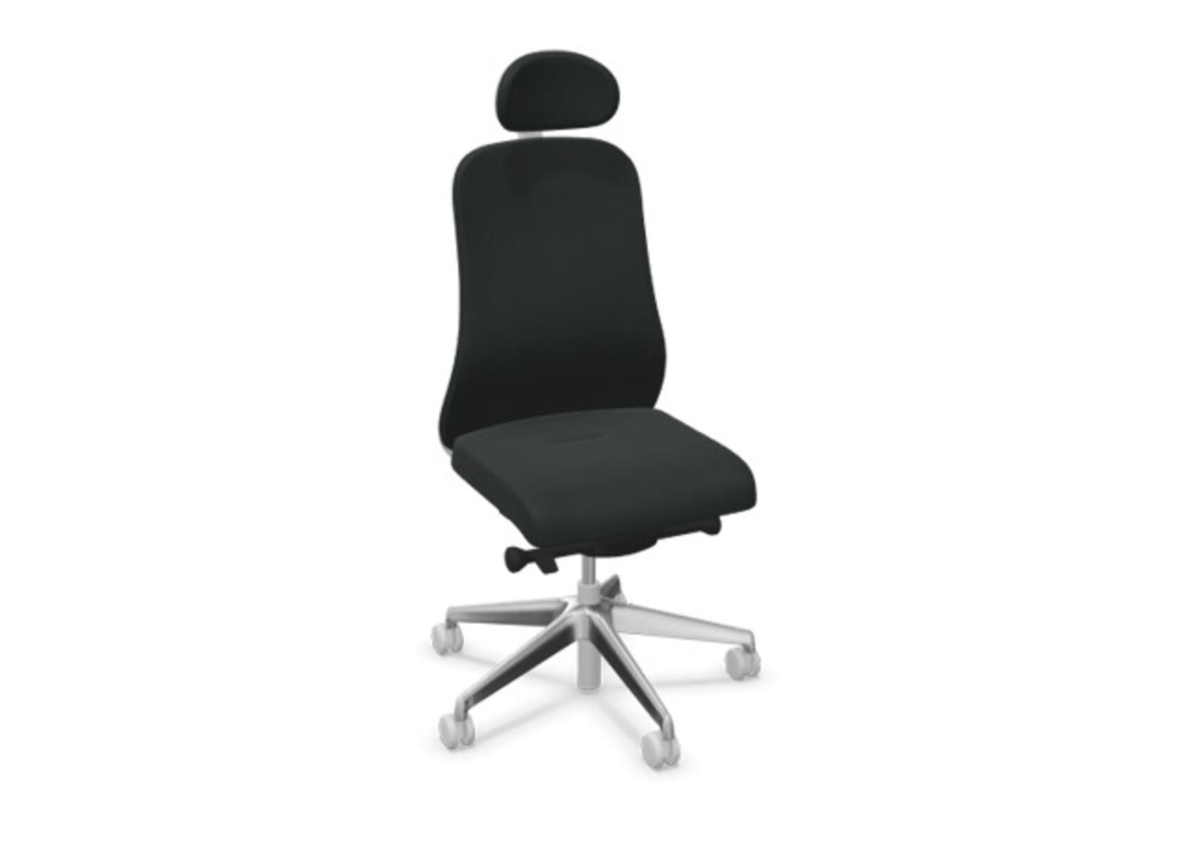 Moderne og ergonomisk kontorstol med delvis polstret rygg og avansert synkronmekanisme samt justering av sittedybde, utformet for å gi støtte ved aktiv sitting gjennom hele arbeidsdagen. Trukket i polyesterstoff. Den synkroniserte bevegelsen mellom rygg og sete gir en aktiv og komfortabel sittestilling. Ryggens vippevinkel er 23° synkronisert med setets vippevinkel på 10°. Ryggstøtten kan låses i 5 ulike posisjoner for individuell tilpasning, og motstanden i ryggstøtten justeres enkelt med et dreiehjul, 7 nivåer. Ryggstøtten er ikke høydejusterbar. Sittedybden kan justeres innenfor et område på 60 mm, med 7 låsbare posisjoner. Stolen har også Anti-Shock-funksjon som hindrer at ryggstøtten slår tilbake når låsen frigjøres. Polstret nakkestøtte, justerbar innenfor intervaller: dybde 20 mm, vinkel 70° og høyde 100 mm. Velg mellom kryss i lysgrå polyamid eller polert aluminium samt selvbremsende hjul for myke eller harde gulv. Som tilvalg finnes også korsryggstøtte, manuelt høydejusterbar (55 mm). Armlener i 2D, 3D eller 4D selges separat.