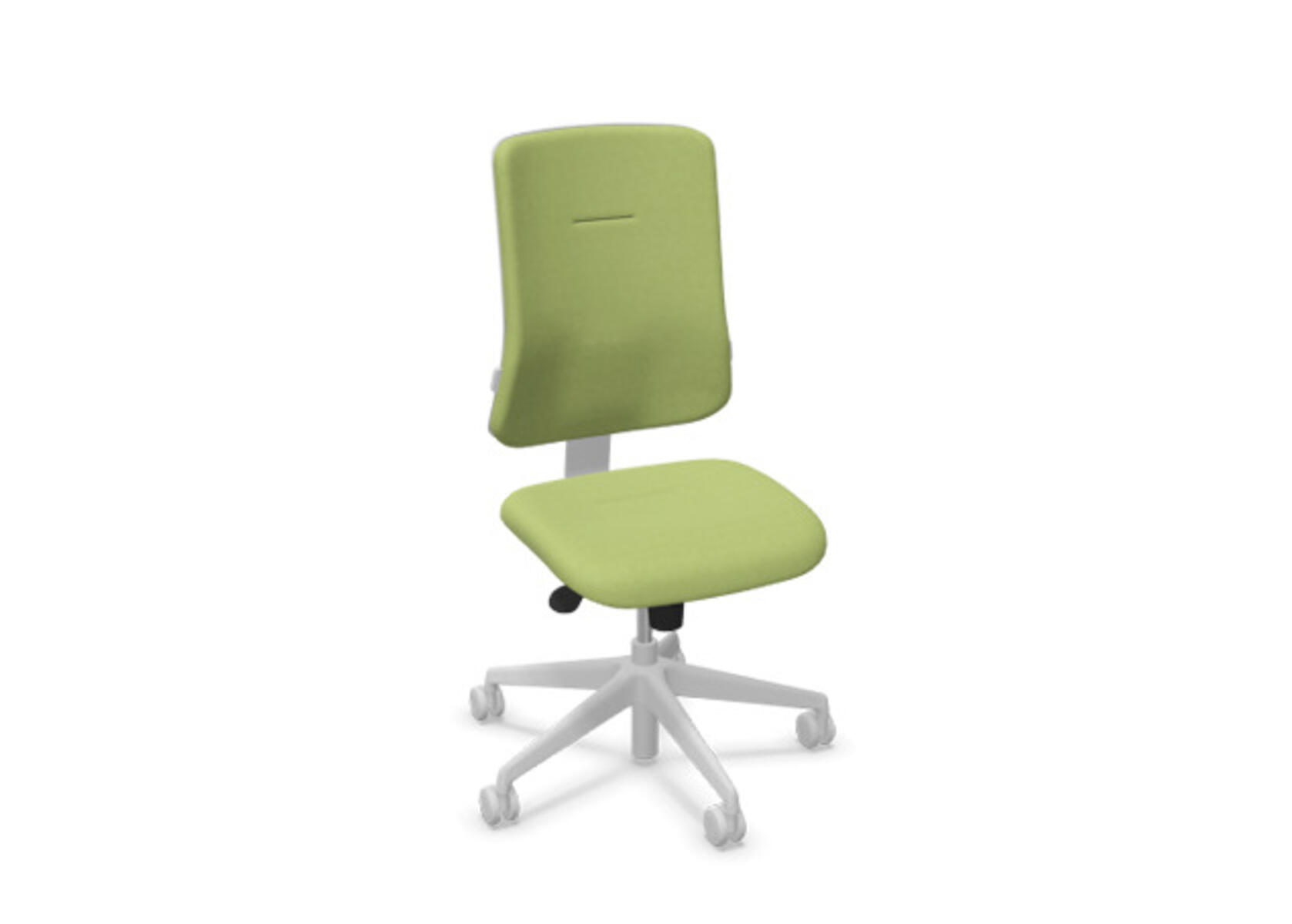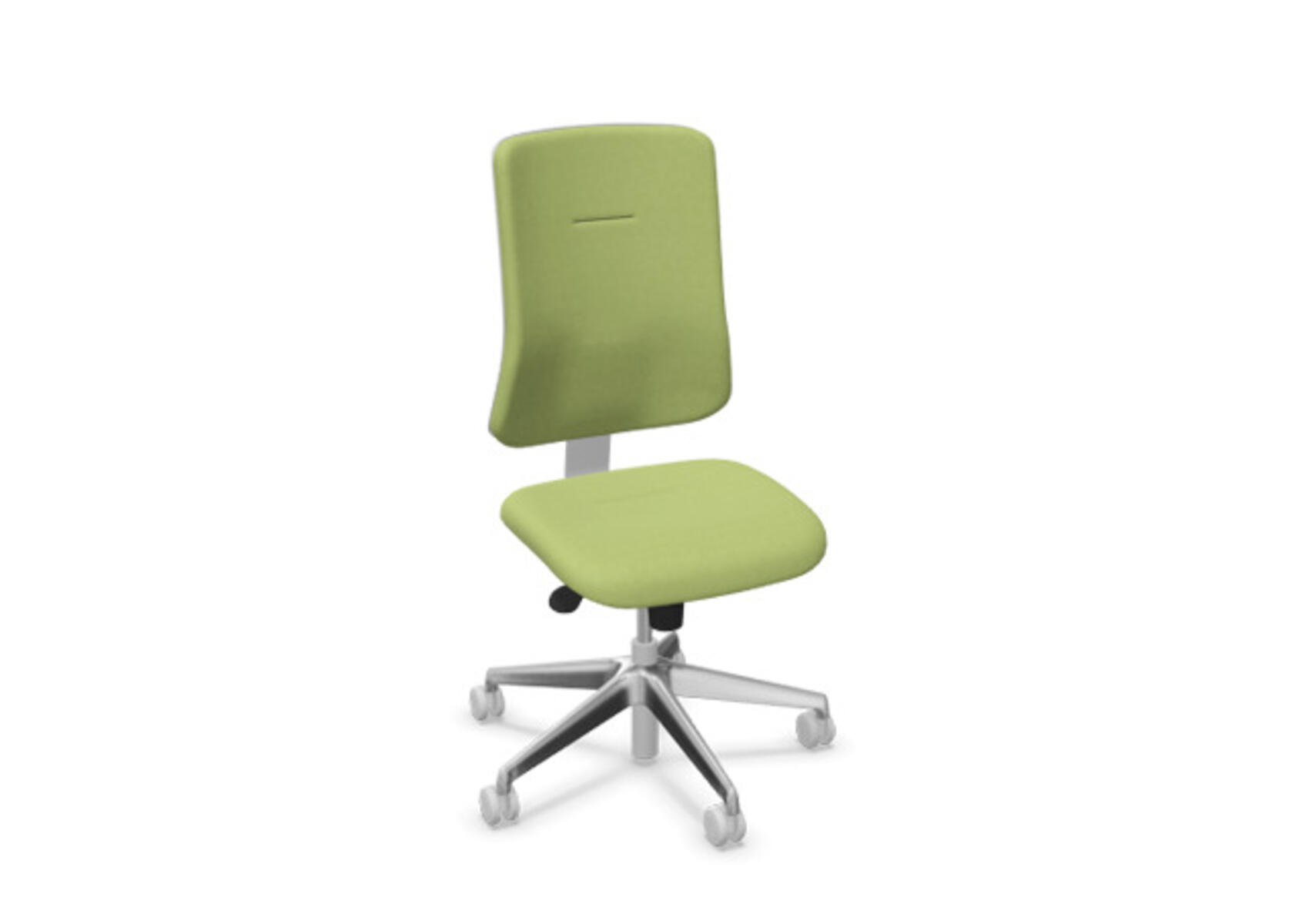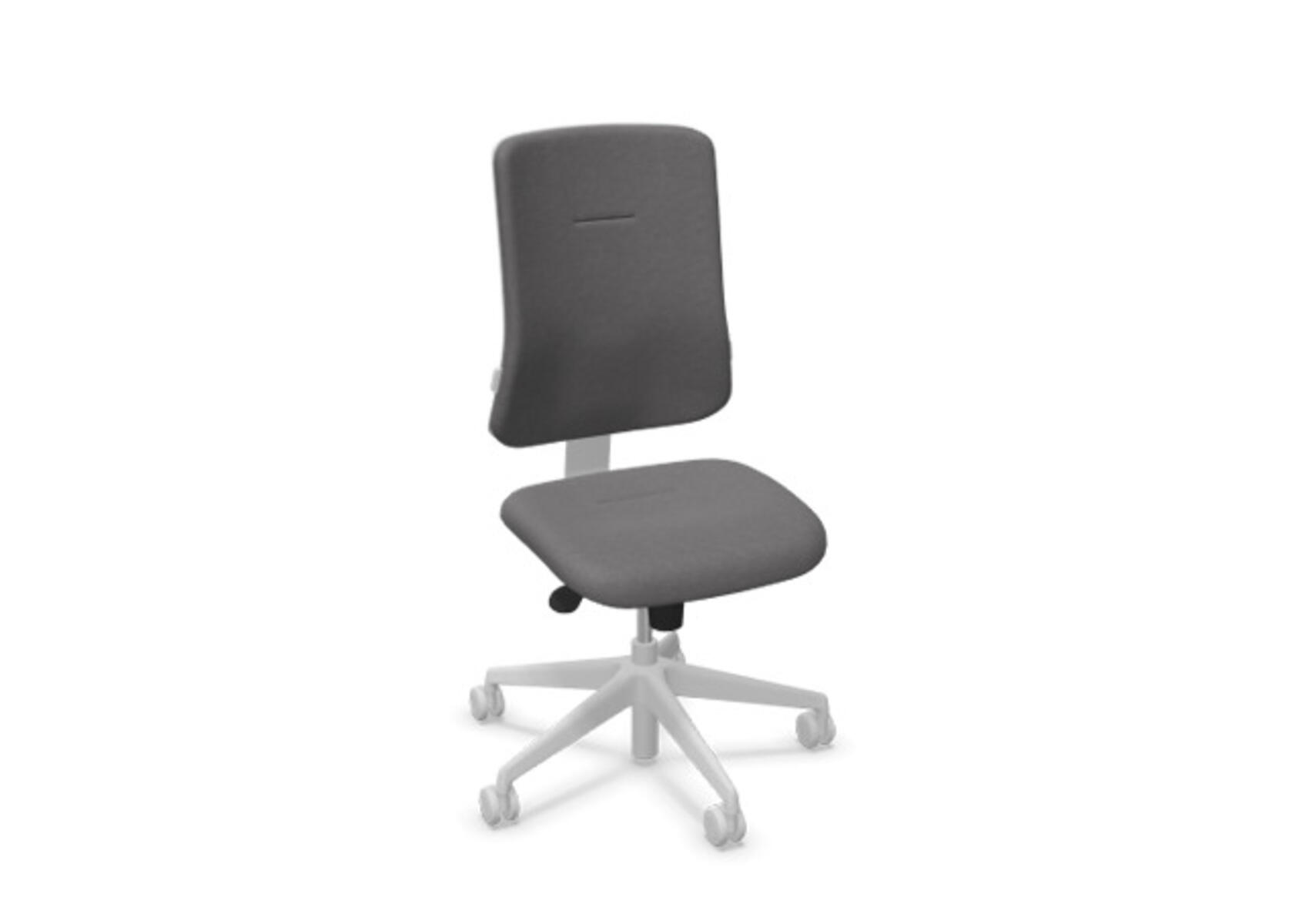 Ergonomisk kontorstol med delvis polstret rygg og synkronmekanisme, utformet for å gi støtte ved aktiv sitting gjennom hele arbeidsdagen. Polyesterstoff. Den synkroniserte bevegelsen mellom ryggstøtte og sete gir en aktiv og komfortabel sittestilling. Ryggstøttens vippevinkel er 20° synkronisert med setets vippevinkel på 11°. Ryggstøtten kan låses i 5 ulike posisjoner for individuell tilpasning, og motstanden i ryggstøtten justeres enkelt med et dreiehjul. Stolen har også Anti-Shock-funksjon som hindrer ryggstøtten i å slå tilbake når vippen låses opp. Velg mellom kryss i lysgrå polyamid eller polert aluminium samt selvbremsende hjul for myke eller harde gulv. Som tilvalg finnes også regulerbart korsryggstøtte, manuelt justerbart i dybde (15 mm) og høyde (20 mm). Armlener i 2D, 3D eller 4D selges separat.