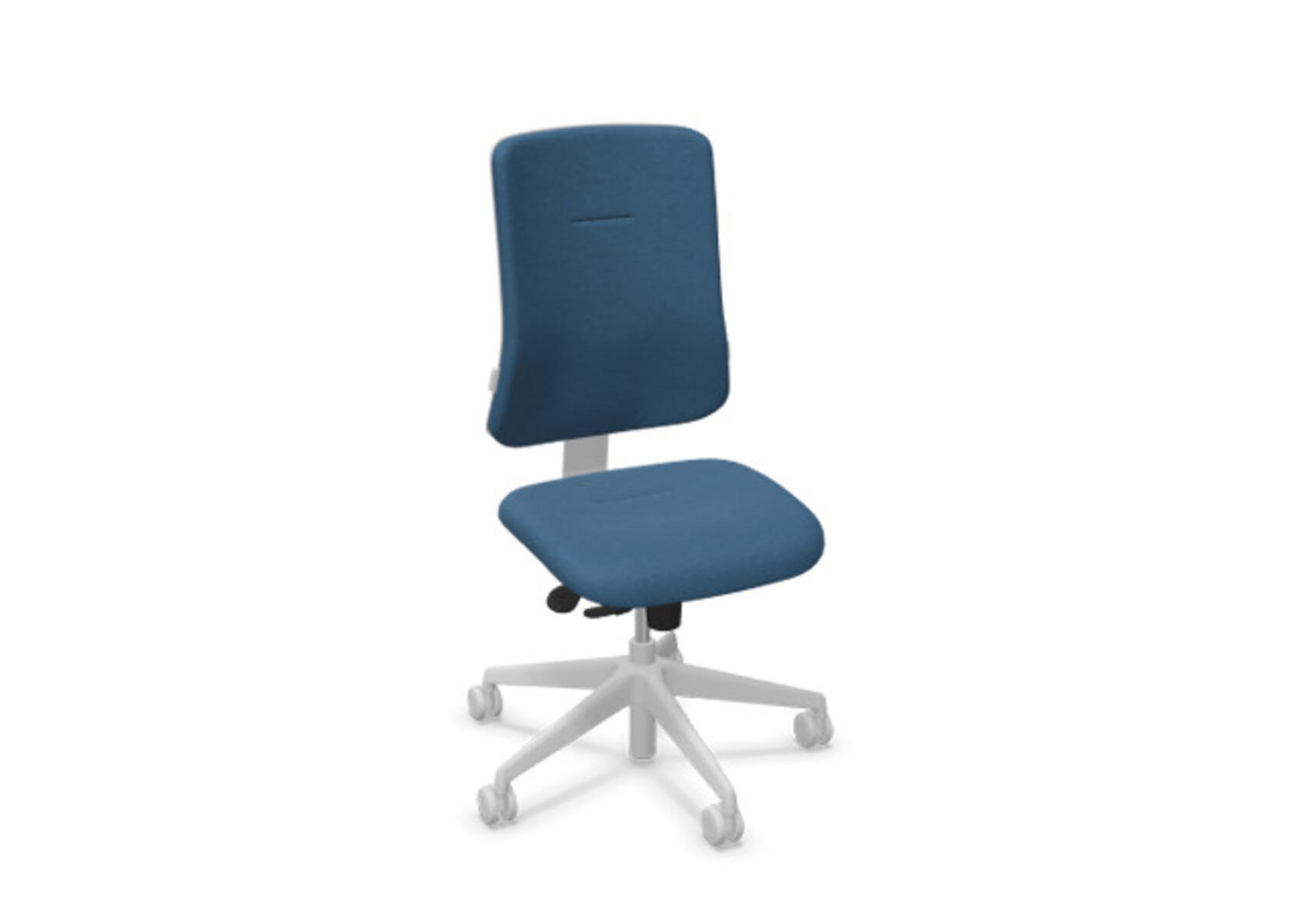 Ergonomisk kontorstol med delvis polstret rygg og synkronmekanisme, utformet for å gi støtte ved aktiv sitting gjennom hele arbeidsdagen. Polyesterstoff. Den synkroniserte bevegelsen mellom ryggstøtte og sete gir en aktiv og komfortabel sittestilling. Ryggstøttens vippevinkel er 20° synkronisert med setets vippevinkel på 11°. Ryggstøtten kan låses i 5 ulike posisjoner for individuell tilpasning, og motstanden i ryggstøtten justeres enkelt med et dreiehjul. Polstret nakkestøtte, justerbar innenfor intervallene: dybde 20 mm, vinkel 70° og høyde 100 mm. Stolen har også Anti-Shock-funksjon som hindrer ryggstøtten i å slå tilbake når vippen låses opp. Velg mellom kryss i lysgrå polyamid eller polert aluminium samt selvbremsende hjul for myke eller harde gulv. Som tilvalg finnes også regulerbart korsryggstøtte, manuelt justerbart i dybde (15 mm) og høyde (20 mm). Armlener i 2D, 3D eller 4D selges separat.