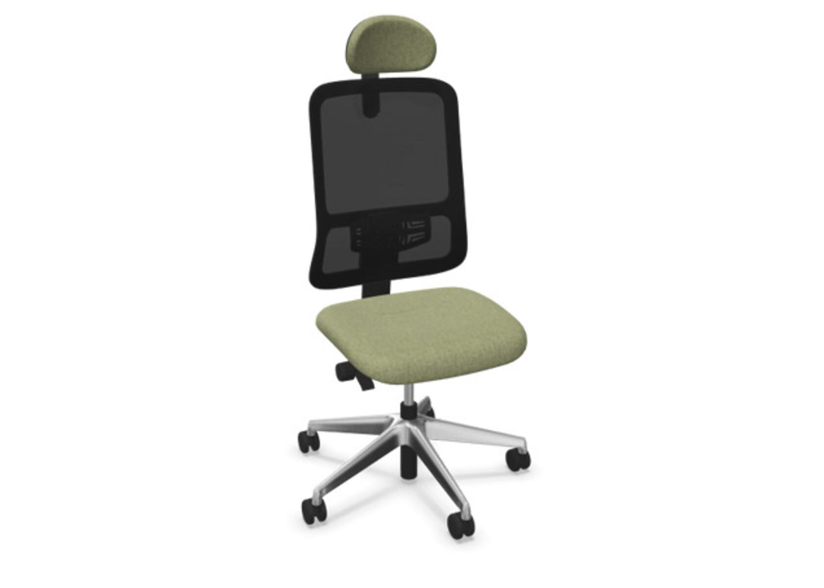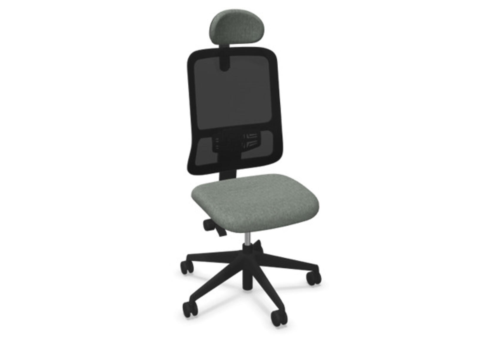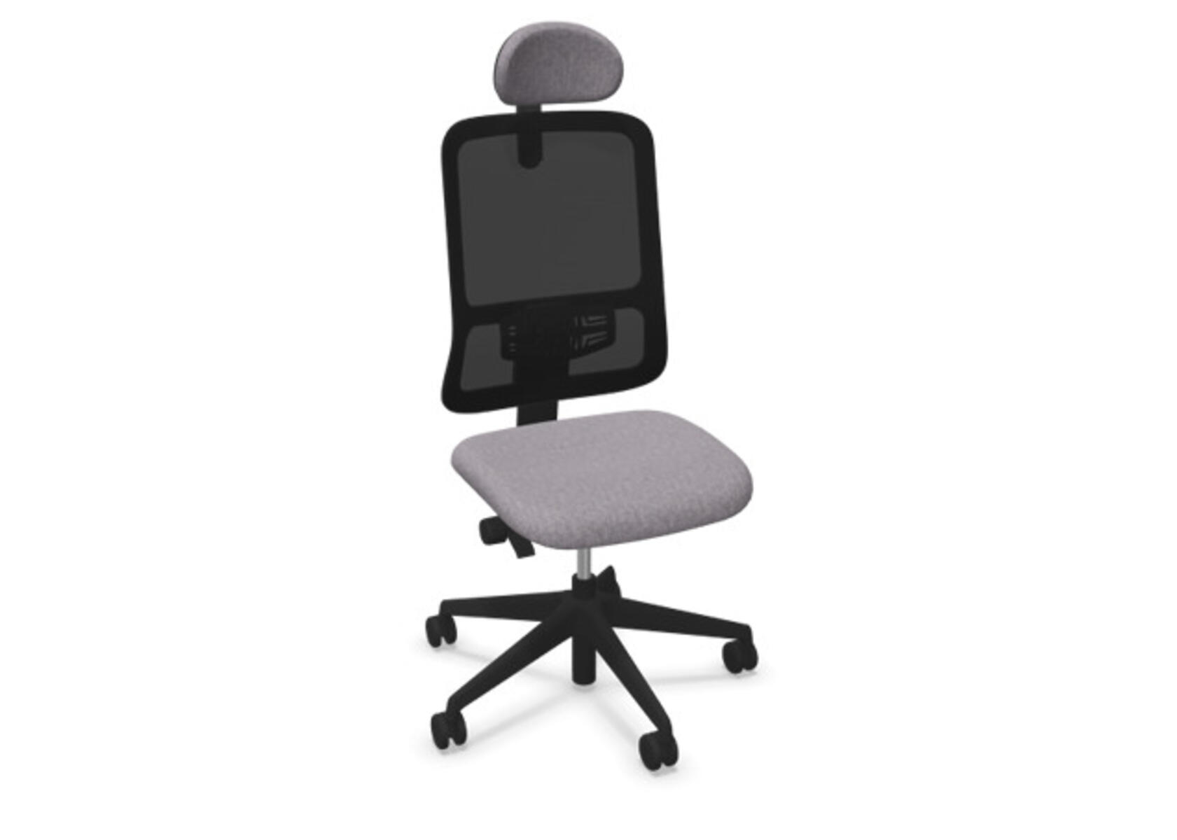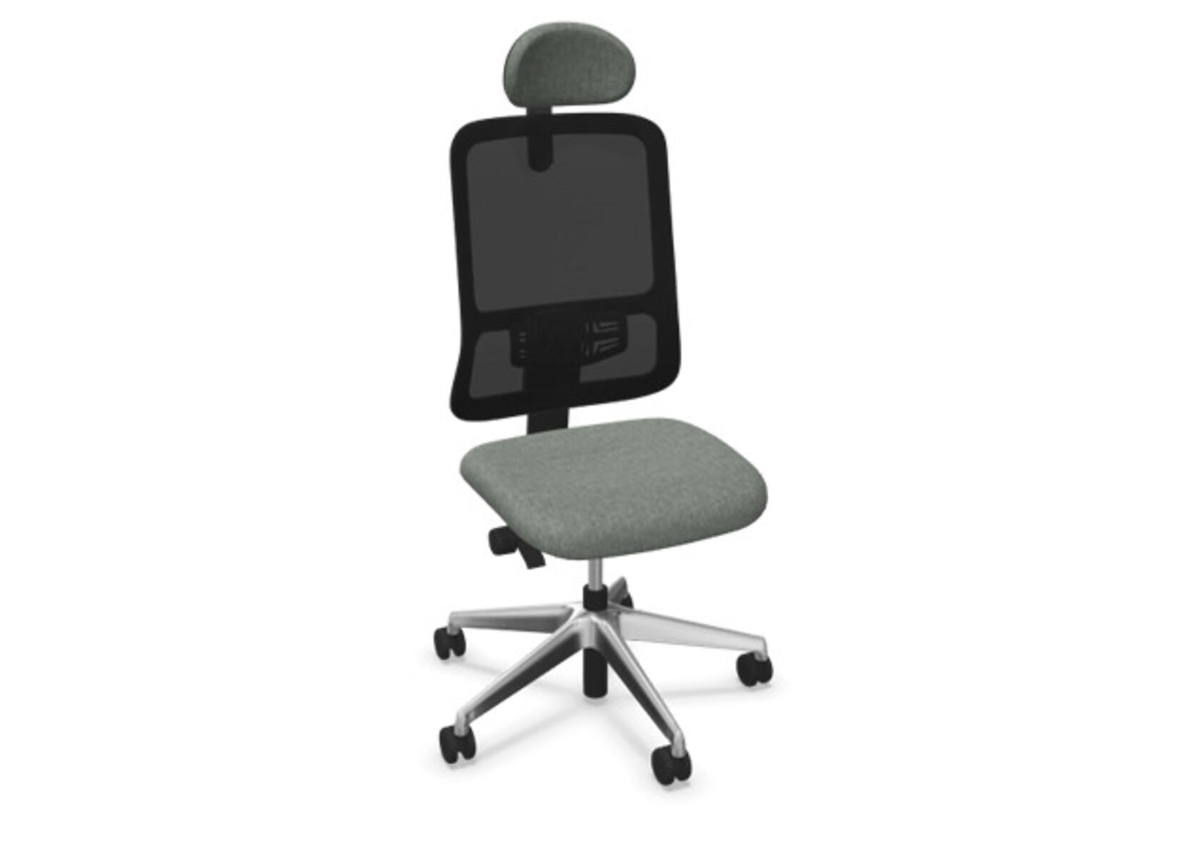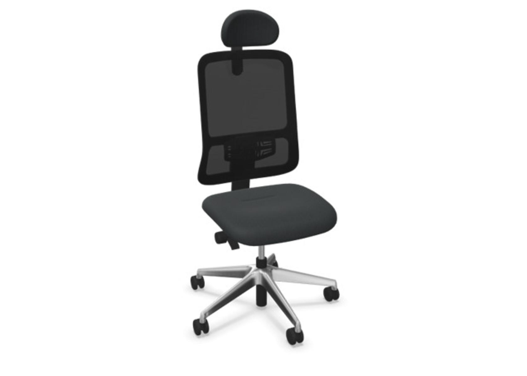 Ergonomisk kontorstol med delvis polstret rygg og synkronmekanisme, utformet for å gi støtte ved aktiv sitting gjennom hele arbeidsdagen. Polyesterstoff. Den synkroniserte bevegelsen mellom ryggstøtte og sete gir en aktiv og komfortabel sittestilling. Ryggstøttens vippevinkel er 20° synkronisert med setets vippevinkel på 11°. Ryggstøtten kan låses i 5 ulike posisjoner for individuell tilpasning, og motstanden i ryggstøtten justeres enkelt med et dreiehjul. Stolen har også Anti-Shock-funksjon som hindrer ryggstøtten i å slå tilbake når vippen låses opp. Velg mellom kryss i lysgrå polyamid eller polert aluminium samt selvbremsende hjul for myke eller harde gulv. Som tilvalg finnes også regulerbart korsryggstøtte, manuelt justerbart i dybde (15 mm) og høyde (20 mm). Armlener i 2D, 3D eller 4D selges separat.