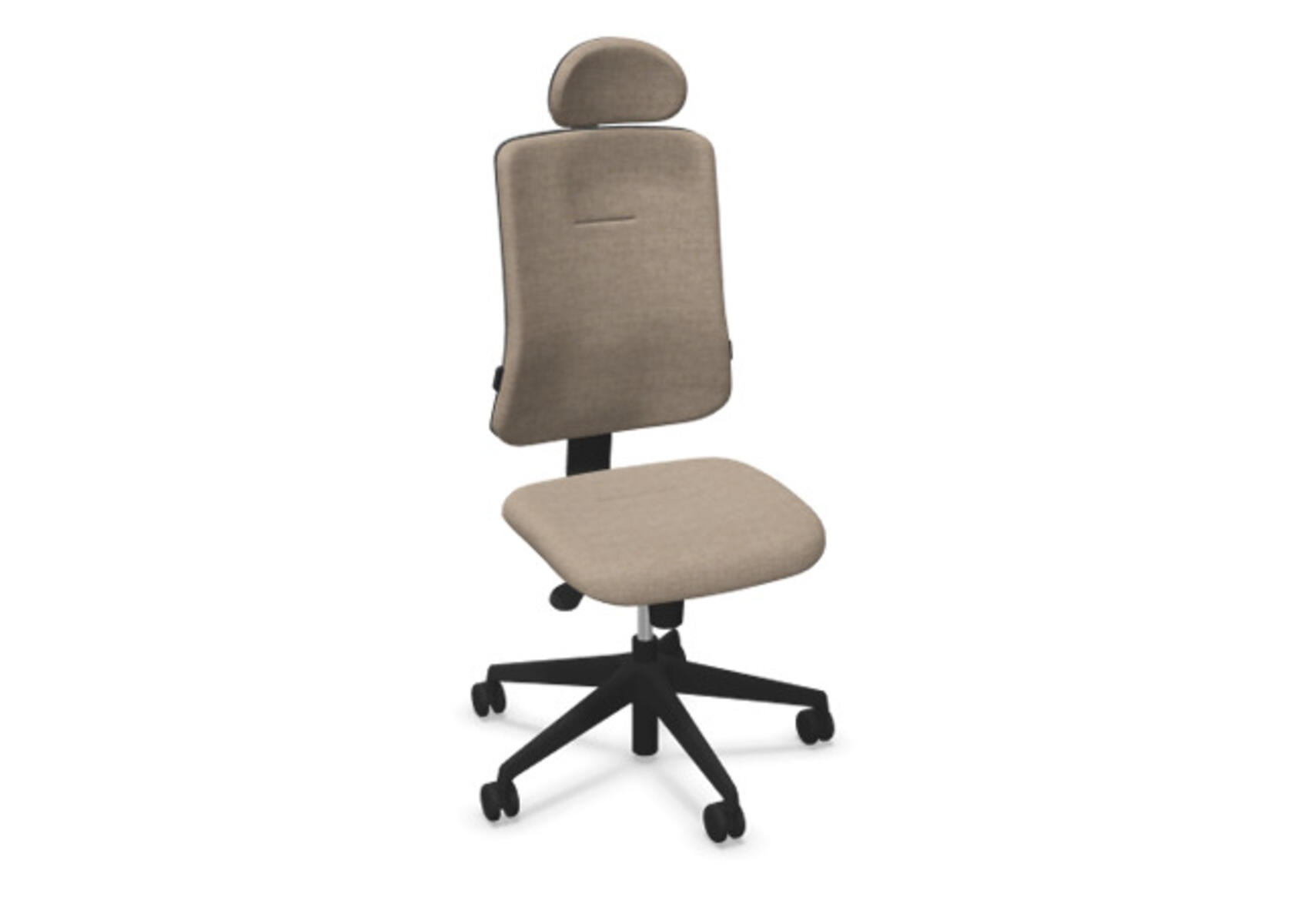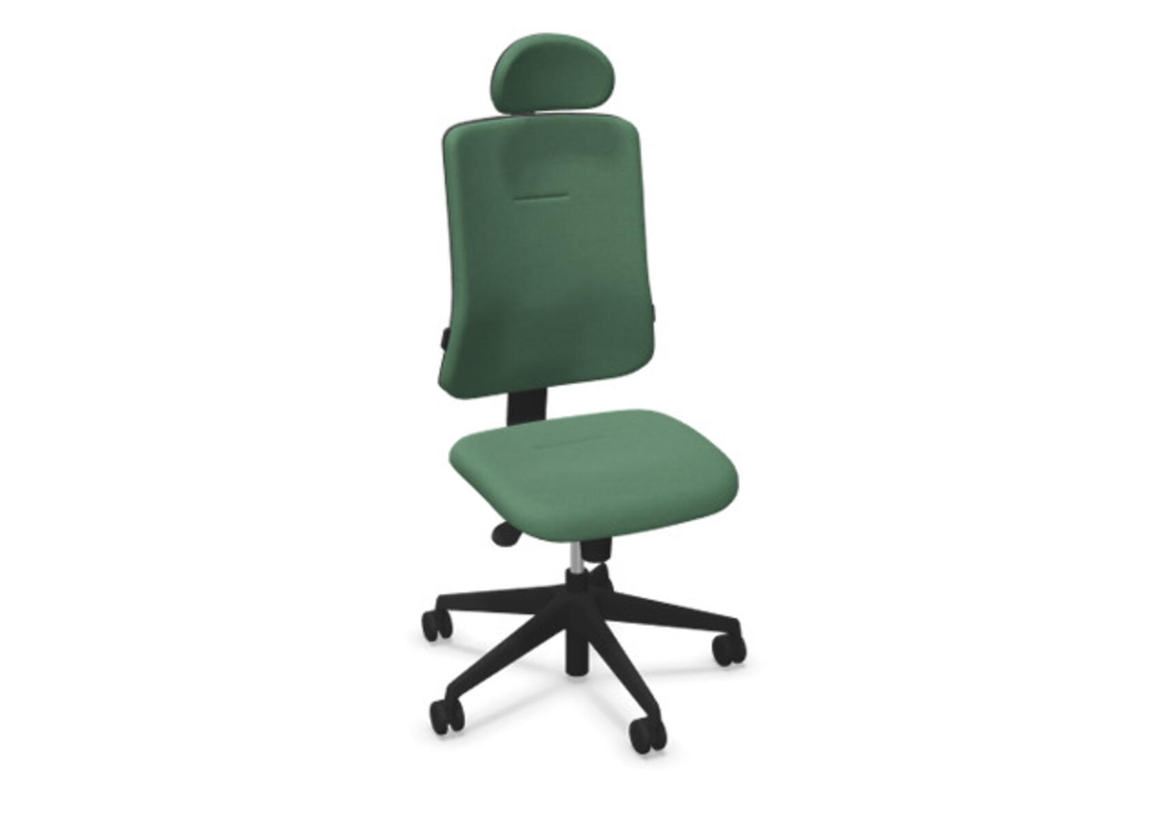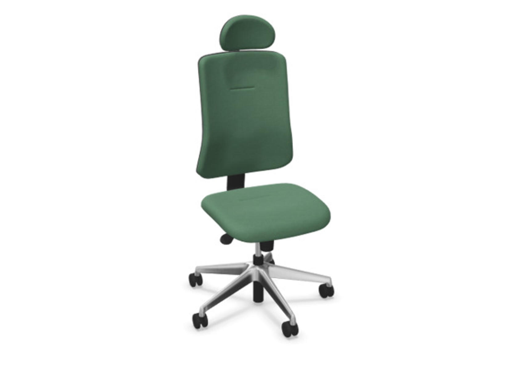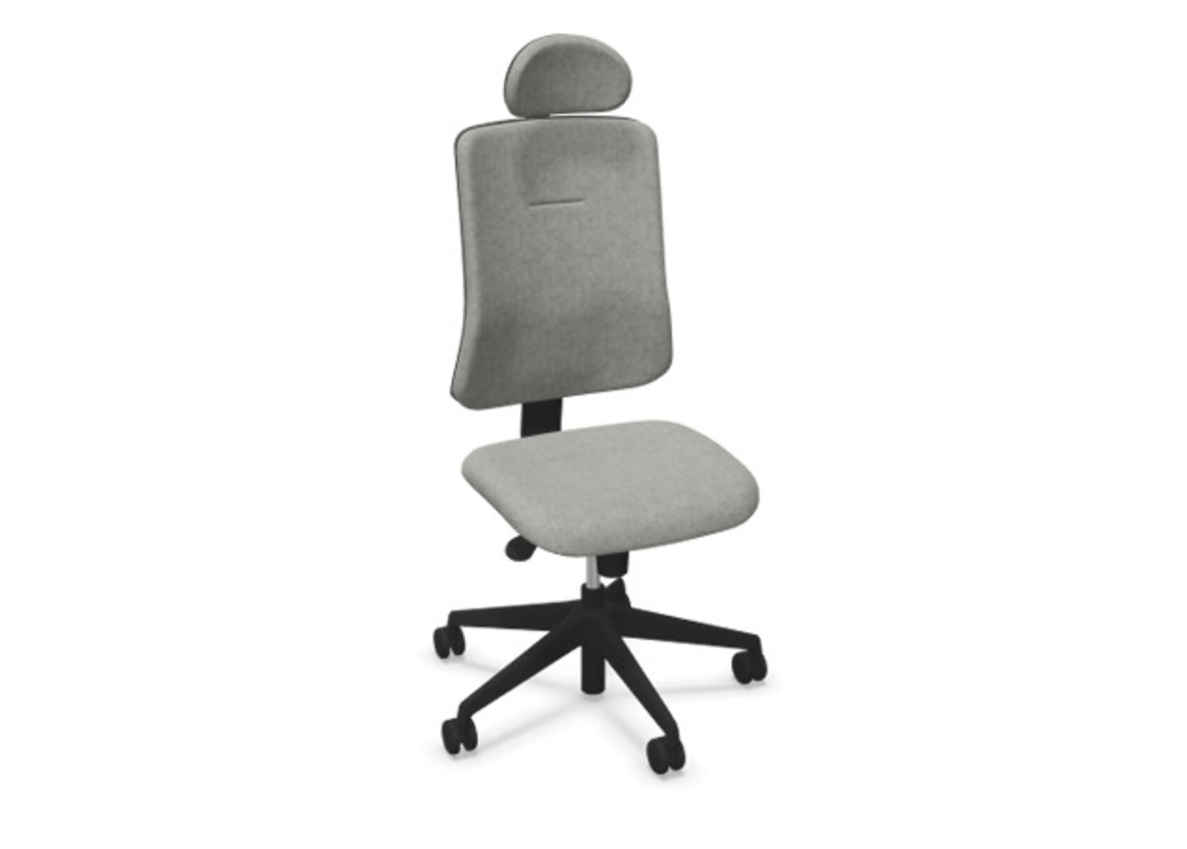 Ergonomisk kontorstol med delvis polstret rygg og synkronmekanisme, utformet for å gi støtte ved aktiv sitting gjennom hele arbeidsdagen. Polyesterstoff. Den synkroniserte bevegelsen mellom ryggstøtte og sete gir en aktiv og komfortabel sittestilling. Ryggstøttens vippevinkel er 20° synkronisert med setets vippevinkel på 11°. Ryggstøtten kan låses i 5 ulike posisjoner for individuell tilpasning, og motstanden i ryggstøtten justeres enkelt med et dreiehjul. Polstret nakkestøtte, justerbar innenfor intervallene: dybde 20 mm, vinkel 70° og høyde 100 mm. Stolen har også Anti-Shock-funksjon som hindrer ryggstøtten i å slå tilbake når vippen låses opp. Velg mellom kryss i lysgrå polyamid eller polert aluminium samt selvbremsende hjul for myke eller harde gulv. Som tilvalg finnes også regulerbart korsryggstøtte, manuelt justerbart i dybde (15 mm) og høyde (20 mm). Armlener i 2D, 3D eller 4D selges separat.