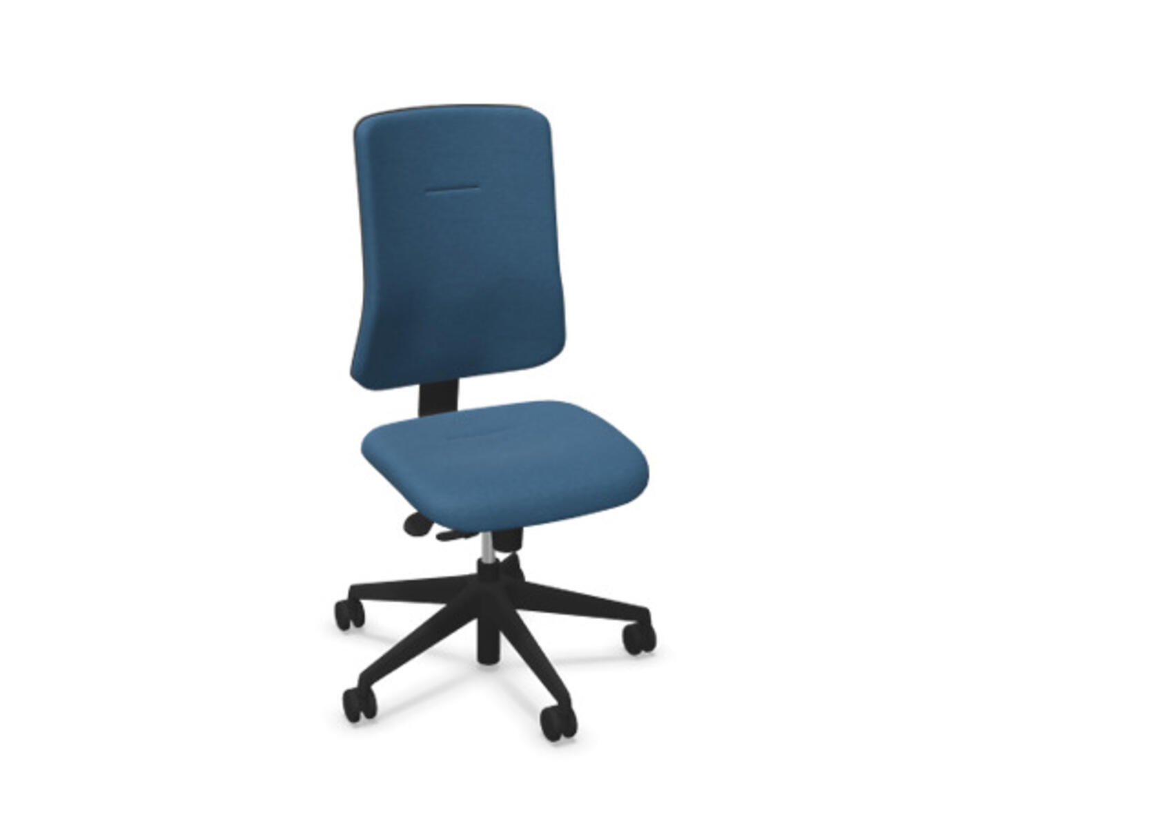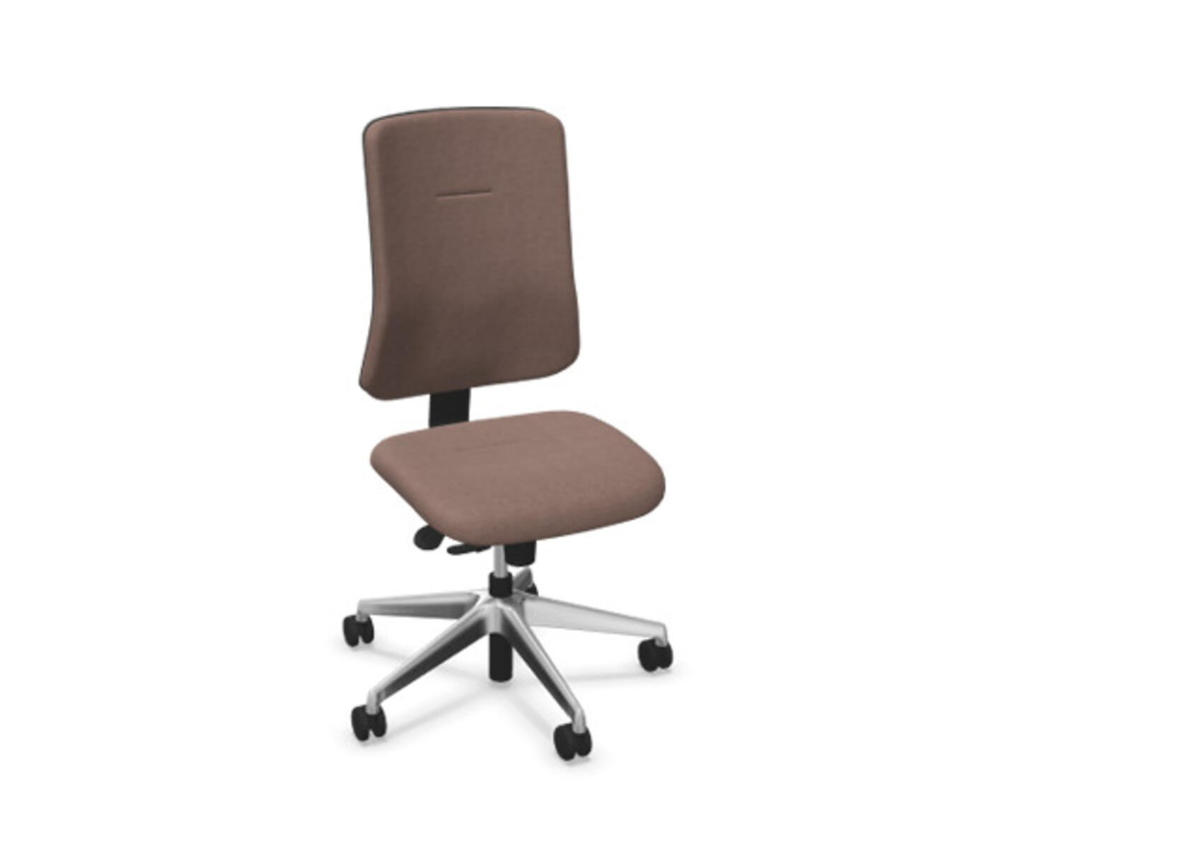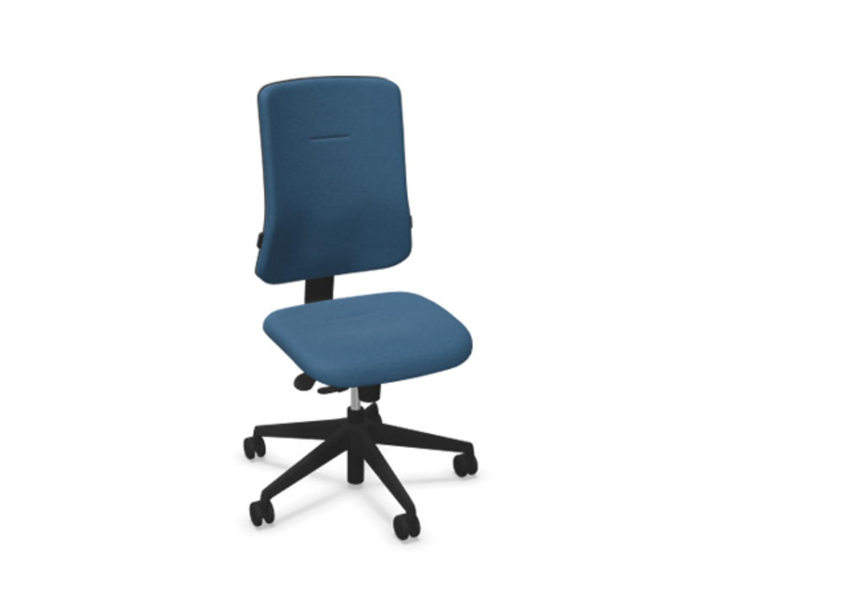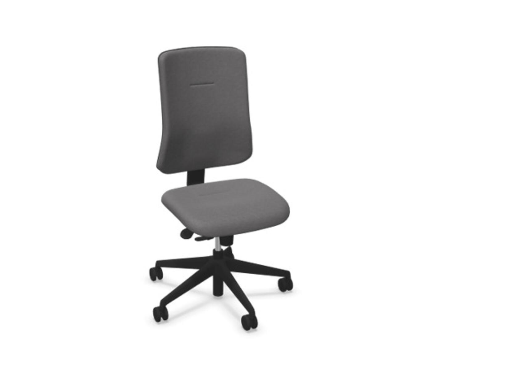 Ergonomisk kontorstol med delvis polstret rygg og synkronmekanisme, utformet for å gi støtte ved aktiv sitting gjennom hele arbeidsdagen. Polyesterstoff. Den synkroniserte bevegelsen mellom ryggstøtte og sete gir en aktiv og komfortabel sittestilling. Ryggstøttens vippevinkel er 20° synkronisert med setets vippevinkel på 11°. Ryggstøtten kan låses i 5 ulike posisjoner for individuell tilpasning, og motstanden i ryggstøtten justeres enkelt med et dreiehjul. Stolen har også Anti-Shock-funksjon som hindrer ryggstøtten i å slå tilbake når vippen låses opp. Velg mellom kryss i lysgrå polyamid eller polert aluminium samt selvbremsende hjul for myke eller harde gulv. Som tilvalg finnes også regulerbart korsryggstøtte, manuelt justerbart i dybde (15 mm) og høyde (20 mm). Armlener i 2D, 3D eller 4D selges separat.