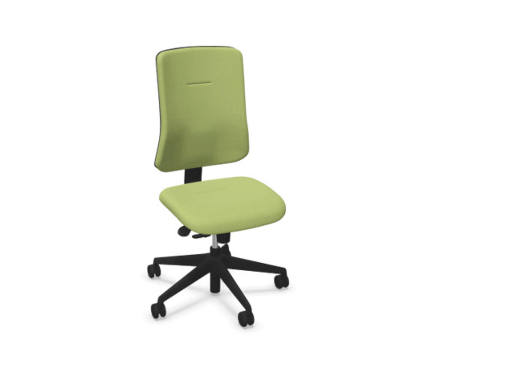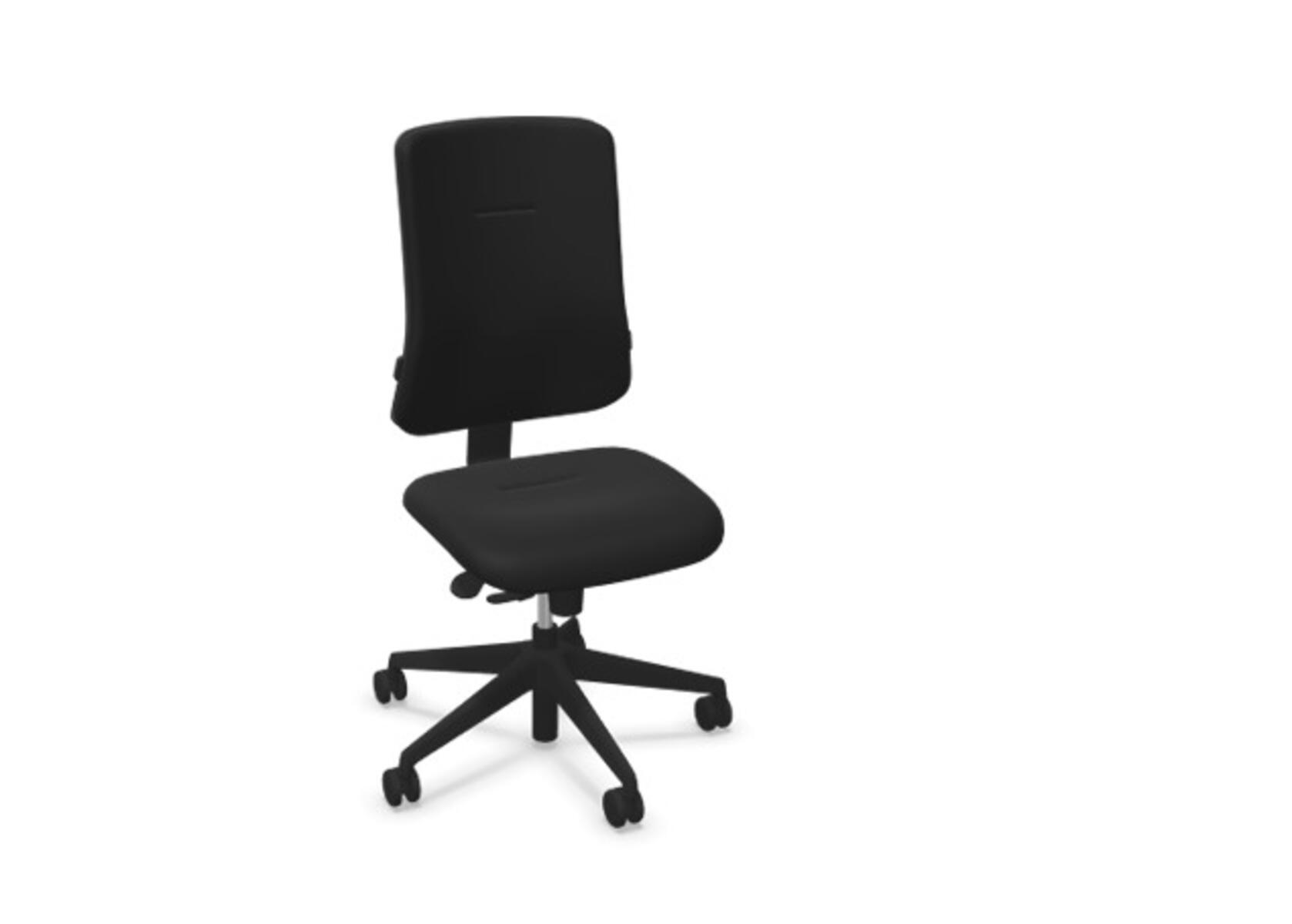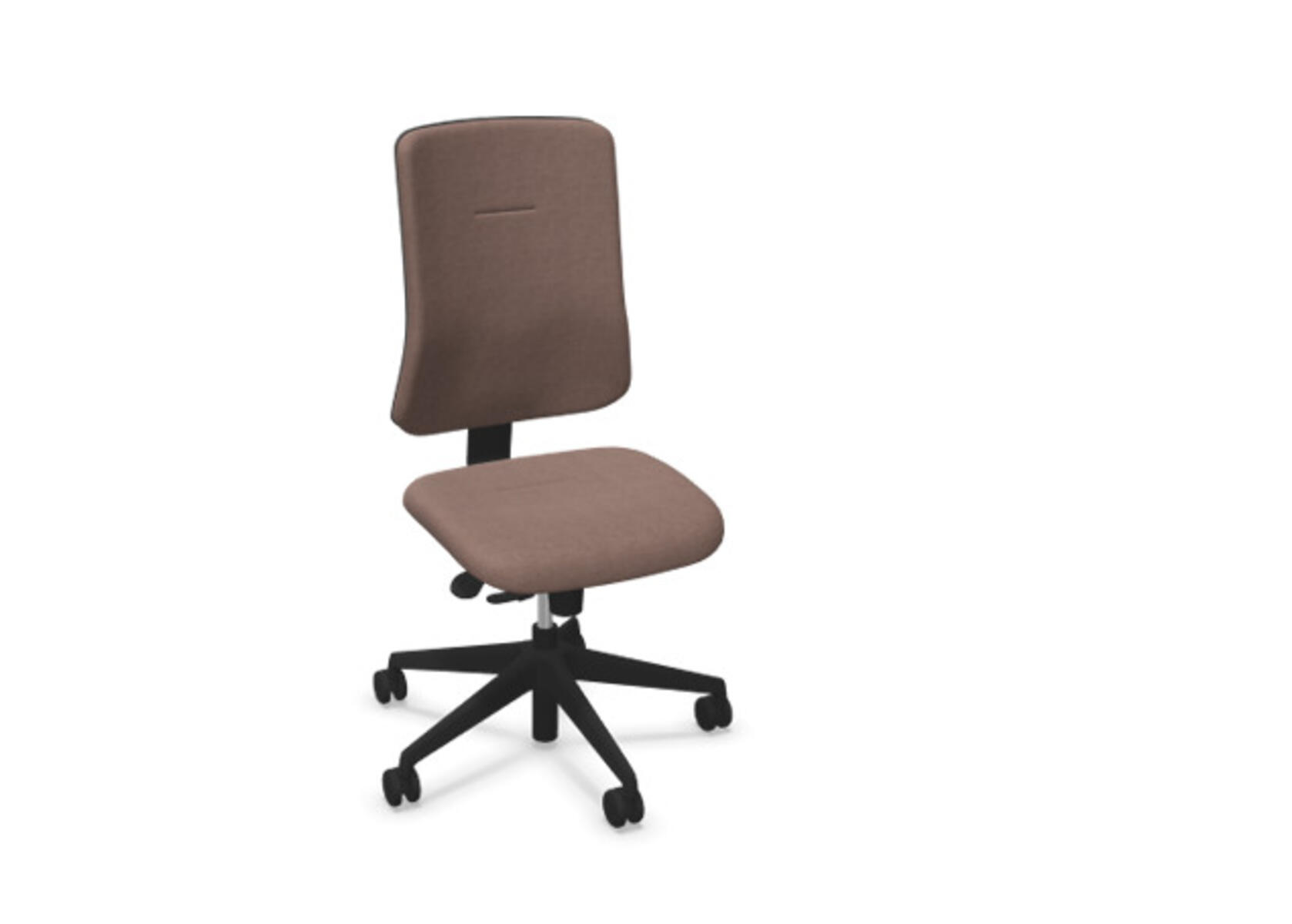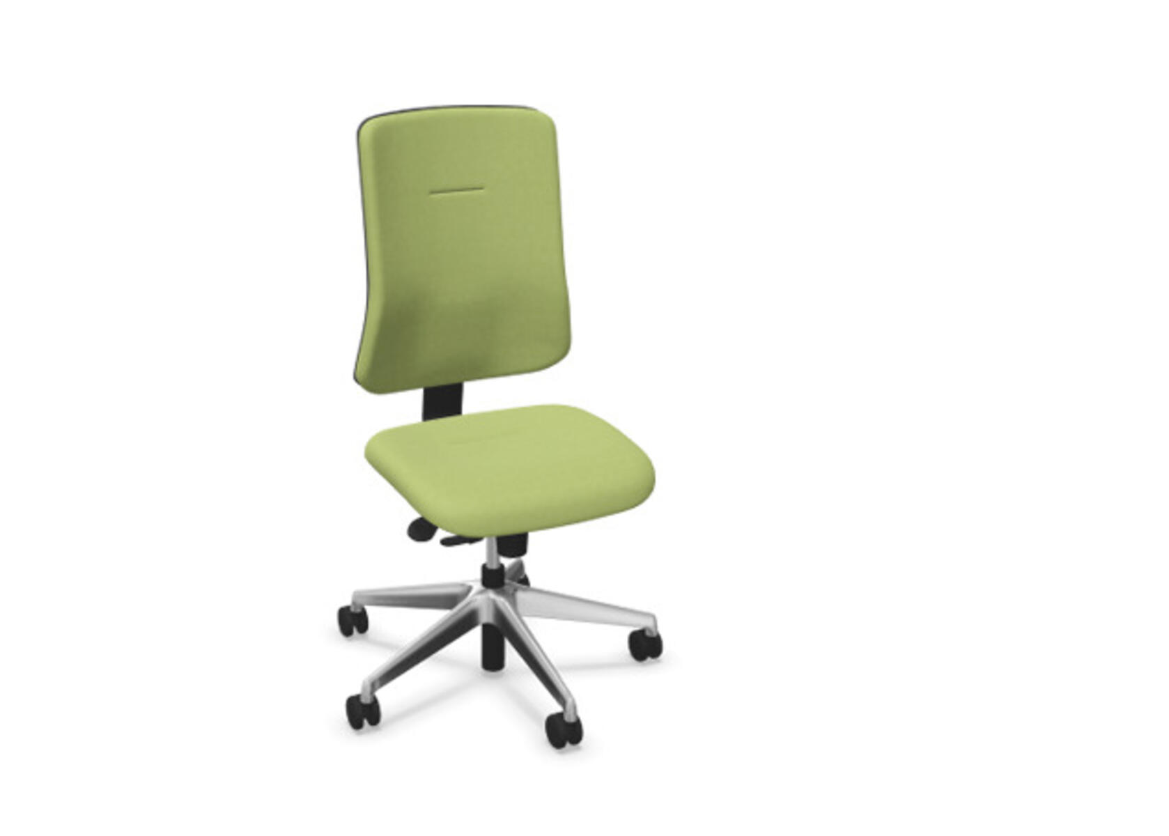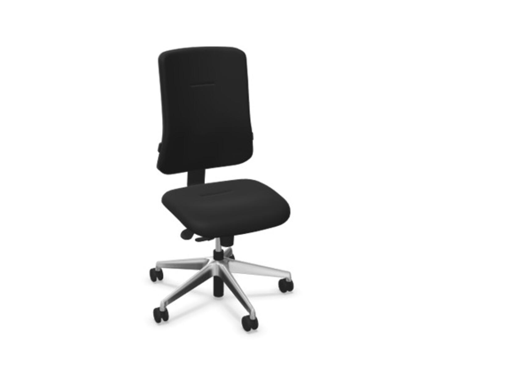 Ergonomisk kontorstol med delvis polstret rygg og synkronmekanisme, utformet for å gi støtte ved aktiv sitting gjennom hele arbeidsdagen. Polyesterstoff. Den synkroniserte bevegelsen mellom ryggstøtte og sete gir en aktiv og komfortabel sittestilling. Ryggstøttens vippevinkel er 20° synkronisert med setets vippevinkel på 11°. Ryggstøtten kan låses i 5 ulike posisjoner for individuell tilpasning, og motstanden i ryggstøtten justeres enkelt med et dreiehjul. Stolen har også Anti-Shock-funksjon som hindrer ryggstøtten i å slå tilbake når vippen låses opp. Velg mellom kryss i lysgrå polyamid eller polert aluminium samt selvbremsende hjul for myke eller harde gulv. Som tilvalg finnes også regulerbart korsryggstøtte, manuelt justerbart i dybde (15 mm) og høyde (20 mm). Armlener i 2D, 3D eller 4D selges separat.