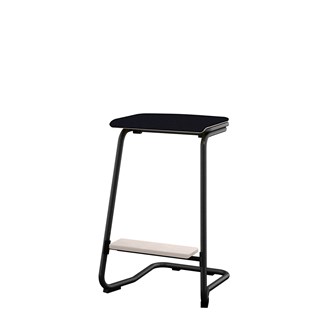 Kan stables. Støydempende føtter. Kan henges på bordet. Regulerbart fotbrett i 3 faste posisjoner. Sete i høytrykkslaminat. Svartlakkert stativ, RAL 9005. Tilvalg: sete trukket med stoff Xtreme Padang YS145 (100 % polyester). Testet og godkjent ihht standard EN 1729-2.