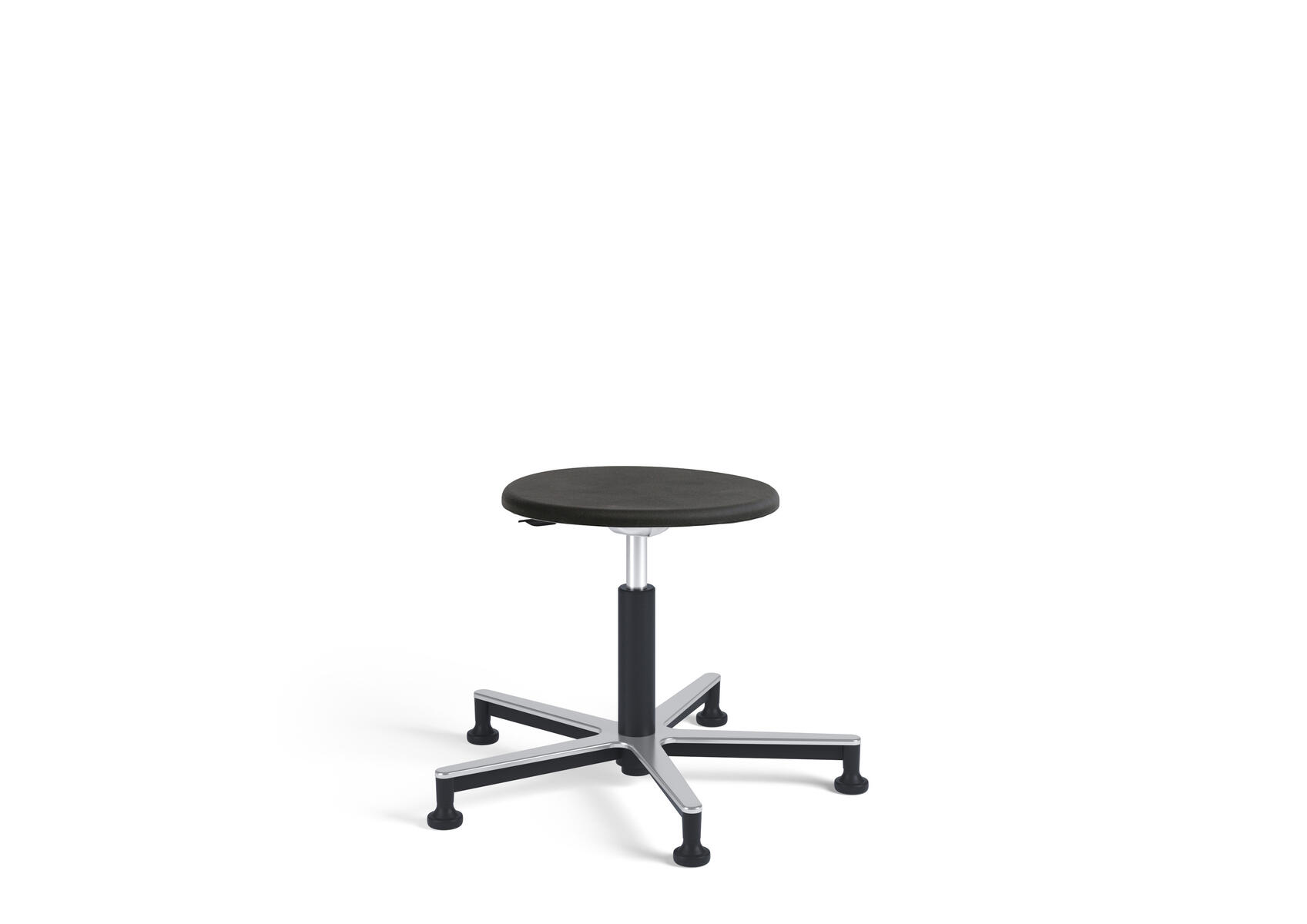 Høydejusterbar med gasspatron. Ben i aluminium med glidere. Sete i polyuretan.