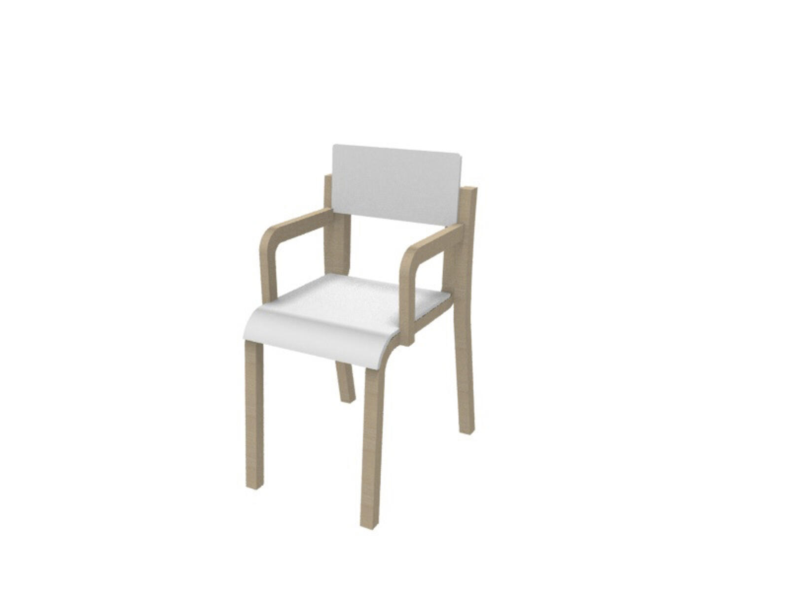 En barnevennlig stol med myke hjørner og kanter. Robust og stabil stol som kan stables. Ben i formpresset bjørk. Sete og rygg i høytrykkslaminat. Sittehøyde 35 cm. Setemål: b31xd32 cm. Totaldybde 41 cm, totalbredde 37 cm.