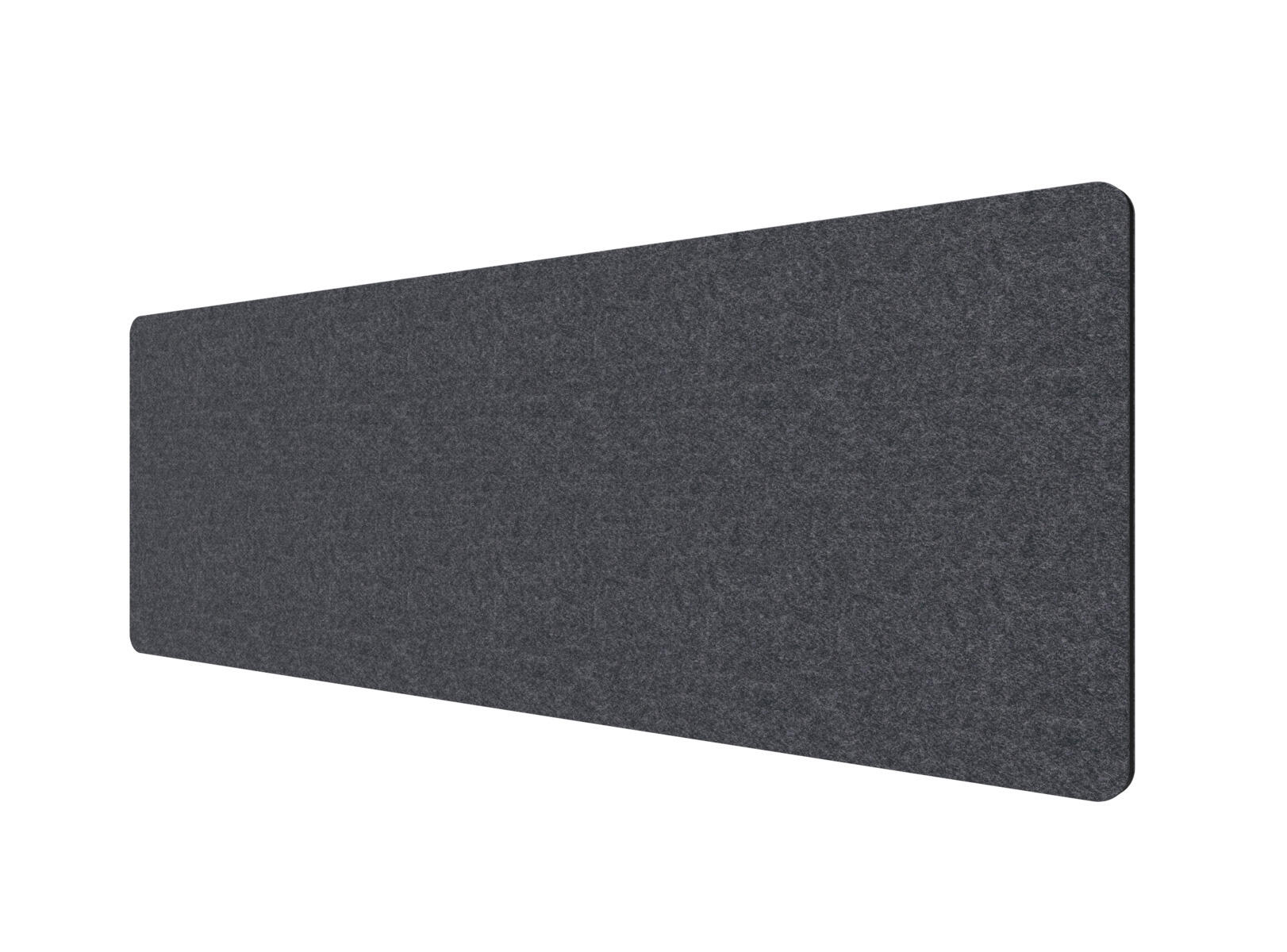 Bordskjerm med ramme av massivt tre og en 3 cm tykk lydabsorberende kjerne. Et utmerket valg for å skape en mer privat og stille arbeidsplass. Alle fire hjørner er avrundet. Avstand fra bordflate til skjermens bestemmes av hvor beslaget plasseres. Beslag for montering bestilles separat, art.nr. 165906.